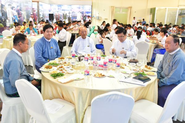 ဆက်လက်၍ ဝန်ကြီးဌာနရှိ ဝန်ထမ်းများက တိုင်းရင်းသားရိုးရာအဆို၊ အကများ၊ ခါသင်္ကြန်ယိမ်းအကများဖြင့် ဧည့်ခံဖျော်ဖြေကြပြီး အခမ်းအနားသို့တက်ရောက်လာကြသည့် ပြည်ထောင်စုဝန်ကြီး၊ ဒုတိယဝန်ကြီး၊ အမြဲတမ်းအတွင်းဝန်၊ ညွှန်ကြားရေးမှူးချုပ်များ၊ ဒုတိယညွှန်ကြားရေးမှူးချုပ်များနှင့် အရာထမ်း အမှုထမ်းများအာလုံး နေ့လယ်စာကို လက်ရည် တပြင်တည်း အတူတကွသုံးဆောင်ခဲ့ကြကြောင်း သိရှိရပါသည်။
