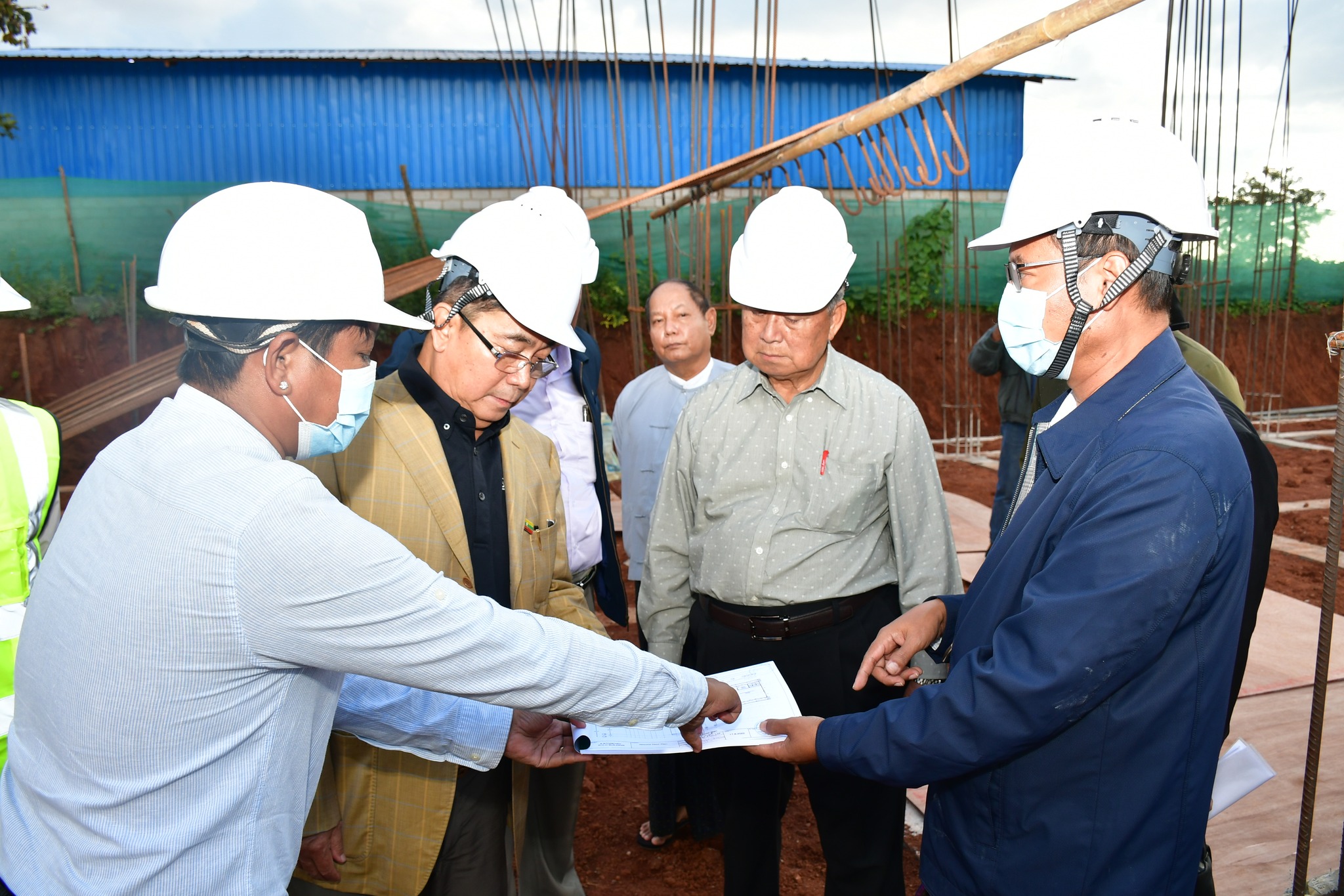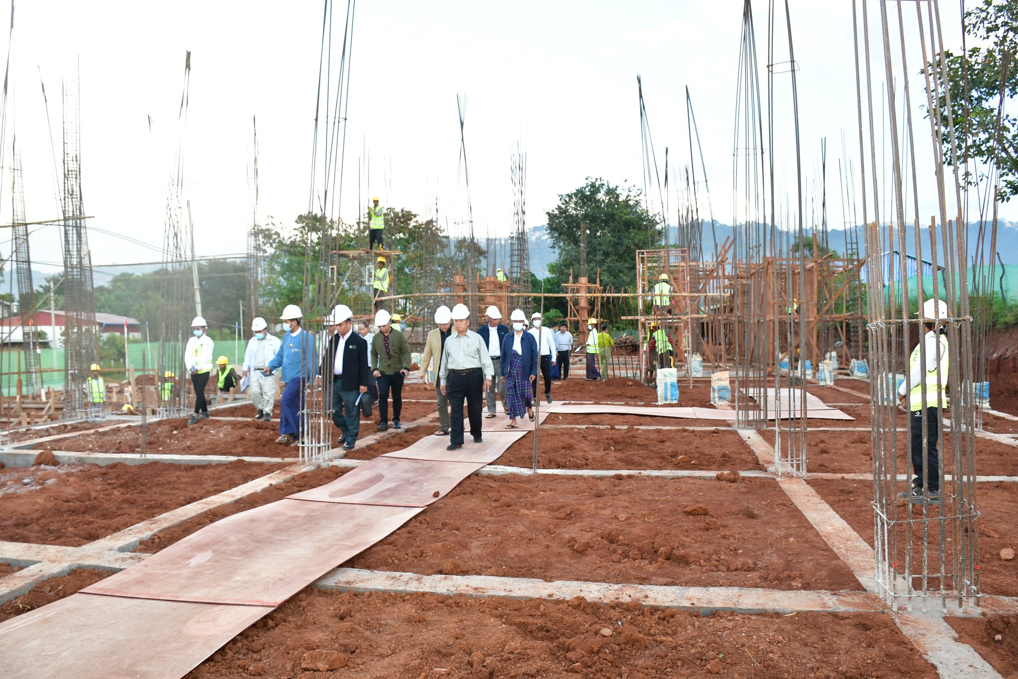 ၎င်းနောက် ပြည်ထောင်စုဝန်ကြီး၊ ဒုတိယဝန်ကြီး၊ ရှမ်းပြည်နယ် တိုင်းရင်းသားရေးရာ ဝန်ကြီးနှင့် တာဝန်ရှိသူများက လုပ်ငန်းခွင်အတွင်း အဆောက်အအုံတည်ဆောက်ပြီးစီးမှု အခြေအနေများကို ကြည့်ရှုစစ်ဆေးရာ တာဝန်ရှိသူများက ရှင်းလင်းတင်ပြခဲ့ပါသည်။ ရှင်းလင်းတင်ပြချက်များအပေါ် ပြည်ထောင်စုဝန်ကြီးနှင့် ဒုတိယဝန်ကြီးတို့က လိုအပ်သည် များကို ညှိနှိုင်းပေါင်းစပ်ပေးခဲ့ပါသည်။