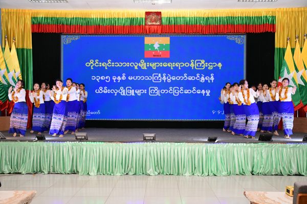 တိုင်းရင်းသားလူမျိုးများရေးရာဝန်ကြီးဌာနမှ သင်္ကြန်ယိမ်းအဖွဲ့က ၁၃၈၅ ခုနှစ်၊ နေပြည်တော် မြို့တော်ဝန် မဟာသင်္ကြန်မဏ္ဍပ်နှင့် နေပြည်တော်လမ်းလျှောက်သင်္ကြန် တိုင်းရင်းသားလူမျိုးများ ရေးရာဝန်ကြီးဌာနမဏ္ဍပ်တို့တွင် သင်္ကြန်အကအလှများဖြင့် ပါဝင်ဖျော်ဖြေဆင်နွှဲရန်အတွက် ယိမ်းလှပျိုဖြူများ ယိမ်းအကကြိုတင်လေ့ကျင့်နေမှုကို ယနေ့နံနက်ပိုင်းတွင် တိုင်းရင်းသား လူမျိုးများရေးရာဝန်ကြီးဌာန၊ အစည်းအဝေးခန်းမ၌ ပြည်ထောင်စုဝန်ကြီး Jeng Phang နော်တောင်၊ ဒုတိယဝန်ကြီး ဦးဇော်အေးမောင်၊ တာဝန် ရှိသူများနှင့် အရာထမ်း၊ အမှုထမ်းများ တက်ရောက်ကြည့်ရှုအားပေးခဲ့ကြပါသည်။