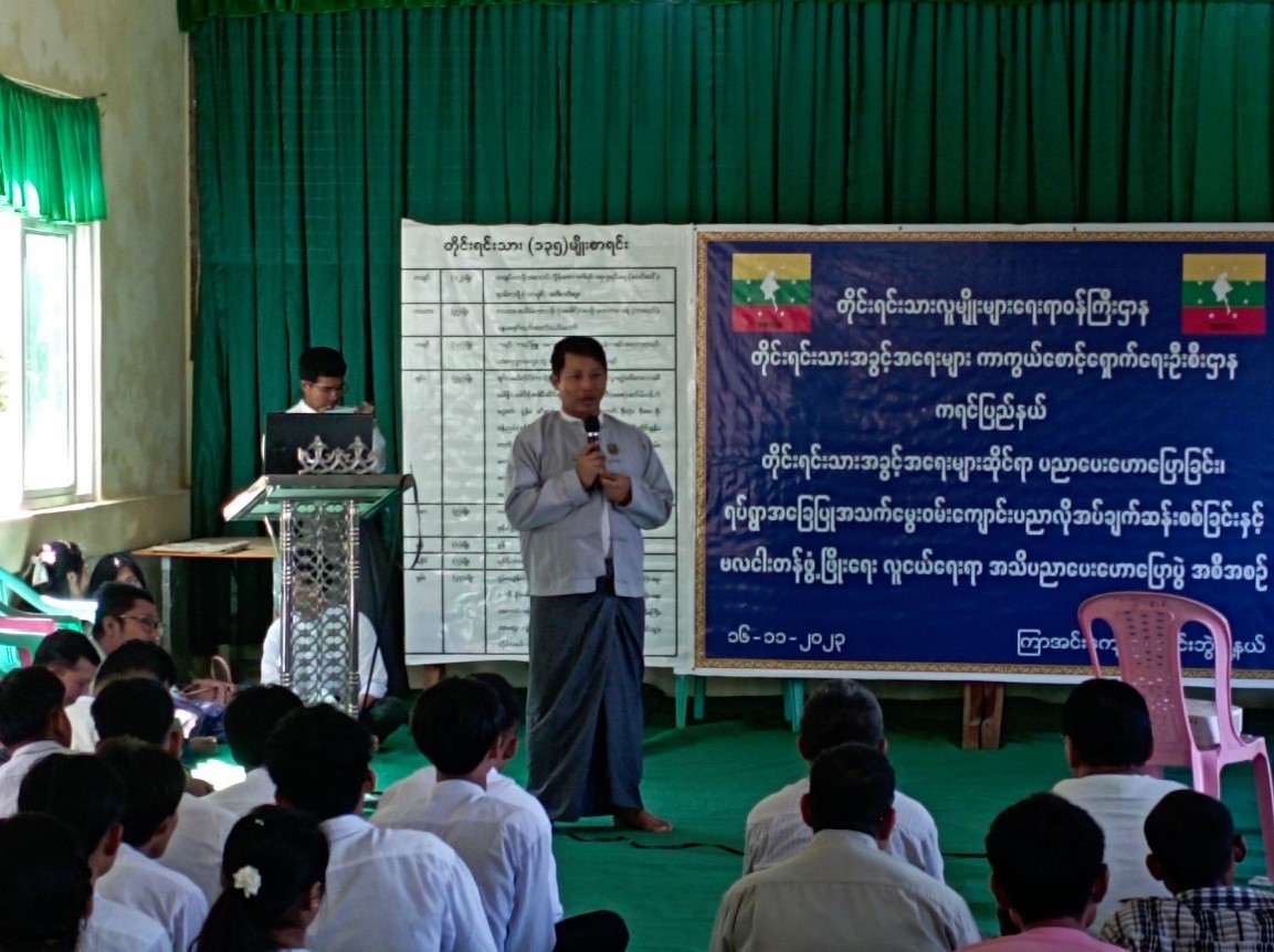 တိုင်းရင်းသားအခွင့်အရေးဆိုင်ရာအသိပညာပေးဟောပြောခြင်း၊ ရပ်ရွာအခြေပြုအသက်မွေးဝမ်းကျောင်းပညာလိုအပ်ချက်တို့ကိုစစ်တမ်းကောက်ယူခြင်းနှင့် အခြေခံပညာကျောင်းသား/ကျောင်းသူများ ဗလငါးတန်ဖွံ့ဖြိုးစေရေး အသိပညာပေး ဟောပြောခြင်းကို ကရင်ပြည်နယ်တွင် ကျင်းပပြုလုပ် ကရင်၊ နိုဝင်ဘာ ၁၆