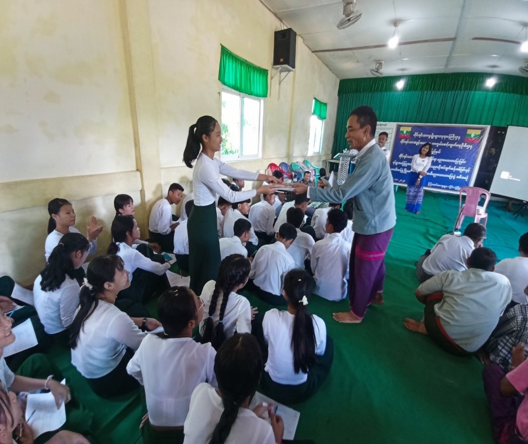 ဆက်လက်၍ တိုင်းရင်းသားအခွင့်အရေးများကာကွယ်စောင့်ရှောက်ရေးဦးစီးဌာန၊ ဒုတိယ ညွှန်ကြားရေးမှူး ဦးကျော်စိုးက ဉာဏဗလနှင့်ပြည့်စုံသော လူငယ်များဖြစ်စေရန် ရည်ရွယ်၍ ဗဟုသုတဆိုင်ရာမေးခွန်းများ၊ ဒေသန္တရမေးခွန်းများ၊ အသိပညာဆိုင်ရာမေးခွန်းများကို ကျောင်းသား/ ကျောင်းသူများအား မေးမြန်းခဲ့ပြီး ဆုလက်ဆောင် ပစ္စည်းများ ပေးအပ်ခဲ့ပါသည်။
