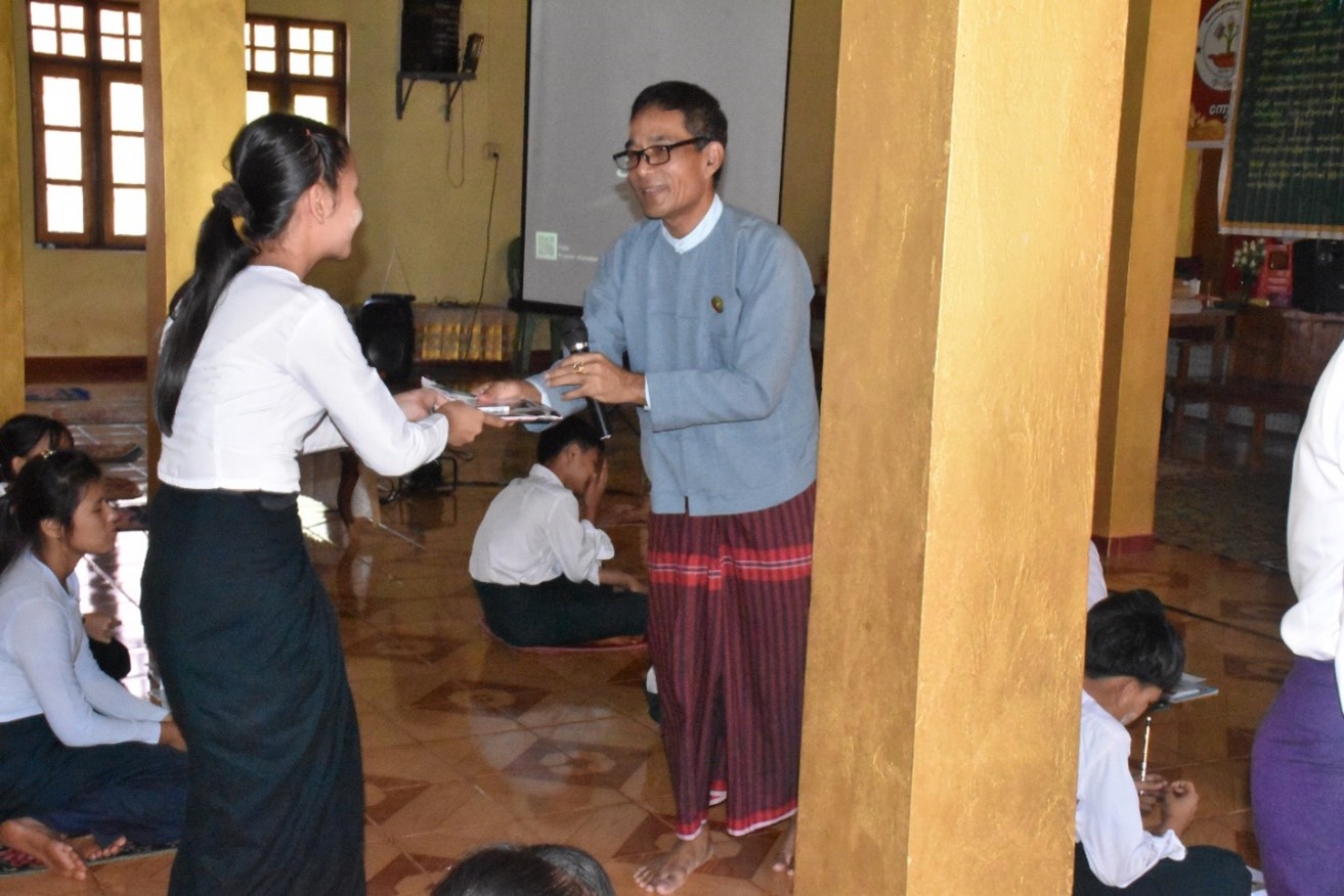 ဆက်လက်၍ တိုင်းရင်းသားအခွင့်အရေးများကာကွယ်စောင့်ရှောက်ရေးဦးစီးဌာန၊ ဒုတိယ ညွှန်ကြားရေးမှူး ဦးကျော်စိုးက ဉာဏဗလနှင့်ပြည့်စုံသော လူငယ်များဖြစ်စေရန် ရည်ရွယ်၍ ဗဟုသုတဆိုင်ရာမေးခွန်းများ၊ ဒေသန္တရမေးခွန်းများ၊ အသိပညာဆိုင်ရာမေးခွန်းများကို ကျောင်းသား/ ကျောင်းသူများအား မေးမြန်းခဲ့ပြီး ဆုလက်ဆောင် ပစ္စည်းများပေးအပ်ခဲ့ပါသည်။