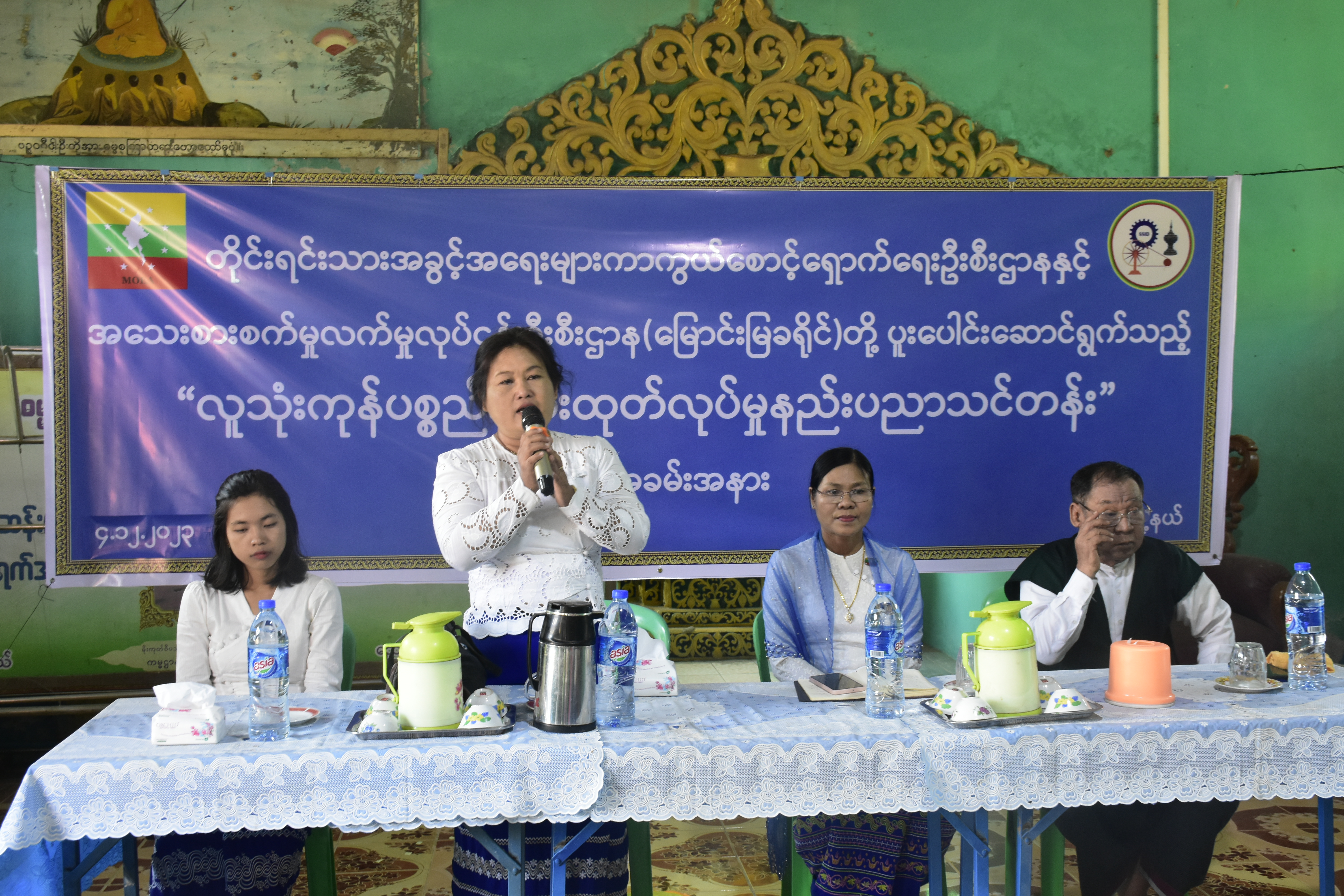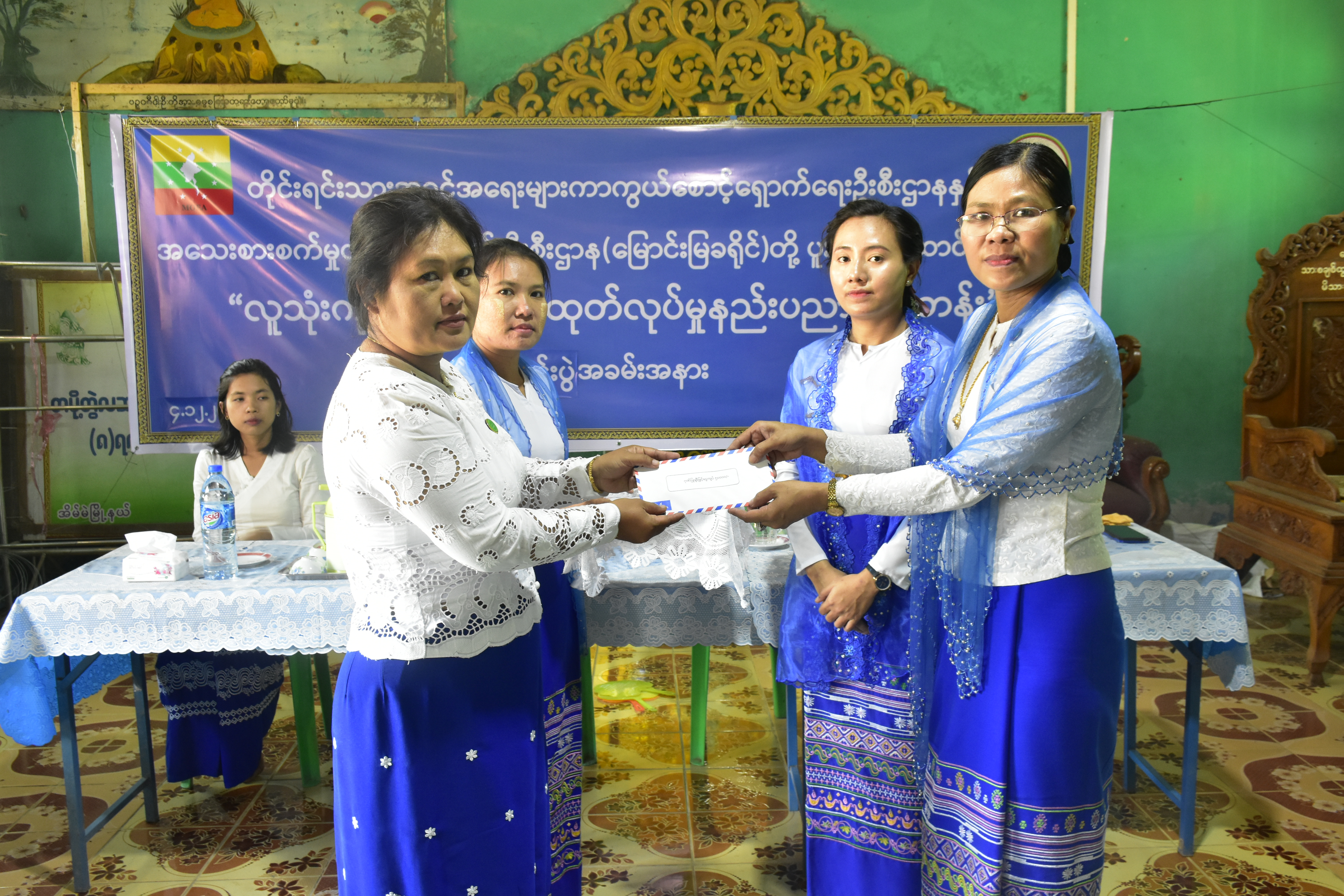 တိုင်းရင်းသားအခွင့်အရေးများကာကွယ်စောင့်ရှောက်ရေးဦးစီးဌာန၊ ဧရာဝတီတိုင်းဒေသကြီး ညွှန်ကြားရေးမှူးရုံးနှင့် အသေးစားစက်မှုလက်မှုလုပ်ငန်းဦးစီးဌာန(မြောင်းမြခရိုင်)တို့ ပူးပေါင်း၍ “လူသုံးကုန်ပစ္စည်းများထုတ်လုပ်မှုနည်းပညာသင်တန်း” ကို (၃၀-၁၁-၂၀၂၃) ရက်နေ့မှ (၄-၁၂-၂၀၂၃) ရက်နေ့အထိ အိမ်မဲမြို့နယ်၊ ညောင်ငူအုပ်စု၊ ညောင်ငူကျေးရွာ၊ ဓမ္မရံသီဘုန်းကြီးကျောင်း ဓမ္မာရုံ၌ ဖွင့်လှစ်သင်ကြားခဲ့ပြီး ဒေသခံတိုင်းရင်းသား အမျိုးသမီး(၂၀)ဦး တက်ရောက်သင်ယူခဲ့ပါသည်။