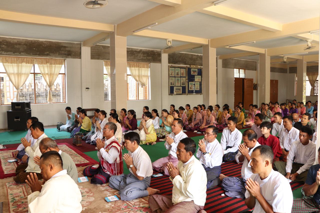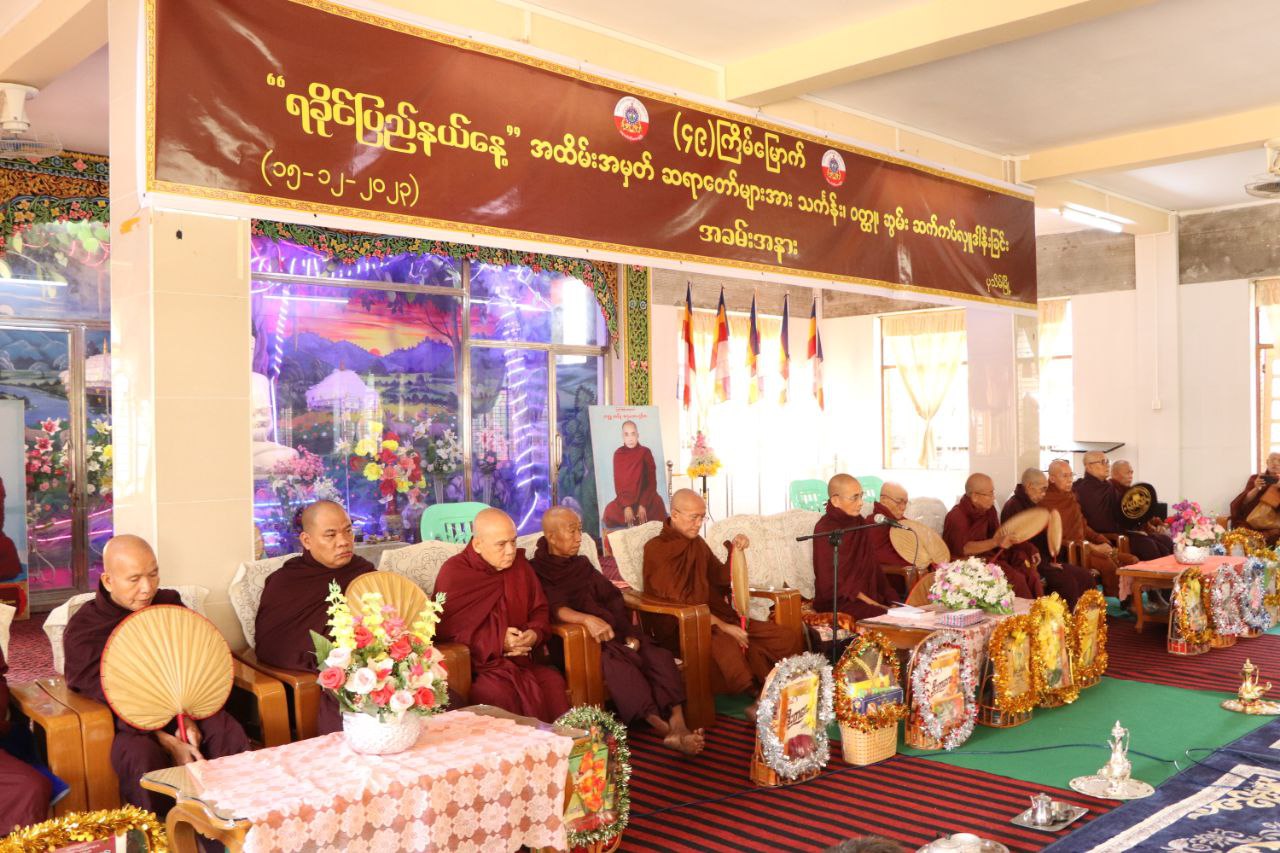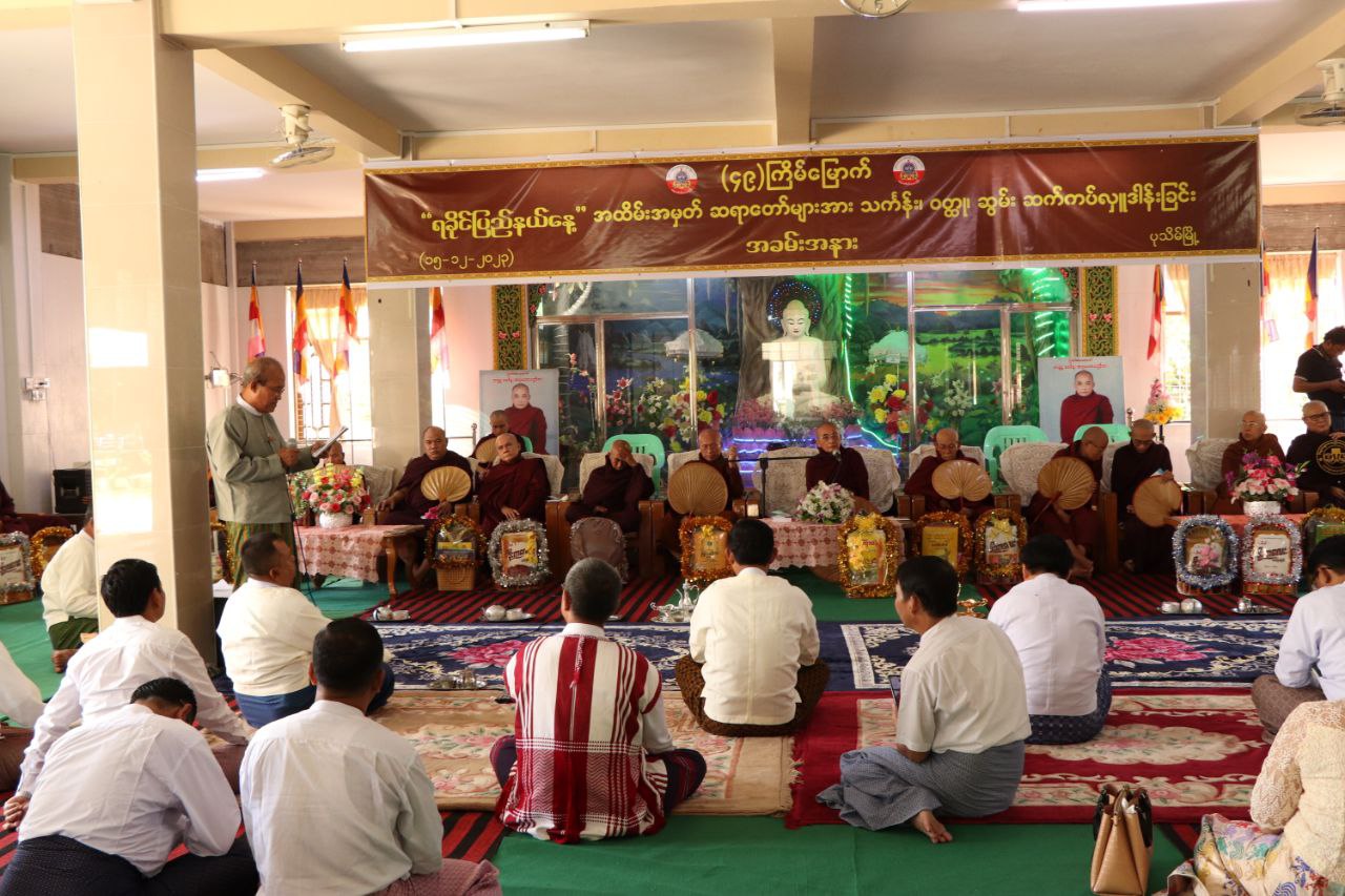အခမ်းအနားကို နမောတဿ (၃)ကြိမ် ရွတ်ဆိုဖွင့်လှစ်ခဲ့ပြီး ပုသိမ်မြို့၊ ပစ္ဆိမာရုံကျောင်းတိုက် ဦးစီးပဓာန နာယက အဂ္ဂမဟာပဏ္ဍိတ နိုင်ငံတော်ဗဟို သံဃာ့ဝန်ဆောင် ဆရာတော်ဘုရားကြီးမှ ငါးပါးသီလနှင့် ဩဝါဒချီးမြှင့်ပေးခြင်း၊ ကြွရောက်တော်မူလာကြသည့် ဆရာတော်ကြီးများက ပရိတ် တရားတော်ချီးမြှင့်ပေးခြင်း၊ ဆရာတော်၊ သံဃာတော်များအား လှူဖွယ်ဝတ္ထုနှင့် သင်္ကန်းဆက်ကပ် လှူဒါန်းခြင်း၊ အခမ်းအနား ကျင်းပရေးကော်မတီ နာယကကြီး ဦးအောင်ဘသိန်းက ရခိုင်ပြည်နယ်နေ့ အကြောင်းနှင့် ကျေးဇူးတင်စကား ပြောကြားခြင်း၊ မင်္ဂလာအောင်မြေကျောင်းတိုက် ဆရာတော်မှ ရေစက် ချတရားချီးမြှင့်ပေးခဲ့ပြီး အခမ်းအနားအား ဗုဒ္ဓသာသနံစိရံတိဌတု (၃) ကြိမ် ရွတ်ဆိုပူဇော်၍ အခမ်းအနားအား ရုပ်သိမ်းခဲ့ပါသည်။