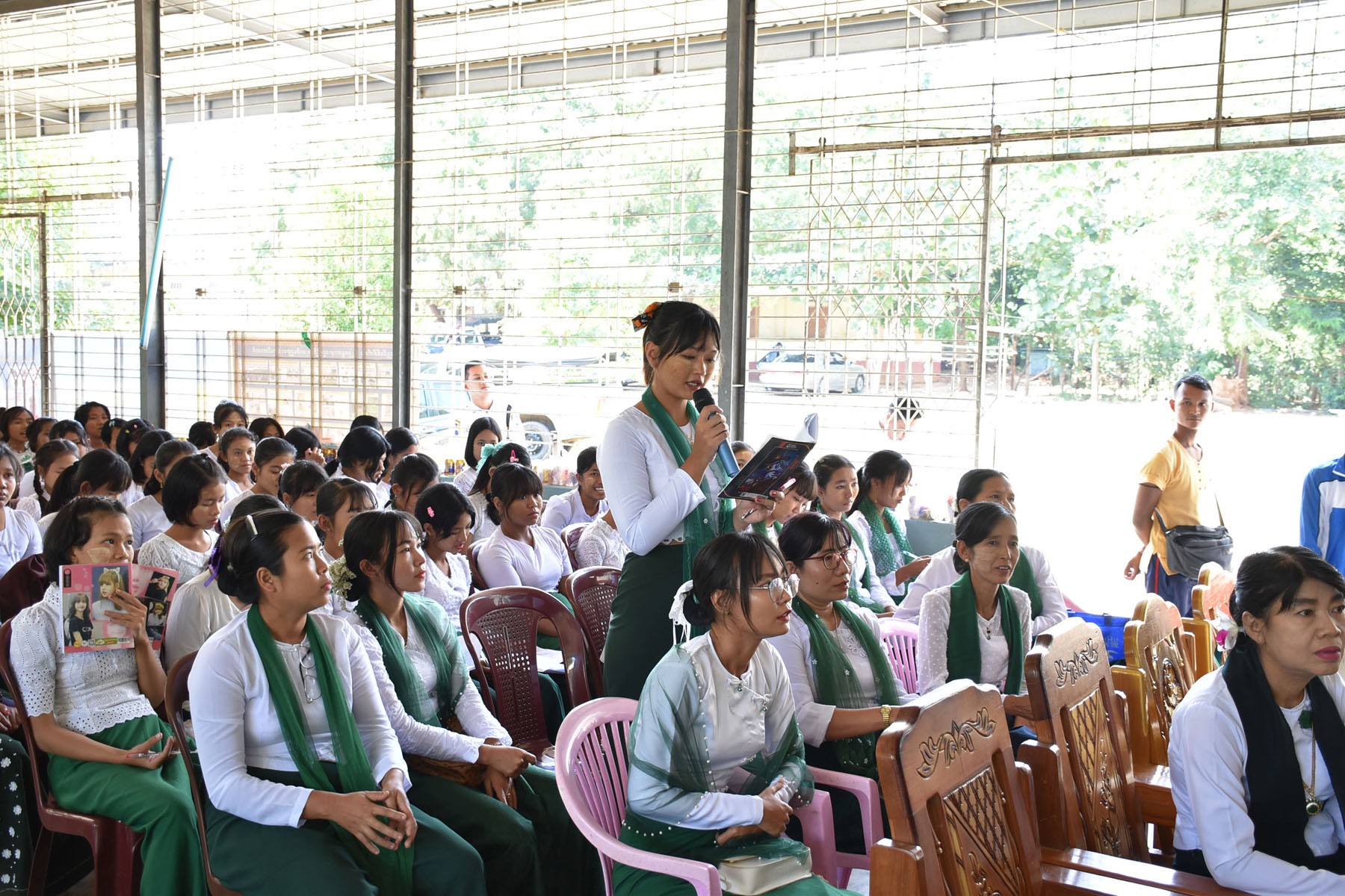 ထို့နောက် တက်ရောက်လာကြသော ကျောင်းသား၊ ကျောင်းသူများအား အသိပညာပေး ဟောပြောသည့် အကြောင်းအရာများအပေါ် ဉာဏ်စမ်းမေးခွန်းများမေးမြန်းခဲ့ပြီး ဖြေဆိုနိုင်သူ ကျောင်းသား၊ ကျောင်းသူများအား ဆုလက်ဆောင်များ ချီးမြှင့်ခြင်း၊ ရွာသာယာကျေးရွာ၊ အထက် တန်းကျောင်း စာကြည့်တိုက်အတွက် တိုင်းရင်းသားလူမျိုးများ၏အခွင့်အရေးကာကွယ်စောင့်ရှောက် သည့်ဥပဒေ၊ နည်းဥပဒေစာအုပ်များနှင့် ကလေးအလုပ်သမား ပပျောက်ရေးဆိုင်ရာဥပဒေ သိမှတ်ဖွယ် ရာ စာအုပ်များပေးအပ်ခဲ့ပြီး ရွာသာယာကျေးရွာ၊ အထက်တန်းကျောင်းမှ ကျောင်းအုပ်ဆရာမကြီး ဒေါ်ယုယုရွှေက ကျေးဇူးတင်စကား ပြန်လည်ပြောကြားခဲ့ပါသည်။