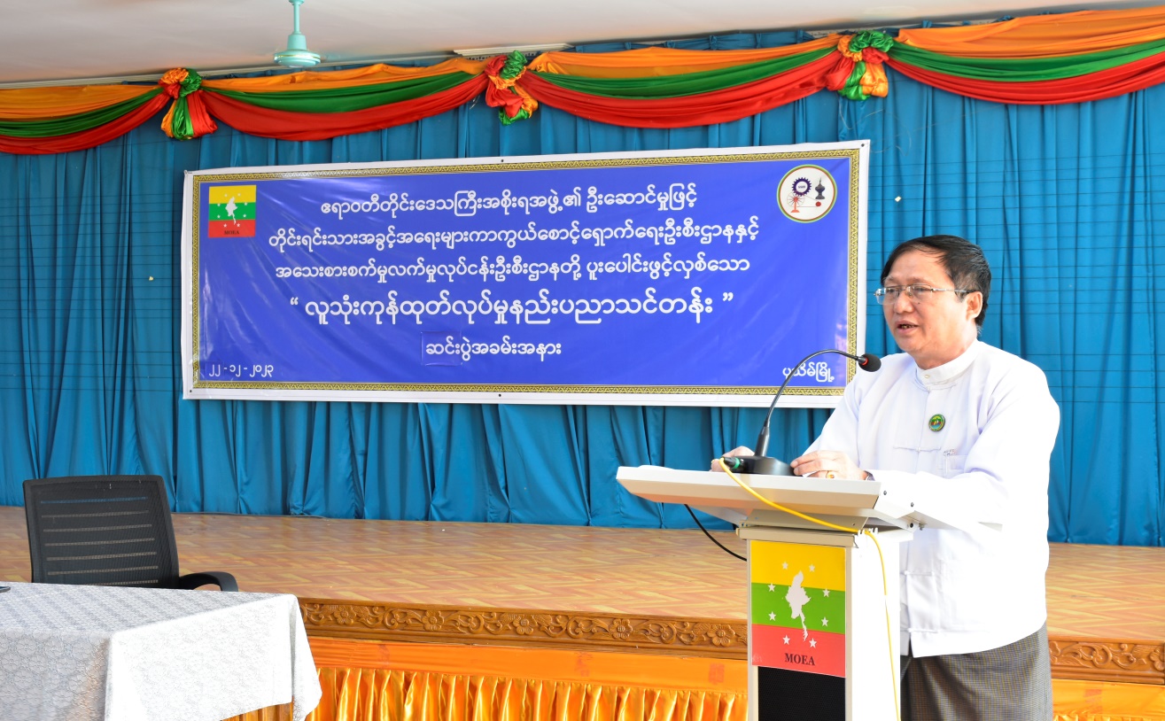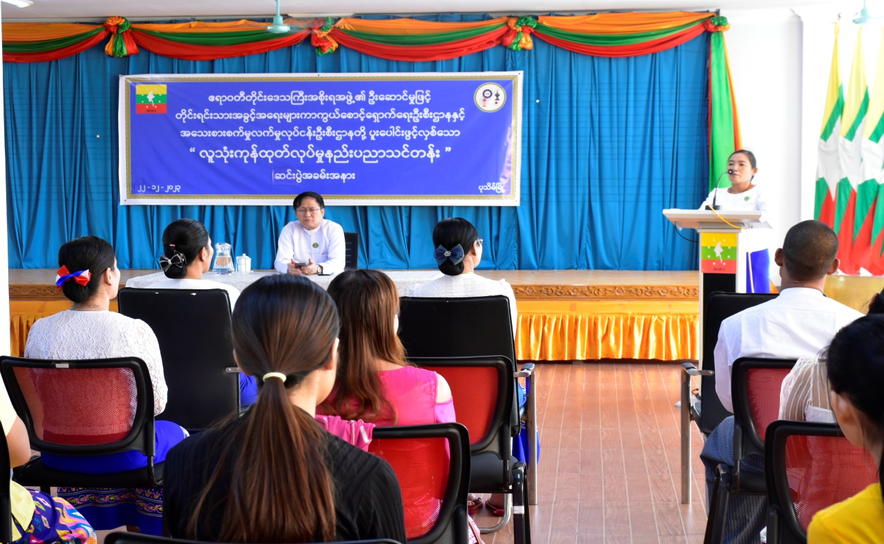 တိုင်းရင်းသားအခွင့်အရေးများကာကွယ်စောင့်ရှောက်ရေးဦးစီးဌာန၊ ဧရာဝတီတိုင်းဒေသကြီး ညွှန်ကြားရေးမှူးရုံးနှင့် တိုင်းဒေသကြီး အသေးစားစက်မှုလက်မှုလုပ်ငန်းဦးစီးဌာနတို့ ပူးပေါင်း၍ ဖွင့်လှစ်သော “လူသုံးကုန်ထုတ်လုပ်မှုနည်းပညာသင်တန်း” သင်တန်းဆင်းပွဲအခမ်းအနားကို (၂၂-၁၂-၂၀၂၃)ရက်နေ့တွင် ဧရာဝတီတိုင်းဒေသကြီး၊ ပုသိမ်မြို့၊ ဦးစီးဌာနညွှန်ကြားရေးမှူးရုံး၌ ကျင်းပ ပြုလုပ်ခဲ့ပါသည်။