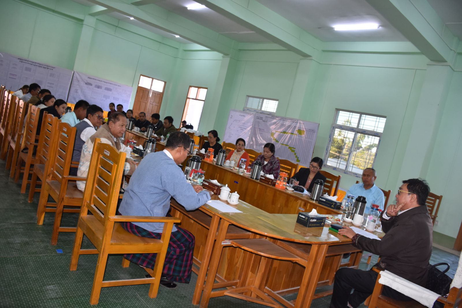 ပထမဦးစွာ ဒုတိယဝန်ကြီးနှင့်အဖွဲ့သည် မဲခေါင်-လန်းချန်အထူးရန်ပုံငွေနှင့် ပြည်ထောင်စုဘဏ္ဍာရန်ပုံများဖြင့် ဆောင်ရွက်လျက်ရှိသော တည်ဆောက်ရေးလုပ်ငန်း ဖြစ်သည့် အလုပ်ရုံဆောင်၊ ဝင်းခြံစည်းရိုး၊ ထမင်းစားဆောင်၊ ပင်မအဆောက်အဦထပ်တိုး လုပ်ငန်းများနှင့် ပတ်ဝန်းကျင်စိမ်းလန်းစိုးပြေရေးများကို လိုက်လံကြည့်ရှုစစ်ဆေးခဲ့ပြီး မြေညီထပ်ရှင်းလင်းဆောင်တွင် ရှမ်းပြည်နယ်အစိုးရအဖွဲ့ဝင် တိုင်းရင်းသားရေးရာဝန်ကြီး၊ အဆောက်အဦကို တာဝန်ယူတည်ဆောက်နေသည့် မိုးယံဝင့်ချီကုမ္ပဏီလီမိတက်မှ တာဝန် ရှိသူများနှင့် ဆောက်လုပ်ရေးဝန်ကြီးဌာန၊ အရည်အသွေးထိန်းချုပ်စိစစ်ရေးအဖွဲ့မှ တာဝန်ရှိသူများတို့အား စိစစ်တွေ့ရှိချက်များအပေါ် လိုအပ်သည်ကို ညှိနှိုင်းမှုများ ဆောင်ရွက် ပေးခဲ့ပြီး အဆောက်အဦကို ၇၇ နှစ်မြောက်ရှမ်းပြည်နယ်နေ့အမီ ဖွင့်လှစ်နိုင်ရေးနှင့် အရည်အသွေးစံချိန်စံညွှန်းနှင့်အညီဆောင်ရွက်ရန် ဆွေးနွေးပြောကြားခဲ့ပါသည်။