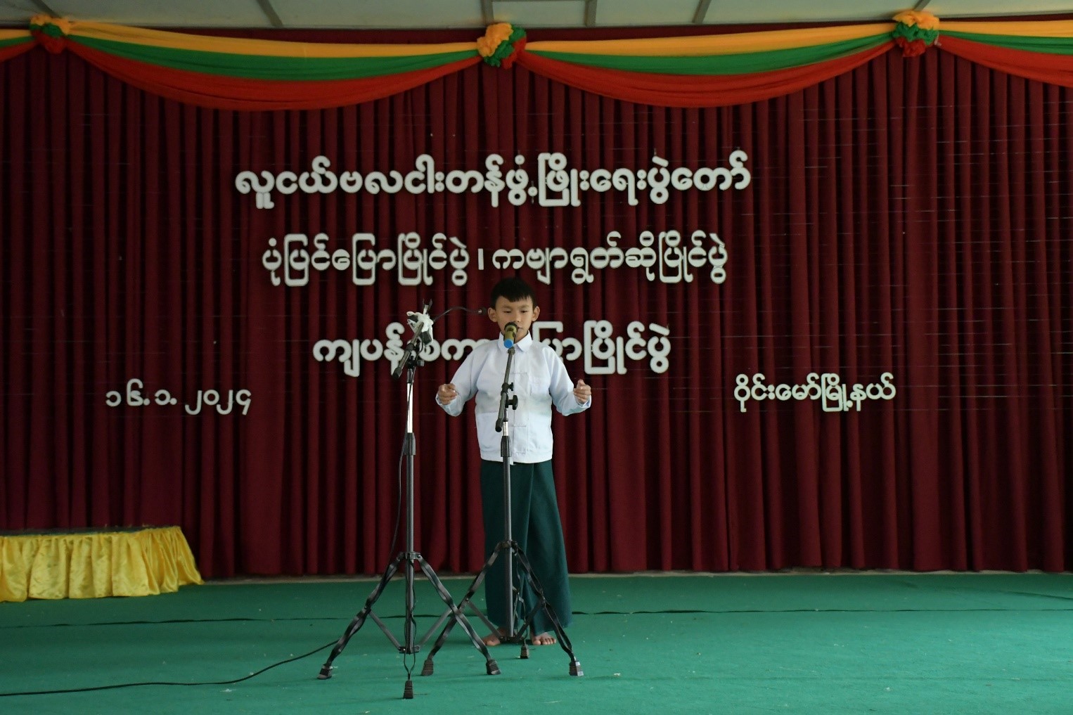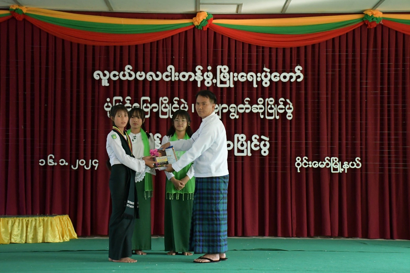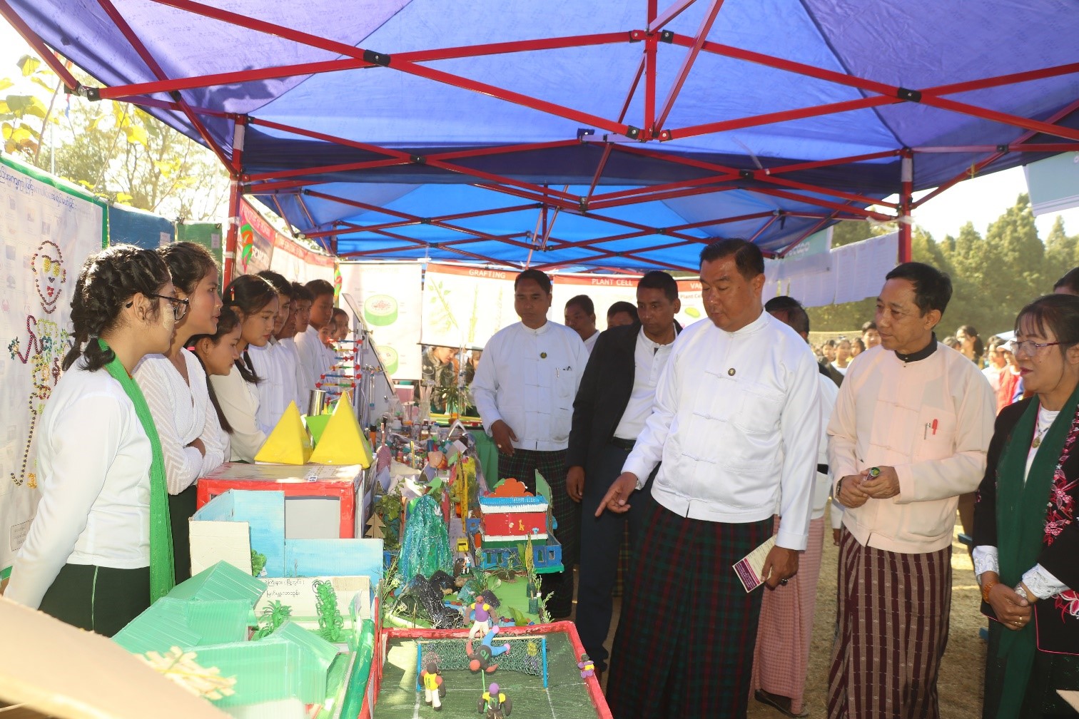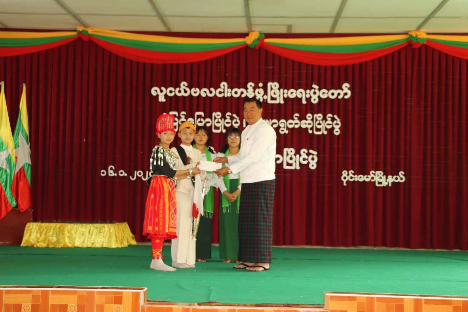 ယင်းနောက် ကျောင်းသားကျောင်းသူများက တေးသရုပ်ဖော်အကများနှင့် တိုင်းရင်းသားရိုးရာ အကများဖြင့် ဖျော်ဖြေတင်ဆက်ကြပြီး စာစီစာကုံးပြိုင်ပွဲတွင် ဆုရရှိခဲ့ကြသော ကျောင်းသားကျောင်းသူများကို တိုင်းရင်းသားရေးရာဝန်ကြီး ဦးကျော်မင်းခိုင်နှင့် တာဝန်ရှိသူများက ဂုဏ်ပြုဆုနှင့် ဆုတံဆိပ်များကို လည်းကောင်း၊ ဖျော်ဖြေရေးအဖွဲ့နှင့် ဘင်ခရာအဖွဲ့များအတွက် ဂုဏ်ပြုချီးမြှင့်ငွေများကိုလည်းကောင်း ပေးအပ်ကြပါသည်။ တိုင်းရင်းသားရေးရာဝန်ကြီး ဦးကျော်မင်းခိုင်နှင့် တာဝန်ရှိသူများသည် ခင်းကျင်း ပြသထားသော ပြခန်းများ၊ အားကစားနည်းများနှင့် ပျော်ပွဲရွှင်ပွဲများကို လှည့်လည်ကြည့်ရှုခဲ့ကြပါသည်။