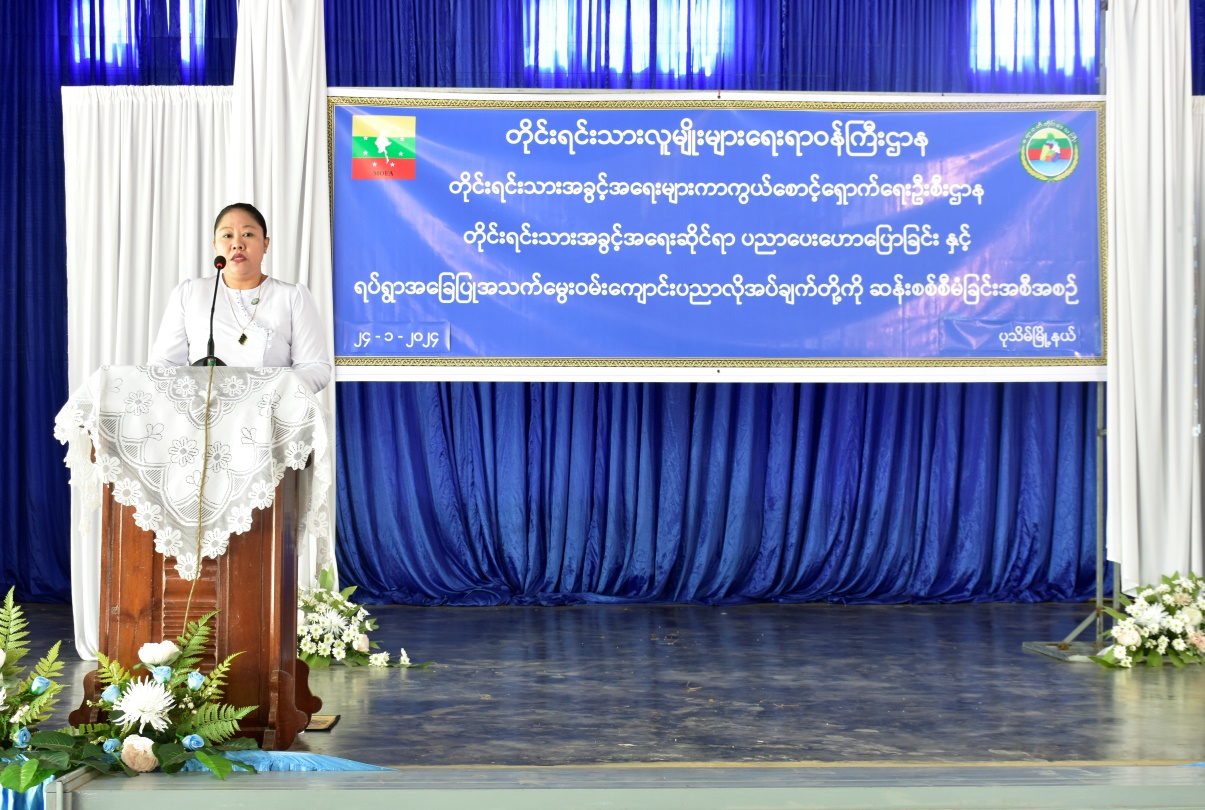 တိုင်းရင်းသားအခွင့်အရေးဆိုင်ရာ အသိပညာပေးဟောပြောခြင်းနှင့် ရပ်ရွာအခြေပြုအသက်မွေး ဝမ်းကျောင်း ပညာလိုအပ်ချက်တို့ကို ဆန်းစစ်စီမံခြင်းအစီအစဉ်ကို ဧရာဝတီတိုင်းဒေသကြီး၊ ရွှေသောင်ယံမြို့တွင် ကျင်းပပြုလုပ် ဧရာဝတီ၊ ဇန်နဝါရီလ ၂၄ ရက်