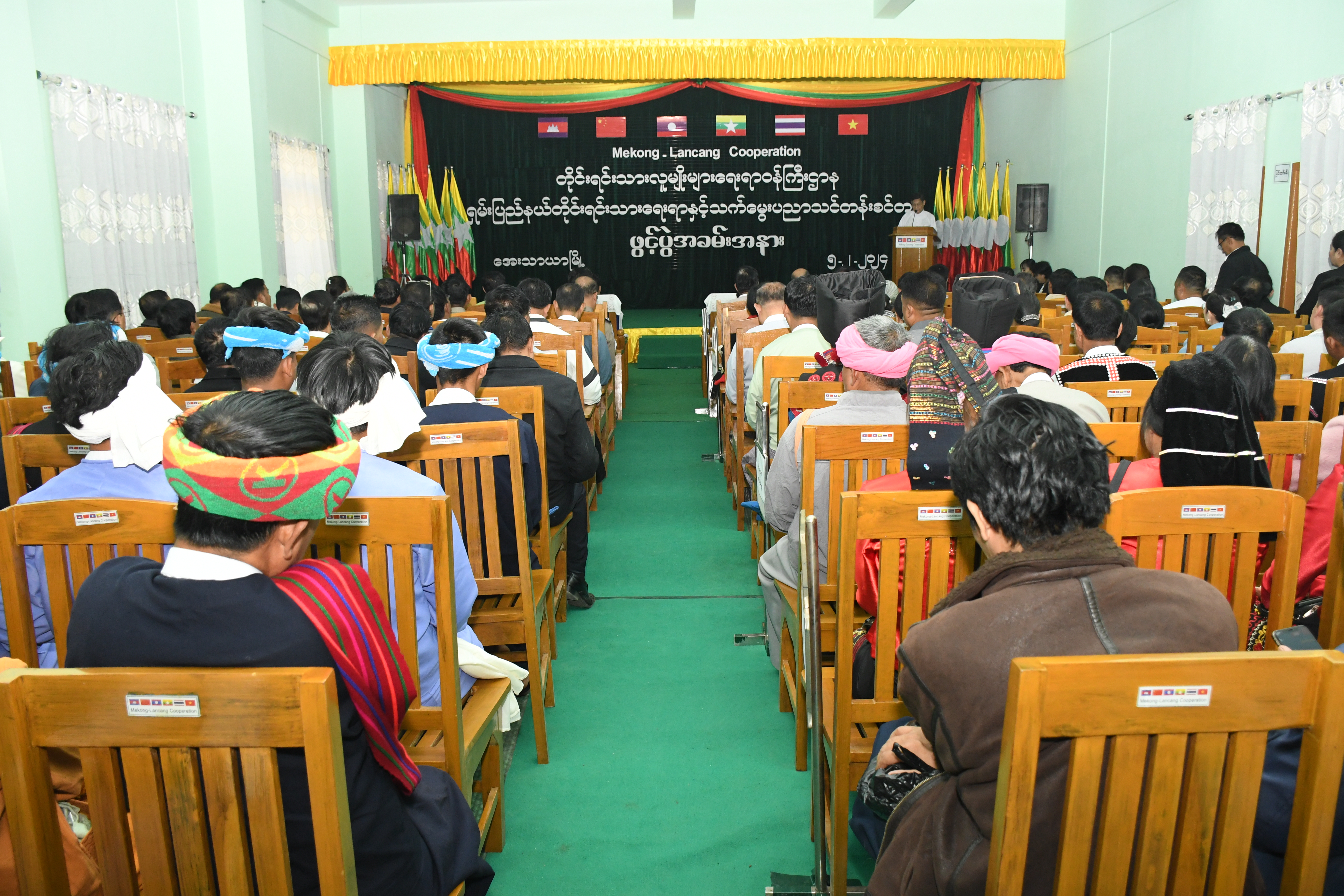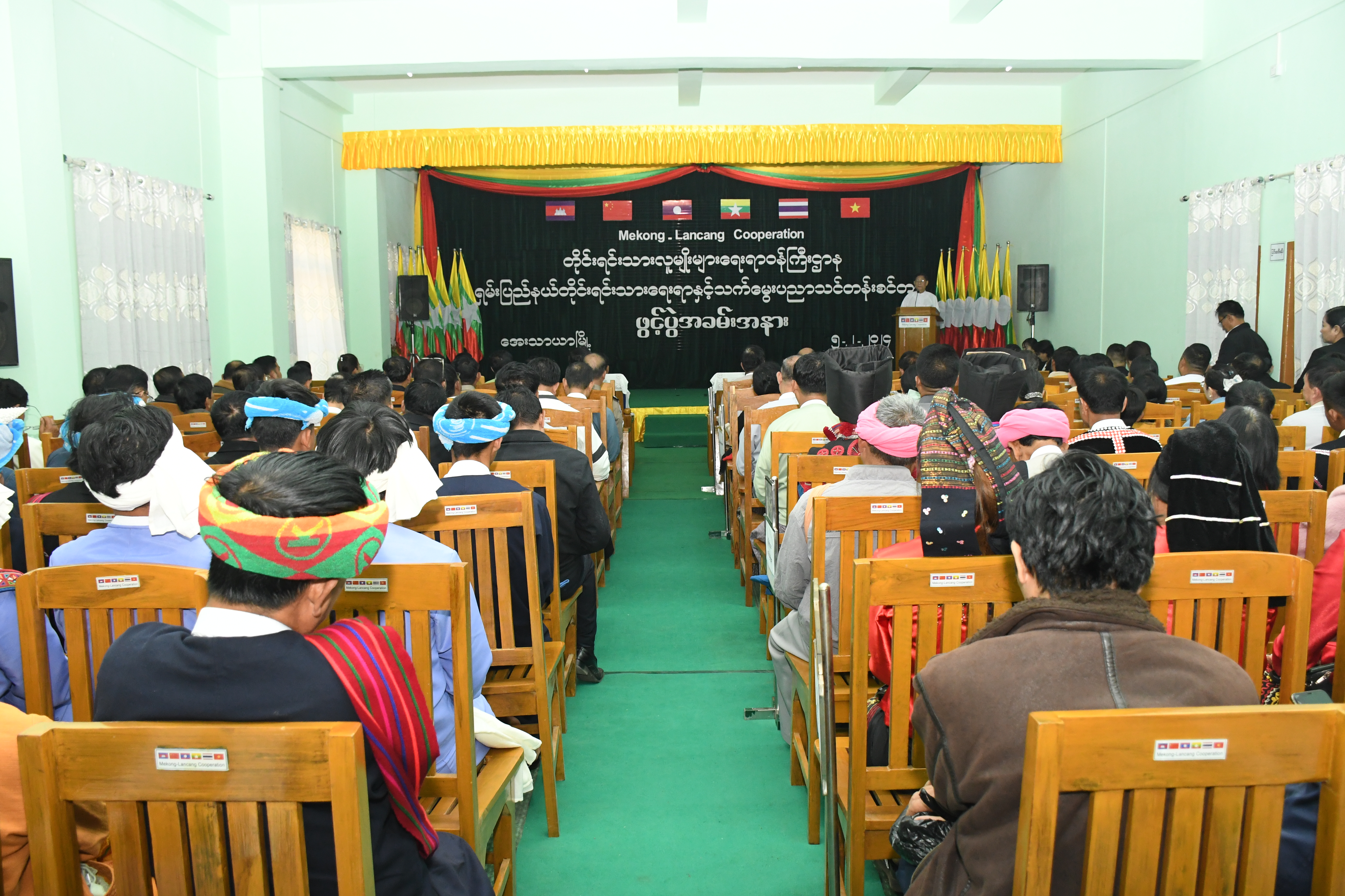 နိုင်ငံတော်အနေဖြင့် တိုင်းရင်းသားပြည်သူများအားလုံး၏ ဖွံ့ဖြိုးတိုးတက်ရေး၊ တိုင်းပြည်သာယာဝပြောရေး၊ စားရေရိက္ခာဖူလုံရေးနှင့် ဘက်စုံဖွံ့ဖြိုးတိုးတက်ရေးအတွက် ဦးတည်ဆောင်ရွက်လျက်ရှိပါကြောင်း၊ တိုင်းရင်းသားများ၏ စကား၊ စာပေ၊ အနုပညာနှင့် ယဉ်ကျေးမှု၊ ရိုးရာဓလေ့ထုံးတမ်း၊ အမျိုးသားရေးစရိုက်လက္ခဏာနှင့် သမိုင်းအမွေအနှစ်တို့ကို ထိန်းသိမ်းစောင့်ရှောက်ရန်၊ ဖွံ့ဖြိုးတိုးတက်စေရန်နှင့် မြှင့်တင်နိုင်ရန် ဆောင်ရွက်ပေးလျက် ရှိပါကြောင်း၊ တိုင်းရင်းသားများ၏ အသိပညာ၊ အတတ်ပညာများ၊ အသက်မွေးဝမ်းကျောင်း ပညာများ မြင့်မားတိုးတက်လာမှသာ နိုင်ငံတော်က ဦးတည်ဆောင်ရွက်လျက်ရှိသော MSME စက်မှုလုပ်ငန်းများ အားပေးဆောင်ရွက်ခြင်းကဏ္ဍကိုလည်း ပိုမိုမြှင့်တင်နိုင်မှာဖြစ်မည်ကို ပြောကြားလိုပါကြောင်း၊ ထို့အပြင် တိုင်းရင်းသားပြည်သူတစ်ရပ်လုံးနှင့် အကျုံးဝင်သော စိုက်ပျိုးရေးကိုအခြေခံသည့် ကုန်ထုတ်လုပ်ငန်းများကို မြှင့်တင်၍ နိုင်ငံ့စီးပွားမြင့်မားရေးနှင့် ပြည်သူတစ်ရပ်လုံး၏ လူမှုစီးပွားဘဝ မြင့်မားစေရေးတို့ကို လုပ်ငန်းစဉ်ချမှတ်၍ ဆောင်ရွက် လျက်ရှိကြောင်းကိုလည်း ပြောကြားလိုပါကြောင်း၊ နိဂုံးချုပ်အနေဖြင့် မဲခေါင်-လန်ချန်း ပူးပေါင်းဆောင်ရွက်မှု အထူးရန်ပုံငွေနှင့် နိုင်ငံတော်၏ဘဏ္ဍာရန်ပုံငွေဖြင့် တည်ဆောက် ပြီးစီးခဲ့သည့် တိုင်းရင်းသားရေးရာနှင့် သက်မွေးပညာသင်တန်းစင်တာတွင် ဆောင်ရွက်မည့် လုပ်ငန်းများ၏ ရည်ရွယ်ချက်ပါအတိုင်း အကောင်အထည်ဖော်ဆောင်ရွက်ရန်လိုအပ် ပါကြောင်း၊ တိုင်းရင်းသားလူမျိုးအချင်းချင်း စည်းလုံးညီညွတ်ရေး၊ ချစ်ကြည်ရင်းနှီးရေးတို့အပြင် လူမှုစီးပွားဘဝမြှင့်တင်ရေးအတွက် အထောက်အကူပြုသည့် အသက်မွေးဝမ်းကျောင်း ပညာ ရပ်များ၊ တိုင်းရင်းသားရိုးရာလက်မှုအတတ်ပညာများကို စနစ်တကျ မျှဝေသင်ယူ တတ်မြောက်အောင်ဆောင်ရွက်ကြရန် တိုက်တွန်းပြောကြားလိုပါကြောင်း၊ တိုင်းရင်းသားများ၏ ဖွံ့ဖြိုးတိုးတက်ရေးသည် နိုင်ငံတော်၏ ဖွံ့ဖြိုးတိုးတက်ရေးပင်ဖြစ်သည့်အတွက် သက်ဆိုင်ရာ တာဝန်ရှိသူများအားလုံးနှင့် တိုင်းရင်းသားပြည်သူများအားလုံးက ပူးပေါင်းဆောင်ရွက်ကြရန်လိုအပ်ပါကြောင်း ပြောကြားခဲ့ပါသည်။