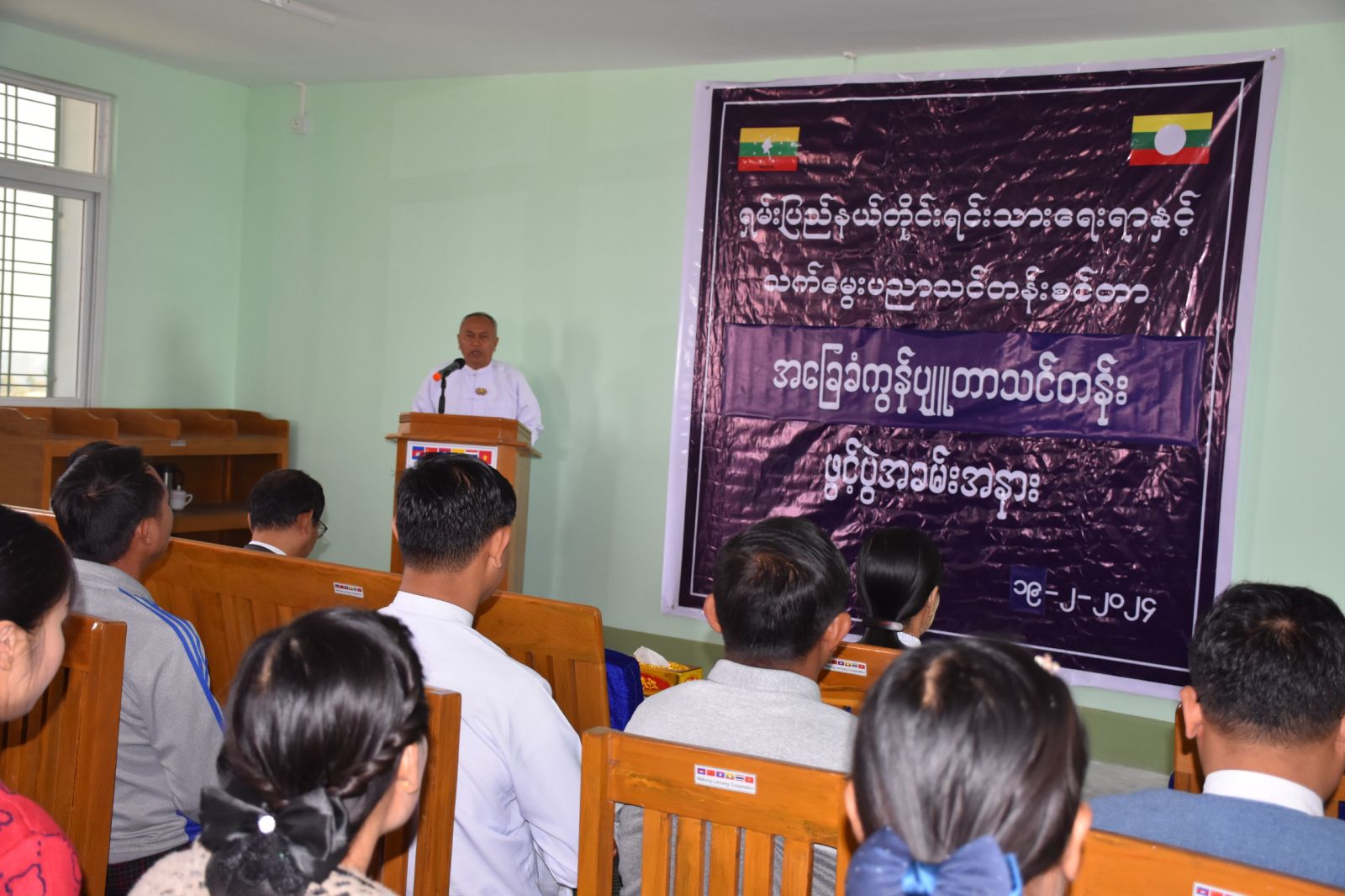 ယင်းနောက် ရှမ်းပြည်နယ် အစိုးရအဖွဲ့မှ ထောက်ပံ့ပေးသည့် သင်ထောက်ကူပစ္စည်းများအား ရှမ်းပြည်နယ်အစိုးရအဖွဲ့ဝင်၊ တိုင်းရင်းသားရေးရာဝန်ကြီး ဦးအောင်ကြည်ဝင်းနှင့် တိုင်းရင်းသား အခွင့်အရေးများကာကွယ်စောင့်ရှောက်ရေးဦးစီးဌာန၊ ညွှန်ကြားရေးမှူးချုပ်တို့က ပေးအပ်ခဲ့ပြီး စုပေါင်းမှတ်တမ်းတင်ဓါတ်ပုံရိုက်ကူးခဲ့ပါသည်။ အဆိုပါသင်တန်းကို (၁၉-၂-၂၀၂၄)ရက်နေ့မှ (၁၉-၃-၂၀၂၄) ရက်နေ့အထိ ဖွင့်လှစ်မည်ဖြစ်ပြီး ရှှမ်းပြည်နယ်အတွင်းရှိ ရှမ်း၊ ပအိုဝ်း၊ ဓနု၊ တောင်ရိုး၊ အင်းသား၊ လီဆူ၊ ယင်းကြား၊ ယင်းနက်၊ ထနော့ စသည့် တိုင်းရင်းသား မျိုးနွယ်စုမှ သင်တန်းသူ/သား(၂၀)ဦး တက်ရောက်သင်ကြားလျက်ရှိပါသည်။