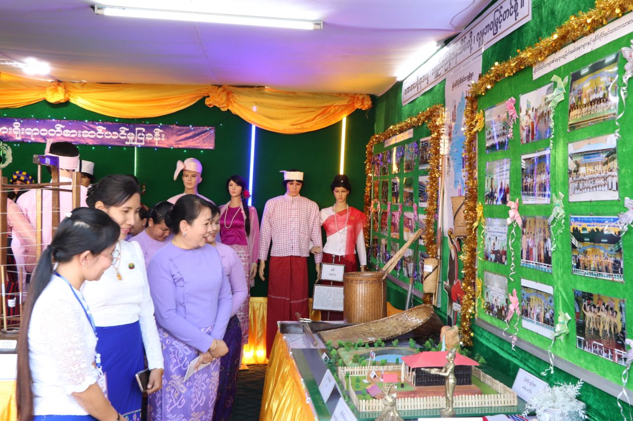 တိုင်းရင်းသားလူမျိုးများရေးရာဝန်ကြီးဌာနပြခန်းတွင် ကချင်၊ ကယား၊ ကရင်၊ ချင်း၊ ဗမာ၊ မွန်၊ ရခိုင်၊ ရှမ်း တိုင်းရင်းသားမျိုးနွယ်စုကြီး(၈)မျိုး၏ ရိုးရာဝတ်စား ဆင်ယင်ထုံးဖွဲ့မှုများ၊ ကရင်၊ ဗမာ၊ ချင်း၊ ရခိုင်တိုင်းရင်းသားတို့၏ရိုးရာအိမ်ပုံစံငယ်များ၊ တိုင်းရင်းသားများ၏ နေ့ထူးနေ့မြတ်အခမ်းအနား မှတ်တမ်းဓါတ်ပုံများနှင့် တိုင်းရင်းသားဘာသာစာပေသင်မွမ်းမံသင်တန်း ဖွင့်လှစ်သင်ကြားမှုမှတ်တမ်း ဓါတ်ပုံများ၊ ဝန်ကြီးဌာန၏ မျှော်မှန်းချက်(Vision) နှင့် ဦးစီးဌာန၏ဆောင်ပုဒ်များ၊ မြန်မာနိုင်ငံရှိ တိုင်းရင်းသားမျိုးနွယ်စု (၁၃၅) မျိုးစာရင်းများ၊ တိုင်းဒေသကြီး နှင့် ပြည်နယ်အတွင်း တိုင်းရင်းသား ဘာသာစာပေသင်ကြားခွင့်ရရှိသည့် စာပေ(၇၂)မျိုးစာရင်းများ၊ မြန်မာနိုင်ငံရှိ တိုင်းရင်းသားလူမျိုး များနေထိုင်ရာပြမြေပုံ၊ ကရင်ရိုးရာဖားစည်နှင့် အခြားရိုးရာတူရိယာအသုံးအဆောင်ပစ္စည်းများ၊ ရခိုင်ရိုးရာစည်တော်နှင့် အခြားရိုးရာတူရိယာအသုံးအဆောင်ပစ္စည်းများ၊ ချင်းတိုင်းရင်းသား ရိုးရာ တူရိယာအသုံးအဆောင်ပစ္စည်းများအား ခင်းကျင်းပြသဆောင်ရွက်ခဲ့ပါသည်။