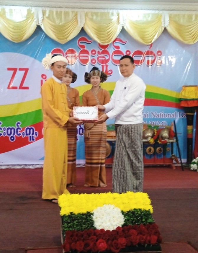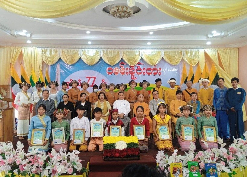(၇၇)ကြိမ်မြောက် သျှမ်းအမျိုးသားနေ့အောင်ပွဲအခမ်းအနားကို ၇.၂.၂၀၂၄ ရက်နေ့က တောင်ငူမြို့၊ ဘိုးဘွားရိပ်သာခန်းမ၌ ကျင်းပပြုလုပ်ခဲ့ရာ ပဲခူးတိုင်းဒေသကြီးအစိုးရအဖွဲ့၊ တိုင်းရင်းသားရေးရာဝန်ကြီး၊ တိုင်းရင်းသားစာပေနှင့်ယဉ်ကျေးမှုဦးစီးဌာနမှ တာဝန်ခံရှိသူများ ရန်ကုန်တိုင်းဒေသကြီး ရှမ်းစာပေနှင့်ယဉ်ကျေးမှုကော်မတီ နာယက၊ ပဲခူးတိုင်းဒေသကြီး ရှမ်းစာပေနှင့်ယဉ်ကျေးမှု ကော်မတီအဖွဲ့ဝင်များ၊ တောင်ငူခရိုင် ရှမ်းစာပေနှင့်ယဉ်ကျေးမှု လူငယ်အသင်း ဥက္ကဋ္ဌနှင့်အဖွဲ့ဝင်များ၊ ဌာနဆိုင်ရာများမှ တာဝန်ရှိပုဂ္ဂိုလ်များ၊ ဖိတ်ကြားထားသော ဧည့်သည်တော်များနှင့် တိုင်းရင်းသား/တိုင်းရင်းသူများ တက်ရောက်ခဲ့ကြပါသည်။