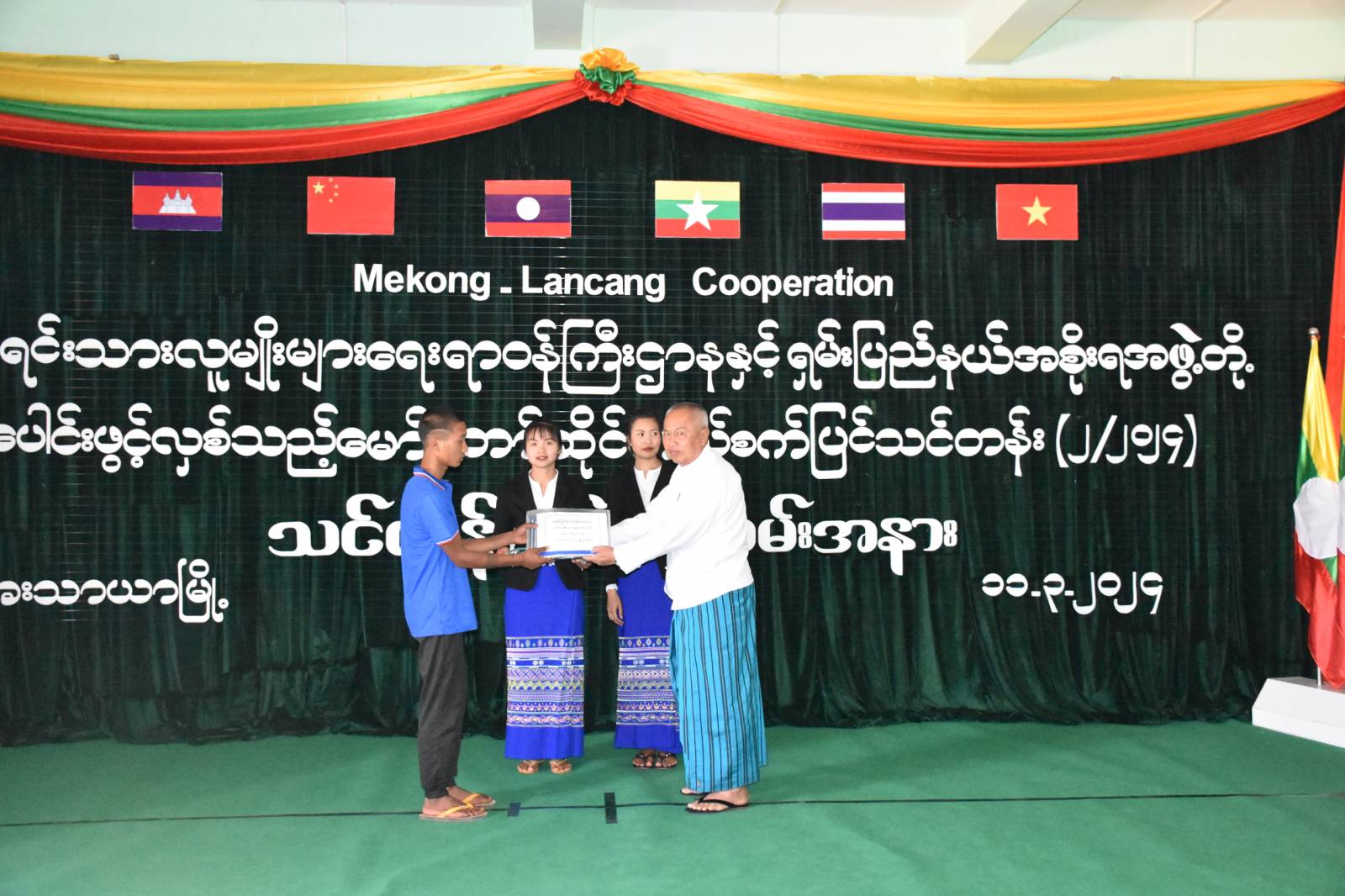 ထို့နောက် တိုင်းရင်းသားလူမျိုးများရေးရာဝန်ကြီးဌာန၊ တိုင်းရင်းသားအခွင့်အရေးများ ကာကွယ်စောင့်ရှောက်ရေးဦးစီးဌာန၊ ရှမ်းပြည်နယ်ညွှန်ကြားရေးမှူးရုံးမှ ဒုတိယညွှန်ကြားရေးမှူး ဦးချစ်ဇော်လင်းက အမှာစကားပြောကြားရာတွင် ဤသင်တန်းစင်တာကို မဲခေါင်-လန်ချန်း ပူးပေါင်းဆောင်ရွက်မှုအထူးရန်ပုံငွေနှင့် ပြည်ထောင်စုဘဏ္ဍာရန်ပုံငွေများဖြင့် တည်ဆောက်ခဲ့ခြင်း ဖြစ်ကြောင်း၊ သင်တန်းများကို တိုင်းရင်းသားလူမျိုးများ၏ လူမှုစီးပွားဘဝ ဖွံ့ဖြိုးတိုးတက်ရန် ရည်ရွယ်ပြီး ဖွင့်လှစ်ရခြင်းဖြစ်ပါကြောင်း၊ သင်တန်းစင်တာမှ ချမှတ်ထားသည့် စည်းကမ်းချက်များကို သေချာစွာလိုက်နာကြစေလိုပါကြောင်း၊ သင်တန်းသားများအနေဖြင့် တိုင်းရင်းသားလူမျိုးများရေးရာ ဝန်ကြီးဌာန၏ နိုင်ငံတော်အကြီးအကဲများနှင့် ရှမ်းပြည်နယ်အစိုးရအဖွဲ့၏ တိုင်းရင်းသားလူမျိုးများ အပေါ်ထားရှိသည့်စေတနာများအားသိရှိနားလည်တန်ဖိုးထားစေလိုပါကြောင်း၊ မိမိတို့၏အပြုအမူ များသည် မိမိတို့တိုင်းရင်းသားမျိုးနွယ်စု၏ပုံရိပ်မှတစ်ဆင့်၊ ဌာနနှင့်နိုင်ငံတော် အပေါ်ထင်ဟပ်စေ မည်ဖြစ်၍ အပြုအမူများကို ဂရုတစိုက်ပြုမူနေထိုင်သင့်ပါကြောင်း၊ ယခုသင်တန်းမှ သင်ယူတတ် မြောက်သွားသောပညာရပ်အားလက်တွေ့အသုံးချပြီး ဆက်လက်ပြန့်ပွားနိုင်ရန် ကြိုးစားဆောင်ရွက် ရမည်ဖြစ်ကြောင်း၊ သင်တန်းများ ဖြစ်မြောက်စေရန် ဆောင်ရွက်ပေးပါသော ရှမ်းပြည်နယ်အစိုးရ အဖွဲ့ဝင်၊ တိုင်းရင်းသားရေးရာဝန်ကြီးနှင့် သင်ကြားပေးပါသော ဆရာ/ဆရာမ အားလုံးကိုလည်း အထူးကျေးဇူးတင်ပါကြောင်း ပြောကြားခဲ့ပါသည်။