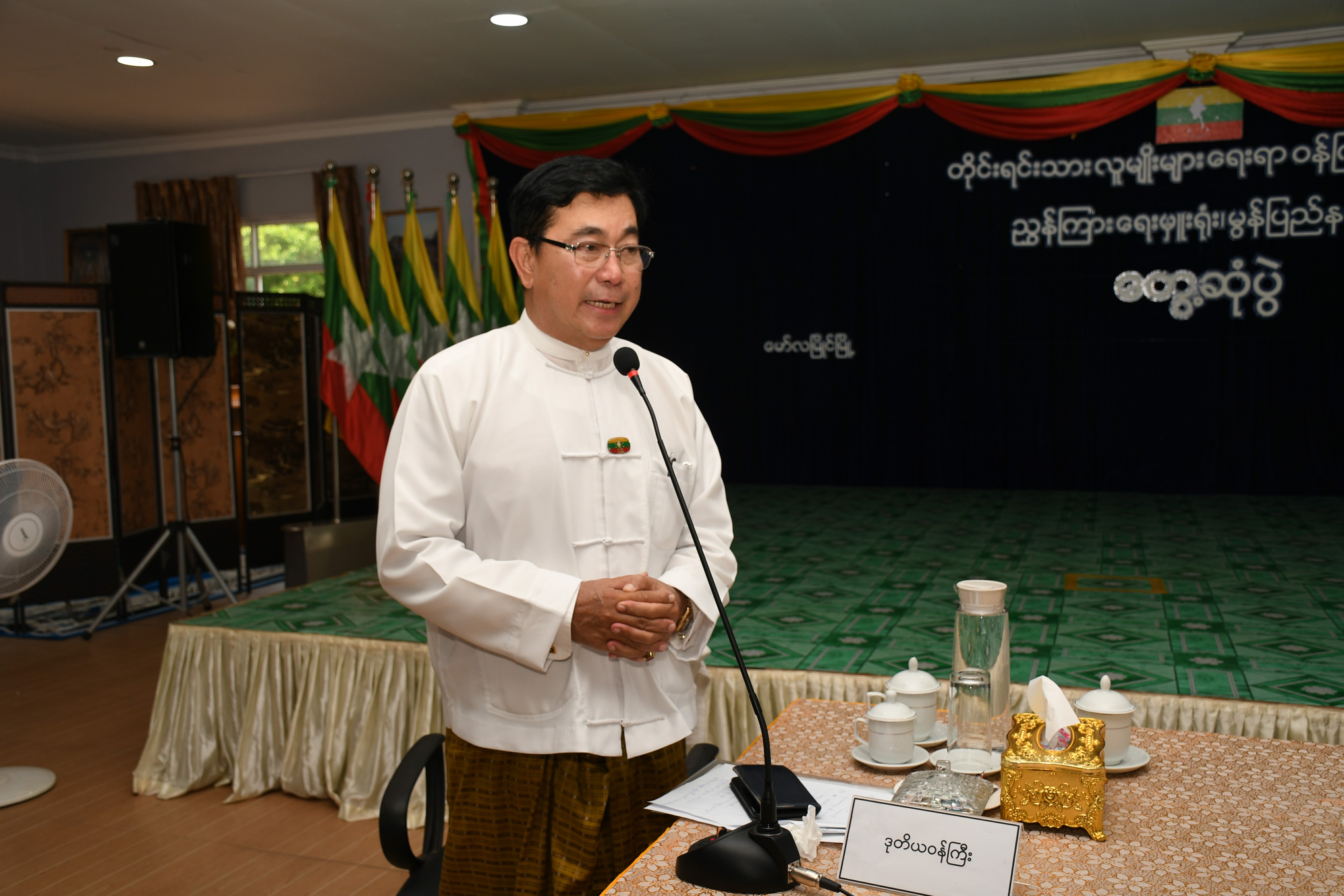 ထို့နောက် မွန်ပြည်နယ်အစိုးရအဖွဲ့ဝင် တိုင်းရင်းသားရေးရာဝန်ကြီး ဦးအခင်မောင်ဦးက မွန်ပြည်နယ်အတွင်း တိုင်းရင်းသားရေးရာကိစ္စရပ်များနှင့် တိုဒေသအတွင်း ဖွံ့ဖြိုးရေး ဆိုင်ရာကိစ္စရပ်များ ဆောင်ရွက်နေမှုအခြေအနေများကို ရှင်းလင်းတင်ပြခဲ့ပါသည်။
