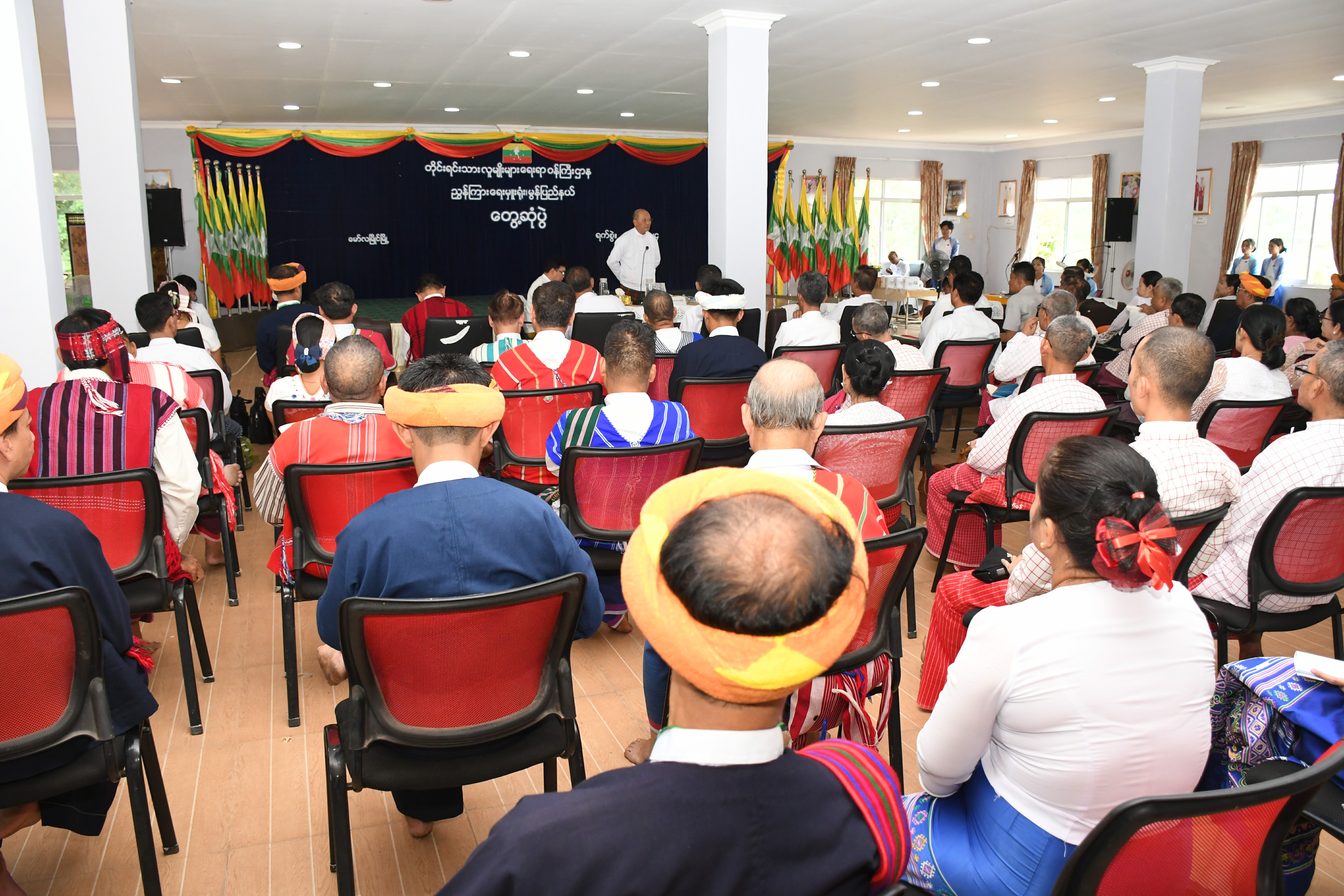 ပထမဦးစွာ ပြည်ထောင်စုဝန်ကြီး Jeng Phang နော်တောင်က တွေ့ဆုံအမှာစကား ပြောကြားရာတွင် မိမိတို့ဝန်ကြီးဌာနအနေဖြင့် တိုင်းရင်းသားများ၏စာပေနှင့် ယဉ်ကျေးမှုများကို ထိန်းသိမ်းမြှင့်တင်ခြင်း၊ တိုင်းရင်းသားရေးရာများကိုဆောင်ရွက်ခြင်းနှင့် စစ်မှန်သော ပြည်ထောင်စုစိတ်ဓာတ်တိုးတက်ခိုင်မာလာစေရေးအတွက် ကျန်းမာရေး၊ ပညာရေးနှင့် လူမှု စီးပွားဘဝဖွံ့ဖြိုးတိုးတက်စေရန် လုပ်ငန်းတာဝန်များကို နိုင်ငံတော်က ပြဋ္ဌာန်းထားရှိသည့် ဥပဒေ၊ နည်းဥပဒေများနှင့်အညီ ချမှတ်ဆောင်ရွက်လျက်ရှိပါကြောင်း၊ နိုင်ငံတော်စီမံ အုပ်ချုပ်ရေးကောင်စီ၏ ဦးတည်ချက် (၉)ရပ်အနက် လူမှုရေးဦးတည်ချက်ပါ တစ်နိုင်ငံလုံး အသိပညာအတတ်ပညာ မြင့်မားတိုးတက်စေရေး၊ ကုန်ထုတ်လုပ်မှုအထောက်အကူပြု ပညာရှင်များထွန်းကားလာစေရေးတို့အတွက် လူတိုင်းလက်လှမ်းမီသည့် ဘက်စုံပညာရေး စနစ်ကို အကောင် အထည်ဖော်ဆောင်ရေးဆိုသည့် ဦးတည်ချက်ကို အထောက်အကူပြုစေရန်အတွက် တိုင်းဒေသကြီး/ ပြည်နယ်များတွင် တိုင်းရင်းသားဘာသာစာပေ သင်ကြားမှုကို ပညာရေးဝန်ကြီးဌာနနှင့် ပေါင်းစပ်ညှိနှိုင်းဆောင်ရွက်ပေးလျက်ရှိပါကြောင်း၊ တိုင်းရင်းသားစာပေနှင့်ယဉ်ကျေးမှုအဖွဲ့များ အသင်းအဖွဲ့မှတ်ပုံတင်ခြင်း ဆိုင်ရာဥပဒေနှင့်အညီ စနစ်တကျ မှတ်ပုံတင်နိုင်ရေးကိစ္စနှင့် တိုင်းရင်းသားများအတွက် တိုက်ရိုက်အကျိုးခံစား စေမည့် လုပ်ငန်းများကို ဥပဒေနှင့်အညီ စိစစ်ဆောင်ရွက်ပေးလျက်ရှိပါကြောင်း၊ တိုင်းရင်းသားဒေသများတွင် စီမံကိန်းများ အကောင်အထည်ဖော်ဆောင်ရွက်ရာ၌ မြေလွတ်၊ မြေလတ်၊ မြေရိုင်းများတွင် ဆောင်ရွက်မည့်လုပ်ငန်းများတွင်လည်း တိုင်းရင်းသားများ၏ ရိုးရာယဉ်ကျေးမှုဓလေ့ထုံးတမ်းစဉ်လာအရ သက်ဆိုင်သည့်မြေများ ပါဝင်မှုရှိ/မရှိ အချိန်နှင့်တပြေးညီ ကွင်းဆင်းစိစစ်ပြီး ဥပဒေ၊ နည်း ဥပဒေ၊ လုပ်ထုံး လုပ်နည်းများနှင့်အညီ မြေလွတ်၊ မြေလတ်၊ မြေရိုင်းများ စီမံခန့်ခွဲမှုဗဟိုကော်မတီသို့ သဘောထားမှတ်ချက်များ ပြန်ကြားဆောင်ရွက် ပေးလျက်ရှိပါကြောင်း၊ မိမိတို့တိုင်းရင်းသား လူမျိုးများရေးရာဝန်ကြီးဌာန၏ အဓိကလုပ်ငန်း ဖြစ်သည့် တိုင်းရင်းသားရေးရာနှင့် လူမှုစီးပွားဘဝဖွံ့ဖြိုးတိုးတက်ရေးလုပ်ငန်းများ ဆောင်ရွက်နိုင်ရန်နှင့် တိုင်းရင်းသားအချင်းချင်း (သို့မဟုတ်) တိုင်းရင်းသားလူမျိုးများအကြားဖြစ်ပွားသည့် အငြင်းပွားမှုများကို ပေါင်းစပ်ညှိနှိုင်းဖြေရှင်းဆောင်ရွက်နိုင်ရန်အတွက် သက်ဆိုင်ရာ တိုင်းဒေသကြီး/ပြည်နယ် တိုင်းရင်းသားရေးရာဝန်ကြီးများထံ ဥပဒေ၊ နည်းဥပဒေများနှင့်အညီ တာဝန်ခွဲဝေအပ်နှင်းထားပြီး ဖြစ်ပါကြောင်း၊ တိုင်းရင်းသားစာပေနှင့်ယဉ်ကျေးမှု အသင်းအဖွဲ့များအနေဖြင့် မိမိ