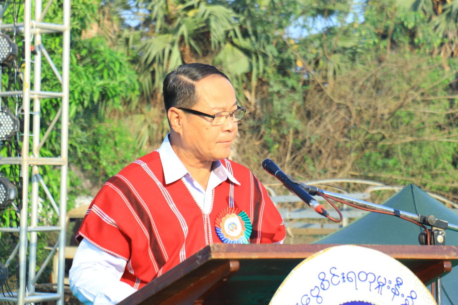 အခမ်းအနားတွင် တိုင်းရင်းသားလူမျိုးများရေးရာဝန်ကြီးဌာန၊ ပြည်ထောင်စုဝန်ကြီး Jeng Phang နော်တောင်၏ ၂၀၂၄ခုနှစ်တွင် ကျရောက်သည့် (၇၅)နှစ်မြောက် စိန်ရတု ပအိုဝ်းအမျိုးသားနေ့ အခမ်းအနားအတွက် ပေးပို့လာသည့် သဝဏ်လွှာကို ကရင်ပြည်နယ် အစိုးရအဖွဲ့ဝင် တိုင်းရင်းသားရေးရာဝန်ကြီး ဦးစန်းကိုက ဖတ်ကြားခဲ့ပြီး ကရင်ပြည်နယ်အစိုးရအဖွဲ့ ပြည်နယ်ဝန်ကြီးချုပ်မှ အဖွင့်အမှာစကား ပြောကြားခဲ့ပါသည်။ အဆိုပါ အခမ်းအနား ကျင်းပပြုလုပ်နိုင်ရေးအတွက် ကရင်ပြည်နယ်အစိုးရအဖွဲ့မှ ထောက်ပံ့ငွေ ကျပ်သိန်း(၁၀၀)တိတိအား ကရင်ပြည်နယ် ဝန်ကြီးချုပ်မှ ပအိုဝ်းစာပေနှင့်ယဉ်ကျေးမှုအသင်းဥက္ကဌ ဦးခွန်မင်းအောင်အား ပေးအပ်ချီးမြှင့်ခဲ့ပါသည်။
