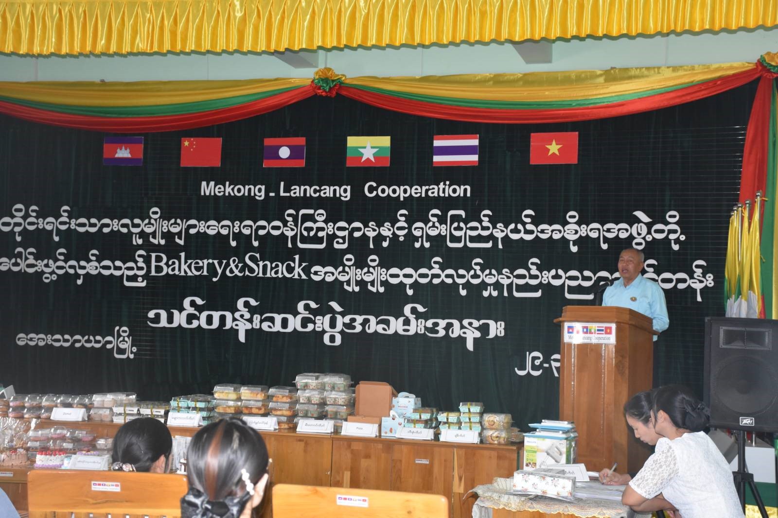 အခမ်းအနားတွင် ရှမ်းပြည်နယ်အစိုးရအဖွဲ့ဝင်၊ တိုင်းရင်းသားရေးရာဝန်ကြီး ဦးအောင်ကြည်ဝင်းက တိုင်းရင်းသားလူမျိုးရေးရာဝန်ကြီးဌာနသည် တိုင်းရင်းသားမျိုးနွယ်စုများ၏ လူမှုဘဝဖွံ့ဖြိုးတိုးတက်ရေးကို စဉ်ဆက်မပြတ်ဆောင်ရွက်ပေးရန် ရည်ရွယ်၍ ဤအဆောက်အဦ ကို ဆောက်လုပ်ခဲ့ပါကြောင်း၊ ဤသင်တန်းစင်တာတွင်ဖွင့်လှစ်မည့် သင်တန်းများကိုလည်း ပြည်ထောင်စုနှင့် ရှမ်းပြည်နယ်အစိုးရအဖွဲ့မှရရှိသည့် ရန်ပုံငွေများပေါ်မူတည်၍ ဖွင့်လှစ်ပေးနိုင်ရန် စီစဉ်ဆောင်ရွက်လျက်ရှိပါကြောင်း၊ ပထမအကြိမ်မော်တော်ဆိုင်ကယ်စက်ပြင်သင်တန်း ဖွင့်လှစ် ပေးခဲ့ပြီး ယခုဒုတိယအကြိမ်ထပ်မံဖွင့်လှစ်ပေးလျက်ရှိပါကြောင်း၊ အခြေခံကွန်ပျူတာသင်တန်း တစ်ကြိမ်လည်းဖွင့်လှစ်ပေးခဲ့ပြီးဖြစ်ပါကြောင်း၊ ယခု Bakery & Snack အမျိုးမျိုးထုတ်လုပ်မှု နည်းပညာသင်တန်းသည်လည်း သင်တန်းသား၊ သင်တန်းသူများအတွက် အကျိုးစီးပွားဖြစ်ထွန်း စေမည့် အသေးစား၊ အလတ်စားကုန်ထုပ်လုပ်မှုလုပ်ငန်း ဆောင်ရွက်နိုင်ရန်ရည်ရွယ်၍ ဖွင့်လှစ် ပေးခြင်းဖြစ်ပါကြောင်း၊ သင်တန်းကာလသည် ရက်သတ္တ(၁)ပါတ် ဖြစ်သော်လည်း မုန့်ပြုလုပ်နည်း (၂၁) မျိုးသင်ကြားပေးနိုင်သည့်အပြင် တက်ရောက်လာသည့်သင်တန်းသားသူများသည်လည်း ဉာဏ်ကွန့်ပြီးတီထွင်ကြံဆ ကြိုးစားသင်ယူကြသည်ကိုတွေ့ရပါကြောင်း၊ ရှမ်းပြည်နယ်နှင့် ကယားပြည်နယ်အသေးစားစက်မှုလက်မှုလုပ်ငန်းဦးစီးဌာနတို့မှ တတ်ကျွမ်းသည့် ပညာရှင်များ လာရောက်သင်ကြားပေးသည့်အတွက် ကျေးဇူးတင်ပါကြောင်း၊ တိုင်းရင်းသားများအတွက် အကျိုး ပြုမည့်အခြားသင်တန်းများကိုလည်း သက်ဆိုင်ရာဌာနများနှင့် ပူးပေါင်းဖွင့်လှစ်ဆောင်ရွက် သွား မည်ဖြစ်ပါကြောင်း၊ နောင်တွင်ရပ်ဝေးမှ သင်တန်းသားများပါ ပါဝင်တက်ရောက်နိုင်ရန် ထပ်မံ ကြိုးစားသွားမည်ဖြစ်ကြောင်းနှင့် သင်တန်းသား၊ သင်တန်းသူများက သင်တန်းမှ သင်ကြားပေး သည့်မုန့်အမျိုးအစားများအားလုံးကို စိတ်ပါဝင်စားစွာ လေ့လာသင်ယူနေသည်ကို တွေ့ရသည့် အတွက် များစွာ ကျေးဇူးတင်ပါကြောင်း အမှာစကားပြောကြားခဲ့ပါသည်။