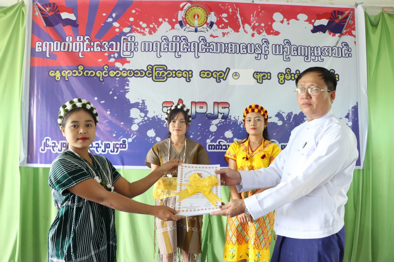 ဧရာဝတီတိုင်းဒေသကြီး၊ တိုင်းရင်းသားစာပေနှင့်ယဉ်ကျေးမှုဦးစီးဌာန၊ ညွှန်ကြားရေးမှူးရုံး အနေဖြင့် ကရင်တိုင်းရင်းသားစာပေနှင့်ယဉ်ကျေးမှုအသင်းနှင့်ပူးပေါင်း၍ တိုင်းဒေသကြီးအစိုးရအဖွဲ့၏ ခွင့်ပြုရန်ပုံငွေဖြင့် နွေရာသီကရင်စာပေသင်ကြားရေး ဆရာ၊ ဆရာမများမွမ်းမံသင်တန်း အမှတ်စဉ် (၁/၂၀၂၄) သင်တန်းဆင်းပွဲအခမ်းအနားကို ၂၀၂၄ ခုနှစ်၊ မတ်လ ၃၁ ရက်နေ့၊ နံနက်ပိုင်းတွင် ပုသိမ်မြို့၊ မရမ်းချောင်း၊ ကက်သလစ်သာသနာဝင်း၌ ကျင်းပပြုလုပ်ခဲ့ရာ အခမ်းအနားသို့ ဧရာဝတီတိုင်းဒေသကြီး အစိုးရအဖွဲ့ဝင် တိုင်းရင်းသားရေးရာဝန်ကြီးနှင့်အတူ တိုင်းရင်းသားစာပေနှင့်ယဉ်ကျေးမှုဦးစီးဌာန နှင့် တိုင်းရင်းသားအခွင့်အရေးများကာကွယ်စောင့်ရှောက်ရေးဦးစီးဌာနမှ အရာထမ်း၊ အမှုထမ်းများ၊ ကရင် တိုင်းရင်းသားစာပေနှင့်ယဉ်ကျေးမှုအသင်းဝင်များ၊ ကရင်တိုင်းရင်းသားဘာသာစာပေသင် TA/LT ဆရာ၊ ဆရာမများနှင့် ဖိတ်ကြားထားသောဧည့်သည်တော်များ တက်ရောက်ခဲ့ကြပါသည်။