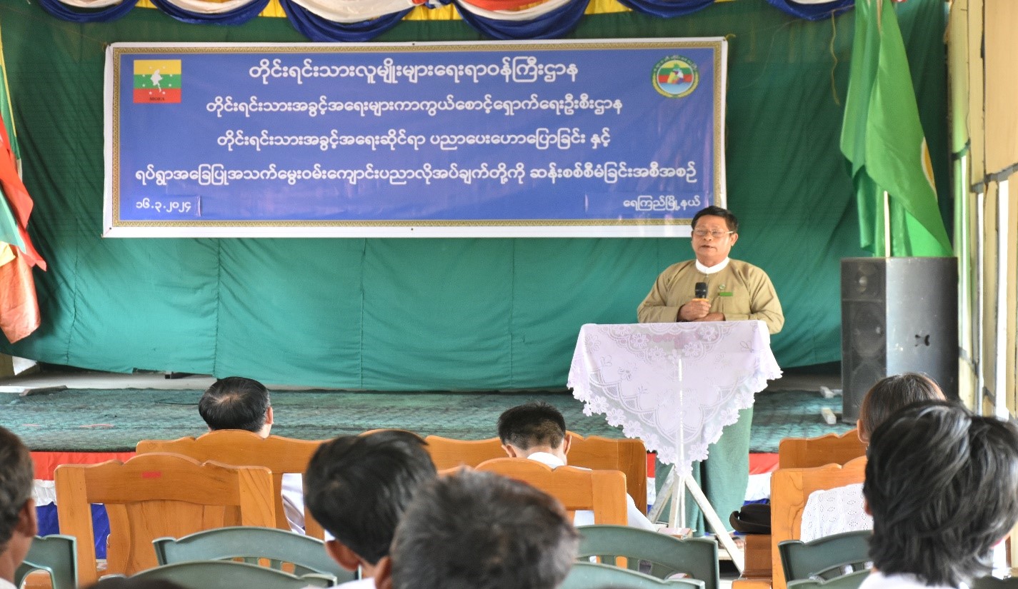တိုင်းရင်းသားအခွင့်အရေးဆိုင်ရာ အသိပညာပေးဟောပြောခြင်းနှင့် ရပ်ရွာအခြေပြုအသက်မွေးဝမ်း ကျောင်း ပညာလိုအပ်ချက်တို့ကို ဆန်းစစ်စီမံခြင်းအစီအစဉ်ကို ရေကြည်မြို့နယ်တွင် ကျင်းပ ဧရာဝတီ၊ မတ် ၁၆