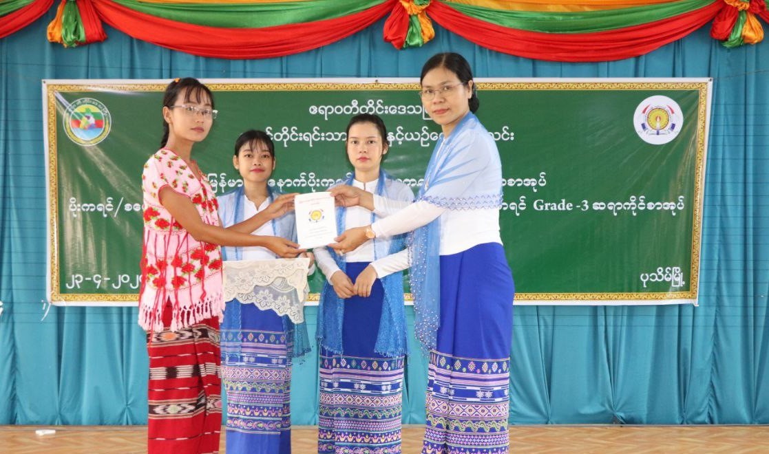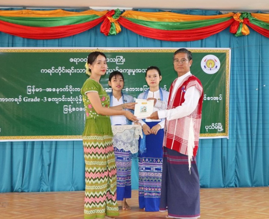 မြန်မာ-အနောက်ပိုးကရင်-စကောကရင် စကားပြောစာအုပ်၊ G-3 ဆရာကိုင် နှင့် ကျောင်းသုံးပုံနှိပ်စာအုပ်များ ဖြန့်ဝေပေးအပ်ပွဲအခမ်းအနားကျင်းပ ဧရာဝတီ၊ ဧပြီလ ၂၃
