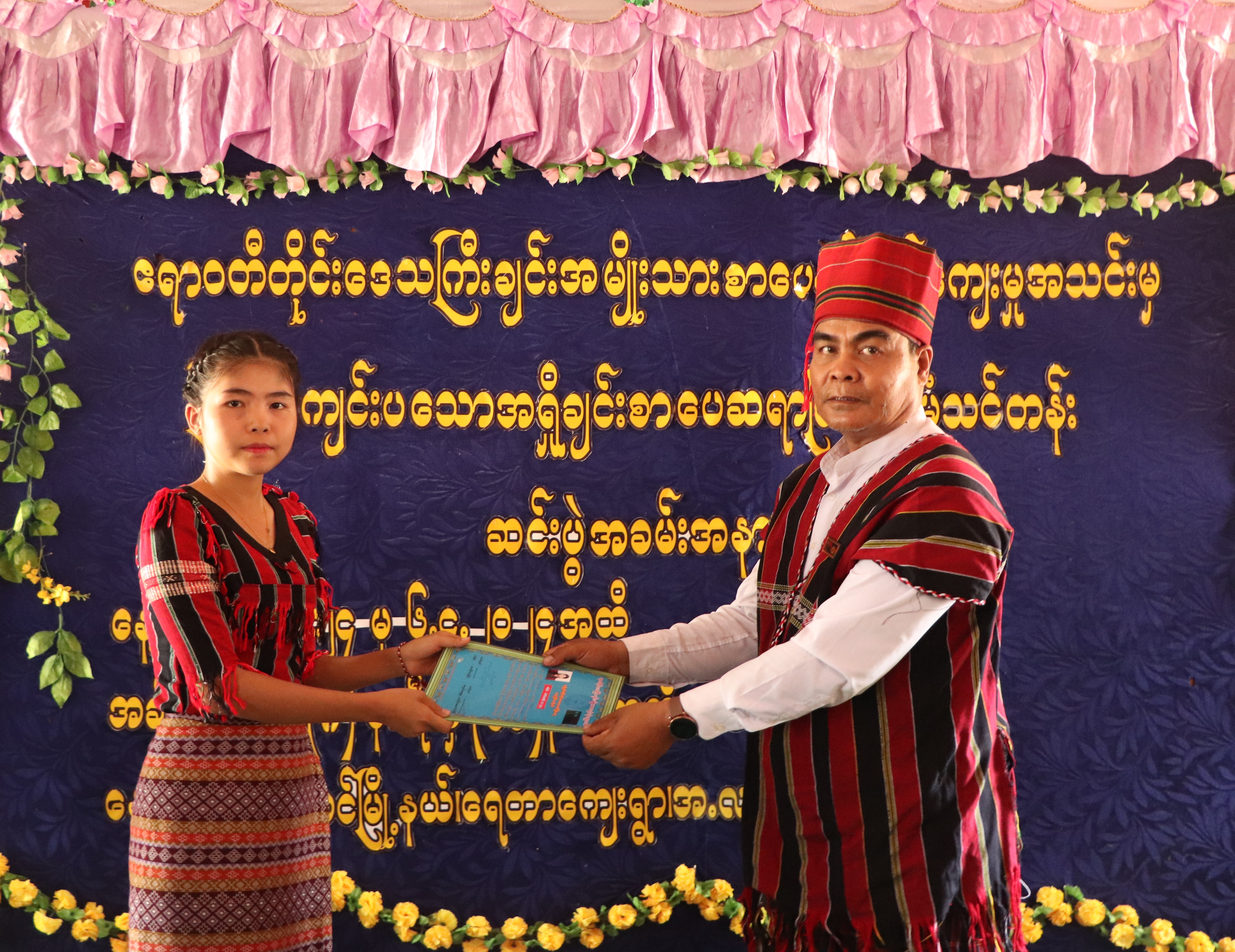 ဧရာဝတီတိုင်းဒေသကြီး၊ တိုင်းရင်းသားစာပေနှင့်ယဉ်ကျေးမှုဦးစီးဌာန၊ ညွှန်ကြားရေးမှူးရုံး အနေဖြင့် ချင်းအမျိုးသားစာပေနှင့်ယဉ်ကျေးမှုအသင်းနှင့် ပူးပေါင်း၍ တိုင်းဒေသကြီးအစိုးရအဖွဲ့၏ ခွင့်ပြုရန်ပုံငွေဖြင့် နွေရာသီ အရှိုချင်းစာပေဆရာဖြစ်မွမ်းမံသင်တန်း အမှတ်စဉ် (၁/၂၀၂၄) သင်တန်း ဆင်းပွဲအခမ်းအနားကို ၂၀၂၄ ခုနှစ်၊ ဧပြီလ ၆ ရက်နေ့တွင် မြန်အောင်မြို့နယ်၊ ရေတာကျေးရွာ၊ အ.လ.က-ဘန့်ဘွေးကုန်းကျောင်း၌ ကျင်းပပြုလုပ်ခဲ့ရာ အခမ်းအနားသို့ တိုင်းရင်းသားစာပေနှင့်ယဉ်ကျေးမှုဦးစီး ဌာနမှ တာဝန်ခံအရာရှိနှင့်အတူ အမှုထမ်းများ၊ သက်ဆိုင်ရ ဌာနများမှ တာဝန်ရှိသူများ၊ ချင်းအမျိုးသား စာပေနှင့်ယဉ်ကျေးမှုအသင်းဝင်များ၊ ချင်းတိုင်းရင်းသားဘာသာစာပေသင် TA/LT ဆရာ၊ ဆရာမ များနှင့် ဖိတ်ကြားထားသောဧည့်သည်တော်များ တက်ရောက်ခဲ့ကြပါသည်။