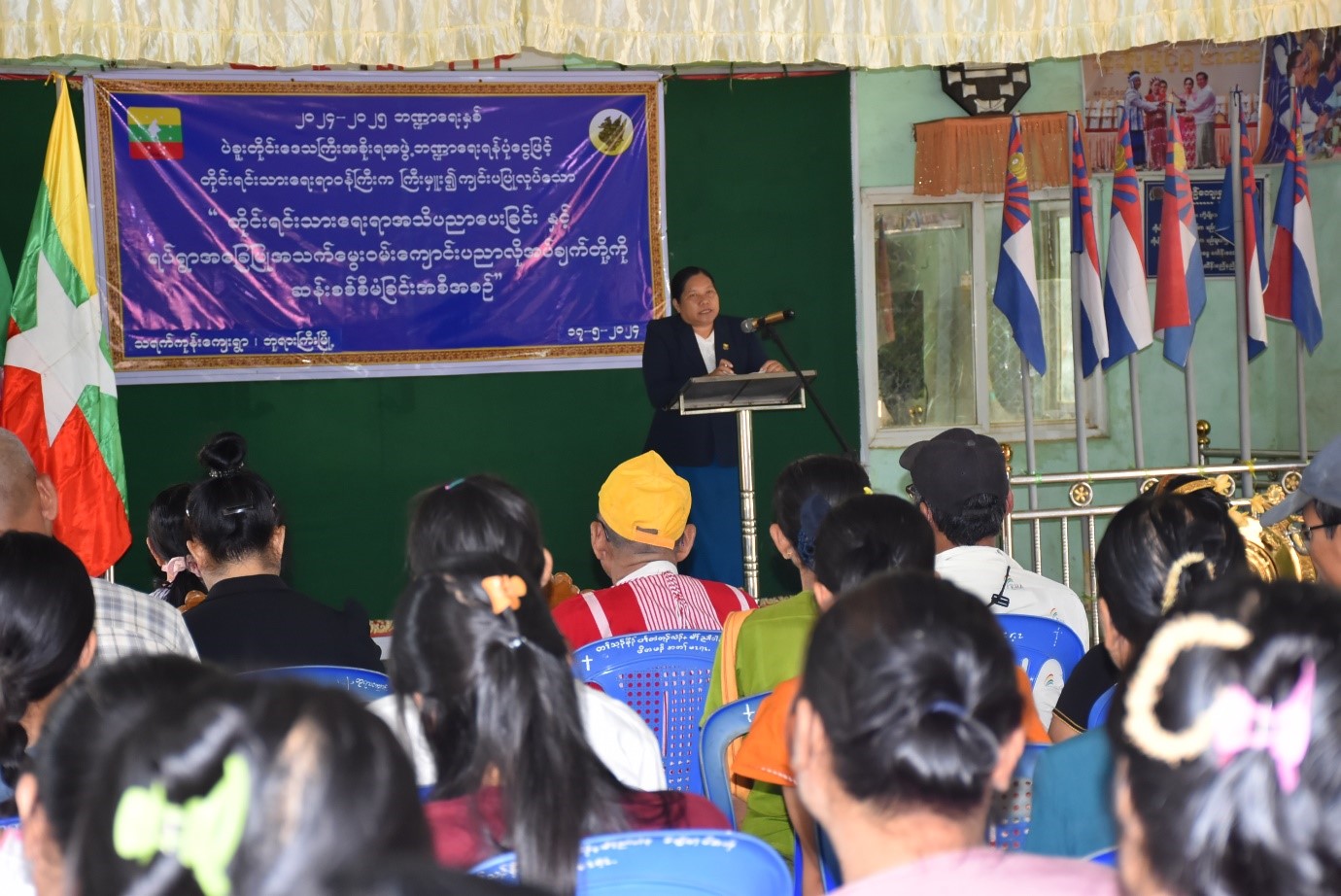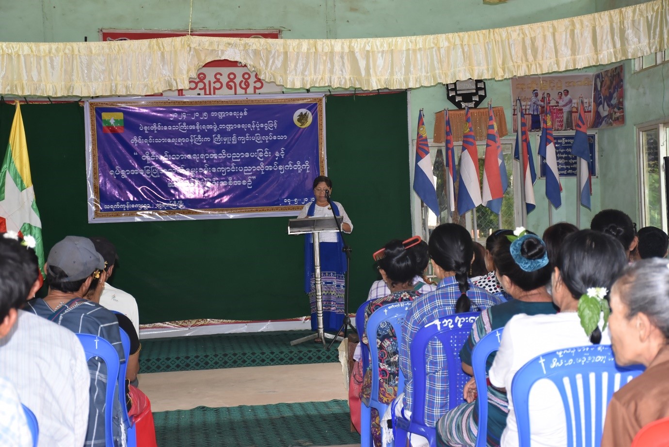 အခမ်းအနားတွင် တိုင်းရင်းသားအခွင့်အရေးများကာကွယ်စောင့်ရှောက်ရေးဦးစီးဌာန၊ ပဲခူး တိုင်းဒေသကြီး ညွှန်ကြားရေးမှူးရုံးမှ ညွှန်ကြားရေးမှူး ဒေါ်ခိုင်ရွှေဝါက တိုင်းရင်းသားလူမျိုးများ၏ အခွင့်အရေးကာကွယ်စောင့်ရှောက်သည့် ဥပဒေ၊ နည်းဥပဒေများပါ အခန်းကဏ္ဍများ၊ ဒေသခံ တိုင်းရင်းသားတို့၏ အသက်မွေးဝမ်းကြောင်းပညာလိုအပ်ချက်ဆိုင်ရာ လက်ရှိအခြေအနေမှန်ကို သိရှိရန် စစ်တမ်းကောက်ယူခြင်းဖြစ်ကြောင်း၊ တိုင်းရင်းသားများအနေဖြင့် မိမိတို့ဒေသများ၏ လူမှုရေး၊ စီးပွားရေး၊ ကျန်းမာရေးနှင့် ဒေသဖွံ့ဖြိုးတိုးတက်ရေး (ဥပမာ ကျေးလက်လမ်း၊ တံတား၊ လျှပ်စစ်မီး၊ ဆေးပေးခန်း၊ စာသင်ကျောင်း) တို့အတွက် လိုအပ်ချက်များရှိပါကတင်ပြပေးကြရန် လိုအပ်ပါကြောင်း၊ တင်ပြပေးမှသာလျှင် လိုအပ်ချက်များကို ဝိုင်းဝန်းကူညီ ဆောင်ရွက်ပေးနိုင်မှာ ဖြစ်ကြောင်း၊ မြန်မာနိုင်ငံကလေးအလုပ်သမားနှင့်သက်ဆိုင်သည့် ဥပဒေပြဋ္ဌာန်းချက်များ၊ ဖွဲ့စည်းပုံ အခြေခံဥပဒေပါ နိုင်ငံသားများ၏ မူလအခွင့်အရေးနှင့် တာဝန်များအကြောင်းကို လည်းကောင်း ရှင်းလင်းပြောကြားခဲ့ပါသည်။