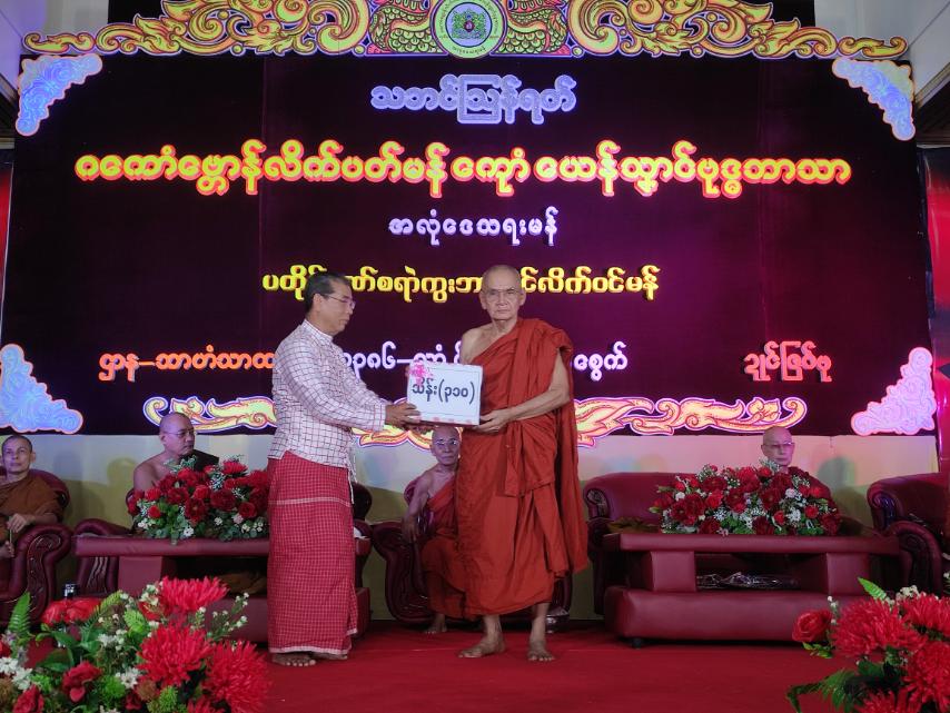 အခမ်းအနားတွင် မွန်ပြည်နယ်အစိုးရအဖွဲ့ဝင် တိုင်းရင်းသားရေးရာဝန်ကြီး ဦးခင်မောင်ဦးက အမှာစကားပြောကြားခဲ့ပြီး မွန်ပြည်နယ်အစိုးရအဖွဲ့မှ ထောက်ပံ့သော ရန်ပုံငွေကျပ်သိန်း(၃၁၀)အား စီးပွားရေးရာဝန်ကြီးမှ နာယက ဆရာတော်ထံ ပေးအပ်ခဲ့ပြီး ထူးချွန်ဆုရ သင်တန်းသား/သူများအား ဆုချီးမြှင့်ခြင်းနှင့် သင်တန်းဆင်း လက်မှတ်များ ပေးအပ်ခဲ့ကြောင်း သတင်းရရှိပါသည်။