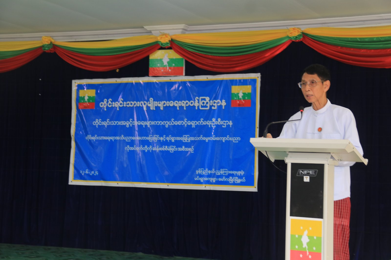 တိုင်းရင်းသားလူမျိုးများရေးရာဝန်ကြီးဌာန၊ တိုင်းရင်းသားအခွင့်အရေးများကာကွယ်စောင့် ရှောက်ရေးဦးစီးဌာန၊ မွန်ပြည်နယ်၊ ညွှန်ကြားရေးမှူးရုံးမှ ဦးဆောင်ကျင်းပပြုလုပ်သော “ တိုင်းရင်း သားရေးရာအသိပညာပေးဟောပြောခြင်းနှင့် ရပ်ရွာအခြေပြုအသက်မွေးဝမ်းကျောင်းပညာလိုအပ်ချက်တို့ကို ဆန်းစစ်စီမံခြင်းအခမ်းအနား” ကို (၁၂-၆-၂၀၂၄) ရက်နေ့ နံနက် (၀၉:၀၀) နာရီအချိန် တွင် မွန်ပြည်နယ်၊ မော်လမြိုင်မြို့နယ်၊ မင်းရွာကျေးရွာ၊ တိုင်းရင်းသားလူမျိုးများရေးရာဝန်ကြီး ဌာန၊ ညွှန်ကြားရေးမှူးရုံး၊ အစည်းအဝေးခန်းမ၌ ကျင်းပပြုလုပ်ခဲ့ရာ အခမ်းအနားသို့ မွန်ပြည်နယ် အစိုးရအဖွဲ့ဝင် တိုင်းရင်းသားရေးရာဝန်ကြီး ဦးခင်မောင်ဦး၊ ပြည်နယ်/ မြို့နယ်အဆင့် ဌာနဆိုင်ရာ ဝန်ထမ်းများ၊ မင်းရွာကျေးရွာအုပ်ချုပ်ရေးမှူးနှင့်အဖွဲ့ဝင်များ၊ ဒေသခံတိုင်းရင်းသားများ တက်ရောက်ခဲ့ ပါသည်။