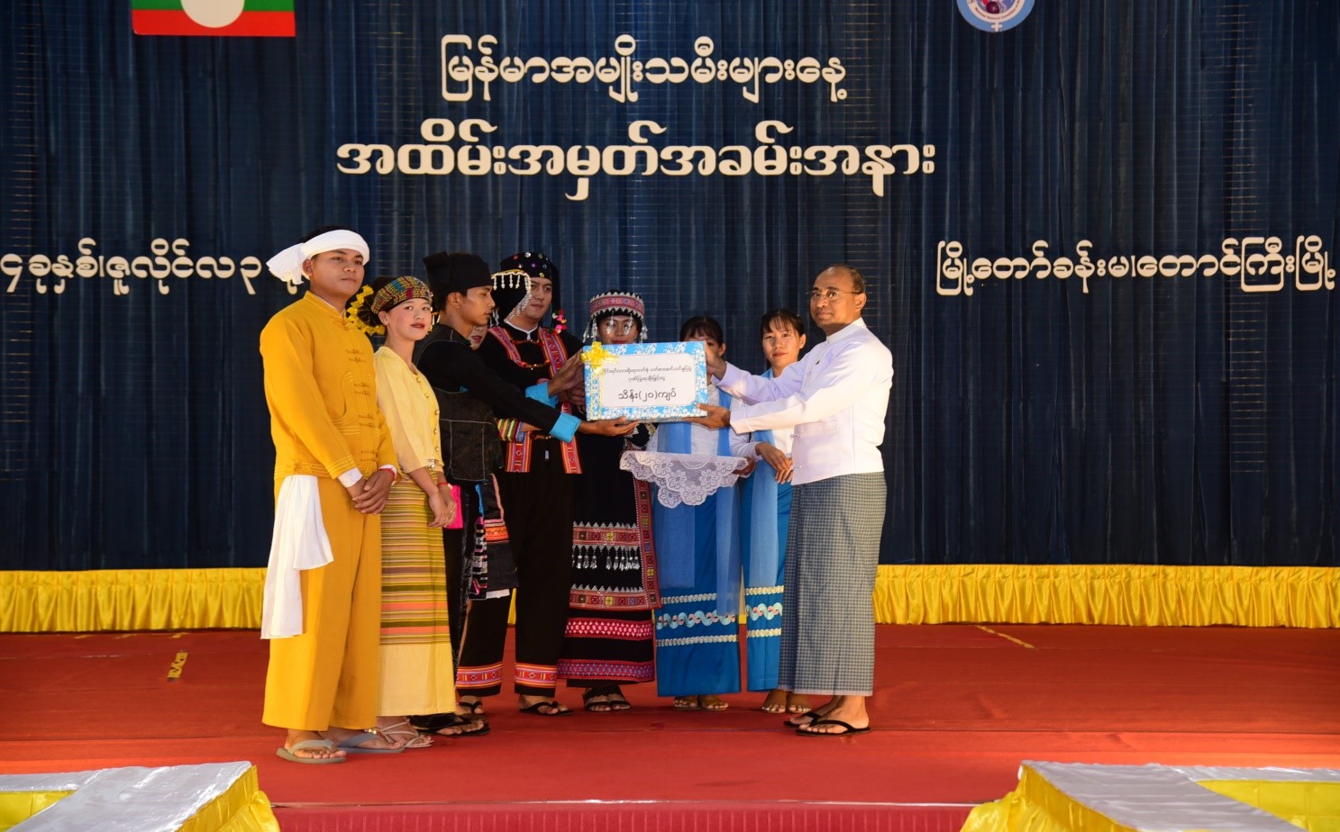 ထို့နောက် ရှမ်းပြည်နယ်အစိုးရအဖွဲ့ ရှမ်းပြည်နယ်ဝန်ကြီးချုပ် ဦးအောင်အောင်က တိုင်းရင်းသားရိုးရာဝတ်စားဆင်ယင်ထုံးဖွဲ့မှုများတွင် ပါဝင်ပြသခဲ့ကြသည့် တိုင်းရင်းသားမောင်မယ် များအား ဂုဏ်ပြုချီးမြင့်ငွေကျပ် ၂,၀၀၀,၀၀ဝိ/-(ကျပ်သိန်းနှစ်ဆယ်တိတိ/-)အားပေးအပ်ခဲ့ပါကြောင်း သတင်းရရှိပါသည်။