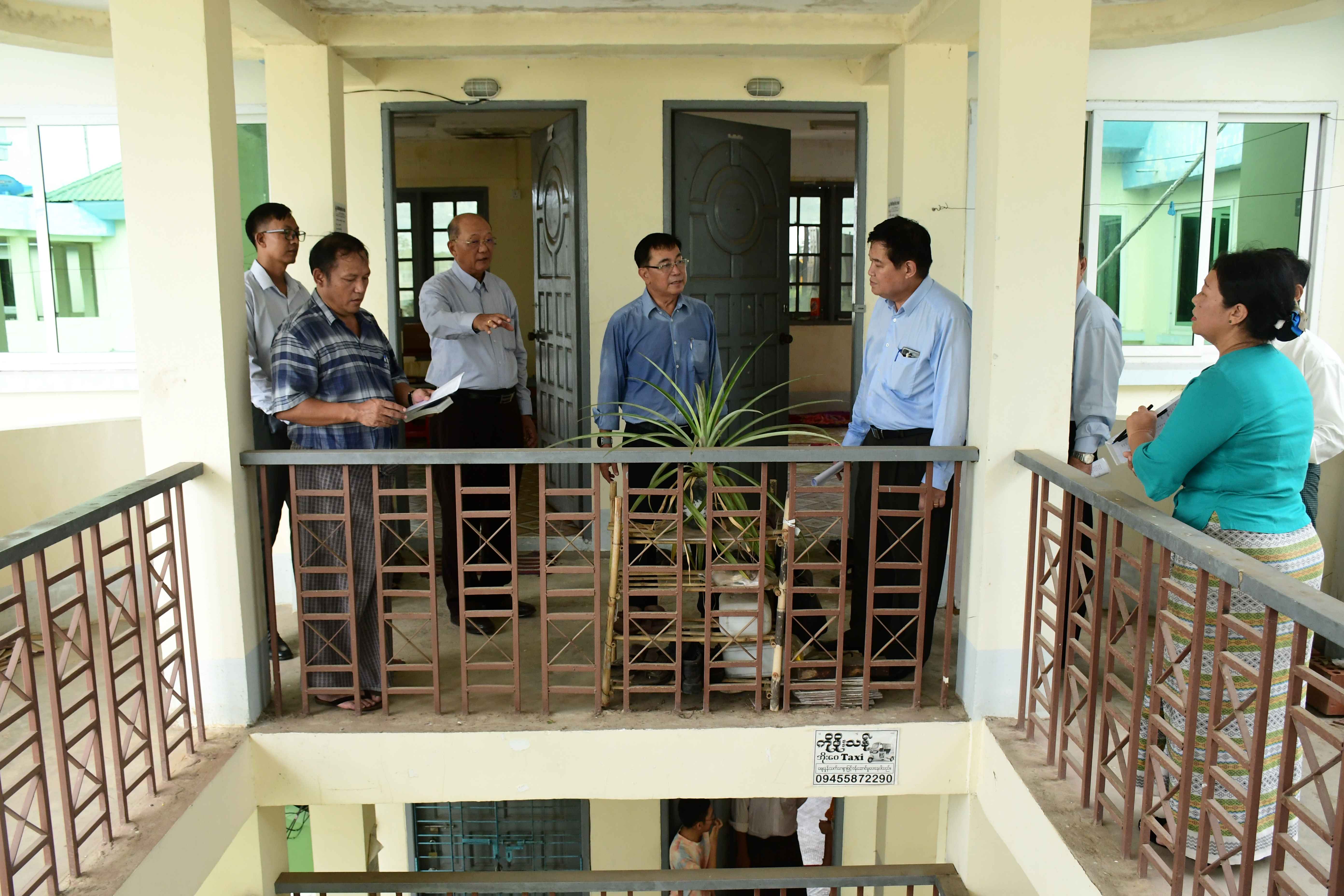 ပြည်ထောင်စုဝန်ကြီး၊ ဒုတိယဝန်ကြီးနှင့်အဖွဲ့သည် ဝန်ထမ်းအိမ်ရာများတွင် ရေ၊ မီး ရရှိမှု အခြေအနေ၊ LED မီးတပ်ဆင်ထားရှိမှုအခြေအနေ၊ အဆောက်အဦ ကြံ့ခိုင်မှုအခြေအနေ များ၊ အိမ်ထောင်စုစာရင်းအတိုင်း နေထိုင်မှု ရှိ မရှိ အခြေအနေနှင့် အိမ်ရာပတ်ဝန်းကျင်ရှိ သီးပင်စားပင်များ စိုက်ပျိုးထားရှိမှုူ အခြေအနေတို့ကို ကြည့်ရှုစစ်ဆေးပါသည်။ ထို့နောက် ပြည်ထောင်စုဝန်ကြီးက အိမ်ရာများတွင် နေထိုင်ကြသော အရာထမ်း၊ အမှုထမ်းများအနေဖြင့် မိမိတို့ တိုက်ပတ်ဝန်းကျင် သန့်ရှင်းရေးကို နေ့စဉ်/ အပါတ်စဉ်အလိုက် ပူးပေါင်းဆောင်ရွက်ရန်၊ ရေနုတ်မြောင်းများအား ရေစီးရေလာကောင်းမွန်စေရေး စုပေါင်းဆောင်ရွက်ကြရန်၊ အမှိုက်များကို စနစ်တကျစွန့်ပစ်ရန်၊ ဝန်ထမ်းအိမ်ရာ စည်းကမ်းများနှင့်အညီ နေထိုင်ကြရန်၊ လျှပ်စစ်မီး လုံခြုံရေးနှင့်ပတ်သက်၍ အရေးပေါ်အခြေအနေတွင် မည်သို့ပြုမှု ဆောင်ရွက်ရန်၊ အိမ်ရာ ပတ်ဝန်းကျင်ရှိ မြေလွတ် မြေလပ်များတွင် သီးပင်စားပင်များ စိုက်ပျိုးထားရှိကြရန်တို့ကို မှာကြားပါသည်။ ထို့နောက် တိုက်ခန်းနေမိသားစုများအား လိုအပ်ချက်များ မေးမြန်းရာ သက်ဆိုင်ရာ တိုက်တာဝန်ခံများက လိုအပ်ချက်များကို တင်ပြခဲ့ကြပြီး ပြည်ထောင်စုဝန်ကြီးက ပေါင်းစပ်ညှိနှိုင်း ဖြည့်ဆည်း ဆောင်ရွက်ပေးခဲ့ပါသည်။ ထို့နောက် ပြည်ထောင်စုဝန်ကြီး၊ ဒုတိယဝန်ကြီးနှင့်အဖွဲ့သည် ဝန်ထမ်းမိသားစုများနှင့် ရင်းရင်းနှီးနှီး တွေ့ဆုံခဲ့ကြောင်း သတင်း ရရှိပါသည်။