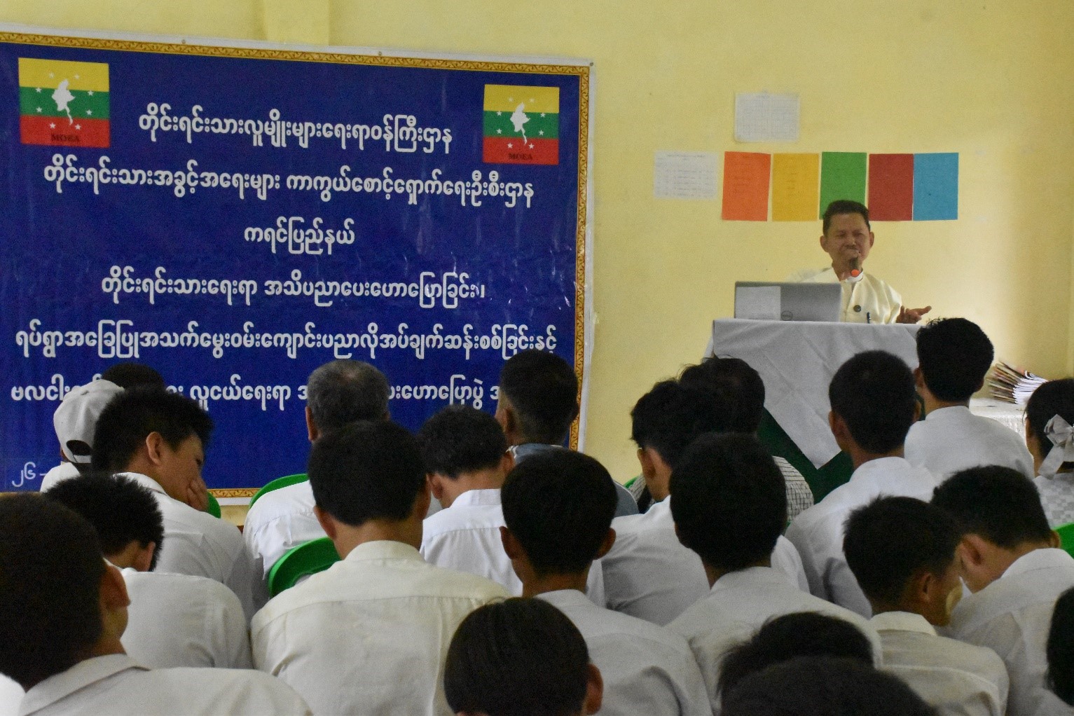 တိုင်းရင်းသားအခွင့်အရေးများကာကွယ်စောင့်ရှောက်ရေးဦးစီးဌာန၊ ကရင်ပြည်နယ် ညွှန်ကြားရေးမှူးရုံးမှ ဦးစီး၍ ကရင်ပြည်နယ်အတွင်း နေထိုင်ကြသော ဒေသခံတိုင်းရင်းသား လူမျိုးများ တိုင်းရင်းသားရေးရာ အသိပညာတိုးပွားစေရန်နှင့် ရပ်ရွာအခြေပြုအသက်မွေးဝမ်းကျောင်း ပညာလိုအပ်ချက်တို့ကို ဖြည့်ဆည်းပေးနိုင်ရန် ရည်ရွယ်၍ “တိုင်းရင်းသားရေးရာ အသိပညာပေးခြင်းနှင့် ရပ်ရွာအခြေပြု အသက်မွေးဝမ်းကျောင်းပညာလိုအပ်ချက်တို့ကို ဆန်းစစ်စီမံခြင်း အစီအစဉ်” ကို ၂၆-၇-၂၀၂၄ ရက်နေ့တွင် ကရင်ပြည်နယ်၊ လှိုင်းဘွဲ့မြို့နယ်၊ ကမော့ကချူးကျေးရွာ၊ အခြေခံပညာအထက်တန်းကျောင်းခွဲ စာသင်ဆောင်ခန်းမ၌ ကျင်းပပြုလုပ်ခဲ့ပါသည်။