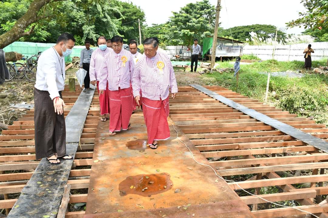 ရွာ (ရန်ကုန်)၌ ဆိပ်ခံဗောတံတား တည်ဆောက်ပြီးစီးမှုအခြေအနေများကို သွားရောက်ကြည့်ရှုစစ်ဆေးရာ ဆိပ်ခံဗောတံတား ကို တာဝန်ယူတည်ဆောက်နေသည့် Regal Strength Co.,Ltd မန်နေဂျင်းဒါရိုက်တာက တည်ဆောက်ပြီးစီးမှုအခြေအနေများကို ရှင်းလင်းတင်ပြခဲ့ပါသည်။ ရှင်းလင်းတင်ပြမှုများ အပေါ် ပြည်ထောင်စုဝန်ကြီးနှင့် ဒုတိယဝန်ကြီးတို့က သတ်မှတ်ကာလအတွင်း အချိန်မီ ပြီးစီး အောင်တည်ဆောက်သွားရန်၊ ရေထဲတွင် ဆောင်ရွက်ရသည့်လုပ်ငန်းဖြစ်သည့်အညီ စံချိန်စံညွှန်းများနှင့်အညီတည်ဆောက်ပြီး ကြံ့ခိုင်မှုရှိစေရန်နှင့် လိုအပ်သည်များကို လမ်းညွှန်မှာကြားခဲ့ပါသည်။