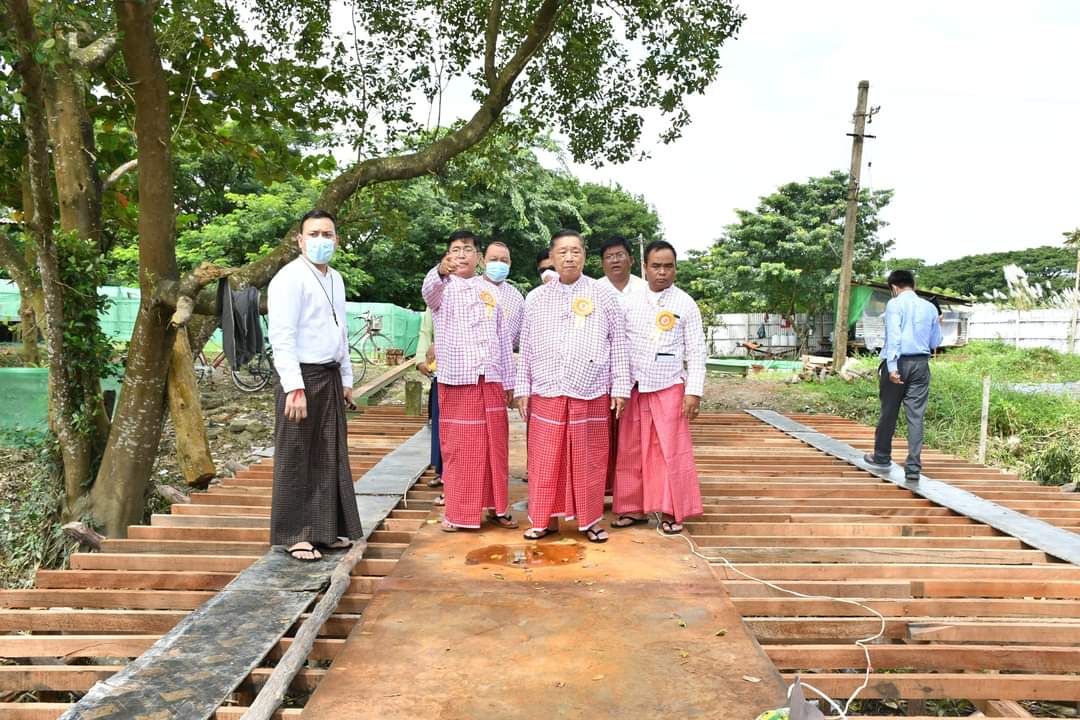 ပြည်ထောင်စုဝန်ကြီး ဦးစောထွန်းအောင်မြင့် ပြည်ထောင်စုတိုင်းရင်းသားကျေးရွာ (ရန်ကုန်) ဆိပ်ခံဗောတံတားတည်ဆောက်ပြီးစီးမှုအခြေအနေများကို ကြည့်ရှုစစ်ဆေး
