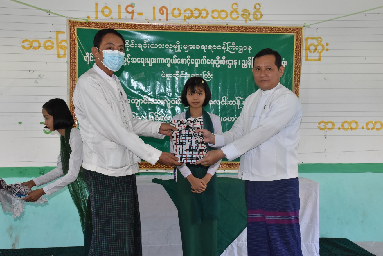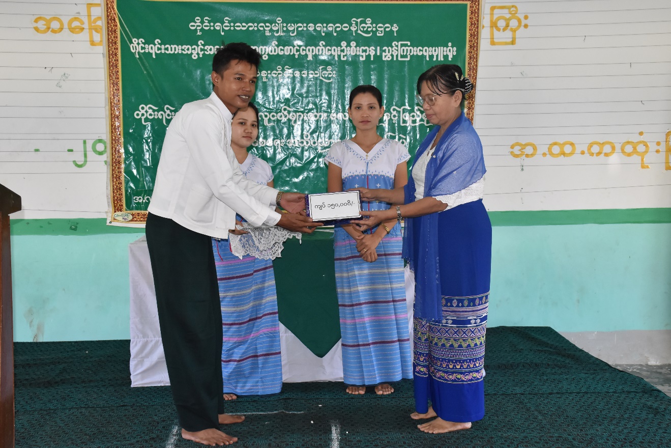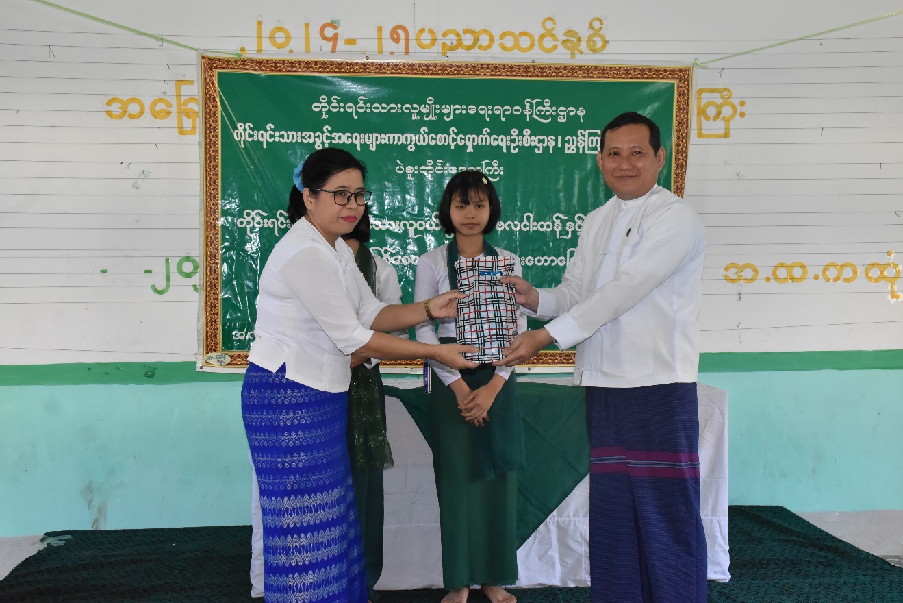 ဆက်လက်၍ တိုင်းရင်းသားရေးရာဝန်ကြီး ဦးစောလင်းအောင်က ဟောပြောပို့ချပေးသော ဌာနဆိုင်ရာမှ တာဝန်ရှိသူများအား အမှတ်တရလက်ဆောင်များ ပေးအပ်ခဲ့ပြီးနောက် တိုင်းရင်းသား အခွင့်အရေးများကာကွယ်စောင့်ရှောက်ရေးဦးစီးဌာန၊ ပဲခူးတိုင်းဒေသကြီး ညွှန်ကြားရေးမှူးရုံးမှ ညွှန်ကြားရေးမှူး ဒေါ်ခိုင်ရွှေဝါက ကျောင်းစာကြည့်တိုက်အတွက် အလှူငွေ ကျပ်တစ်သိန်း ငါးသောင်း တိတိအား အခြေခံပညာအလယ်တန်းကျောင်း(ခွဲ) (ထုံးကြီး) မှ ကျောင်းအုပ်ဆရာကြီးထံ ပေးအပ် လှူဒါန်းခဲ့ကြောင်း သိရှိရပါသည်။