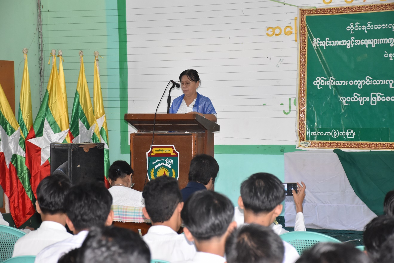 အခမ်းအနားတွင် ပဲခူးတိုင်းဒေသကြီးအစိုးရအဖွဲ့ တိုင်းရင်းသားရေးရာဝန်ကြီး ဦးစောလင်း အောင်က အဖွင့်အမှာစကား ပြောကြားခဲ့ပြီး တိုင်းရင်းသားအခွင့်အရေးများကာကွယ်စောင့်ရှောက်ရေးဦးစီးဌာန၊ ပဲခူးတိုင်းဒေသကြီး ညွှန်ကြားရေးမှူးရုံးမှ ညွှန်ကြားရေးမှူး ဒေါ်ခိုင်ရွှေဝါက တိုင်းရင်းသားလူမျိုးများရေးရာဝန်ကြီးဌာနအကြောင်း မိတ်ဆက်ပြောကြားခြင်း၊ တိုင်းရင်းသားလူမျိုးများ၏ အခွင့်အရေးကာကွယ်စောင့်ရှောက်သည့် ဥပဒေ၊ နည်းဥပဒေတို့နှင့် လူငယ်ရေးရာကဏ္ဍတို့ကို ရှင်းလင်းပြောကြားခဲ့ပါသည်။ ထို့နောက် ပဲခူးတိုင်းဒေသကြီး ပညာရေးမှူးရုံးမှ ဒုတိယတိုင်းပညာရေးမှူး ဦးခင်အောင်ရီက ဗလငါးတန်နှင့်ပြည့်စုံသော ကျောင်းသားလူငယ်များဖြစ်စေရေး ခေါင်းစဉ်ဖြင့်လည်းကောင်း၊ လူမှုဝန်ထမ်းဦးစီးဌာနမှ ဒုတိယညွှန်ကြားရေးမှူး ဒေါ်ဝါဝါဝင့်ကျော်က ကလေးသူငယ်အခွင့်အရေးများနှင့် ကာကွယ်စောင့်ရှောက်ရေးခေါင်းစဉ်ဖြင့်လည်းကောင်း၊ အစား အသောက်နှင့်ဆေးဝါးကွပ်ကဲရေးဦးစီးဌာနမှ တိုင်းဒေသကြီးဦးစီးမှူး ဒေါ်မေသန်းနိုင်က အစားအသောက်နှင့်ဆေးဝါး အရည်အသွေးပြည့်မီ၊ ဘေးအန္တရာယ်ကင်းရှင်းစွာသုံးစွဲရေး ခေါင်းစဉ်ဖြင့် လည်းကောင်း၊ အားကစားနှင့်ကာယပညာဦးစီးဌာနမှ ခရိုင်အားကစားမှူး ဒေါ်သန္တာဝင်းက လူငယ်နှင့်အားကစား ခေါင်းစဉ်ဖြင့် လည်းကောင်း၊ တိုင်းရင်းသားစာပေနှင့်ယဉ်ကျေးမှုဦးစီးဌာနမှ ဦးစီးအရာရှိ ဒေါ်သော်ထက်ထက်ကျော်က တိုင်းရင်းသားဘာသာစာပေသင်ကြားသည့် ကိစ္စနှင့်ပတ်သက်၍လည်းကောင်း အသိပညာပေး ဟောပြောခဲ့ပါသည်။