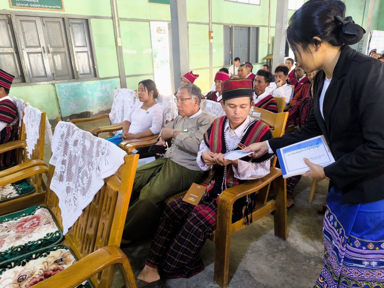 ထို့နောက် ညွှန်ကြားရေးမှူးဦးဆောင်၍ ရပ်ရွာအခြေပြုအသက်မွေးဝမ်းကျောင်းပညာ လိုအပ်ချက် စစ်တမ်းများကို ကောက်ယူခဲ့ရာ ဒေသခံတိုင်းရင်းသား(၈၄)ဦးတို့မှ ဖြေဆိုခဲ့ကြပြီး တိုင်းရင်းသားအခွင့်အရေးများကာကွယ်စောင့်ရှောက်ရေးဦးစီးဌာနမှ တက်ရောက်လာသူများအား တိုင်းရင်းသားလူမျိုးများ၏အခွင့်အရေးကာကွယ်စောင့်ရှောက်သည့် ဥပဒေ၊ နည်းဥပဒေများ စာအုပ်များ၊ လက်ကမ်းစာစောင်များ၊ ကလေးအလုပ်သမားနှင့်သက်ဆိုင်သည့် ဥပဒေပြဋ္ဌာန်းချက် ကောက်နုတ်ချက်စာအုပ်များနှင့် အမှတ်တရလက်ဆောင်ပစ္စည်းများ ပေးအပ်ခဲ့ပြီးနောက် အခမ်းအနားကို ရုပ်သိမ်းခဲ့ပါသည်။ အခမ်းအနားသို့ တိုင်းဒေသကြီးအရှိုချင်းစာပေနှင့် ယဉ်ကျေးမှု အသင်းဥက္ကဋ္ဌနှင့် အဖွဲ့ဝင်များလည်း တက်ရောက်ခဲ့ကြကြောင်း သိရှိရပါသည်။