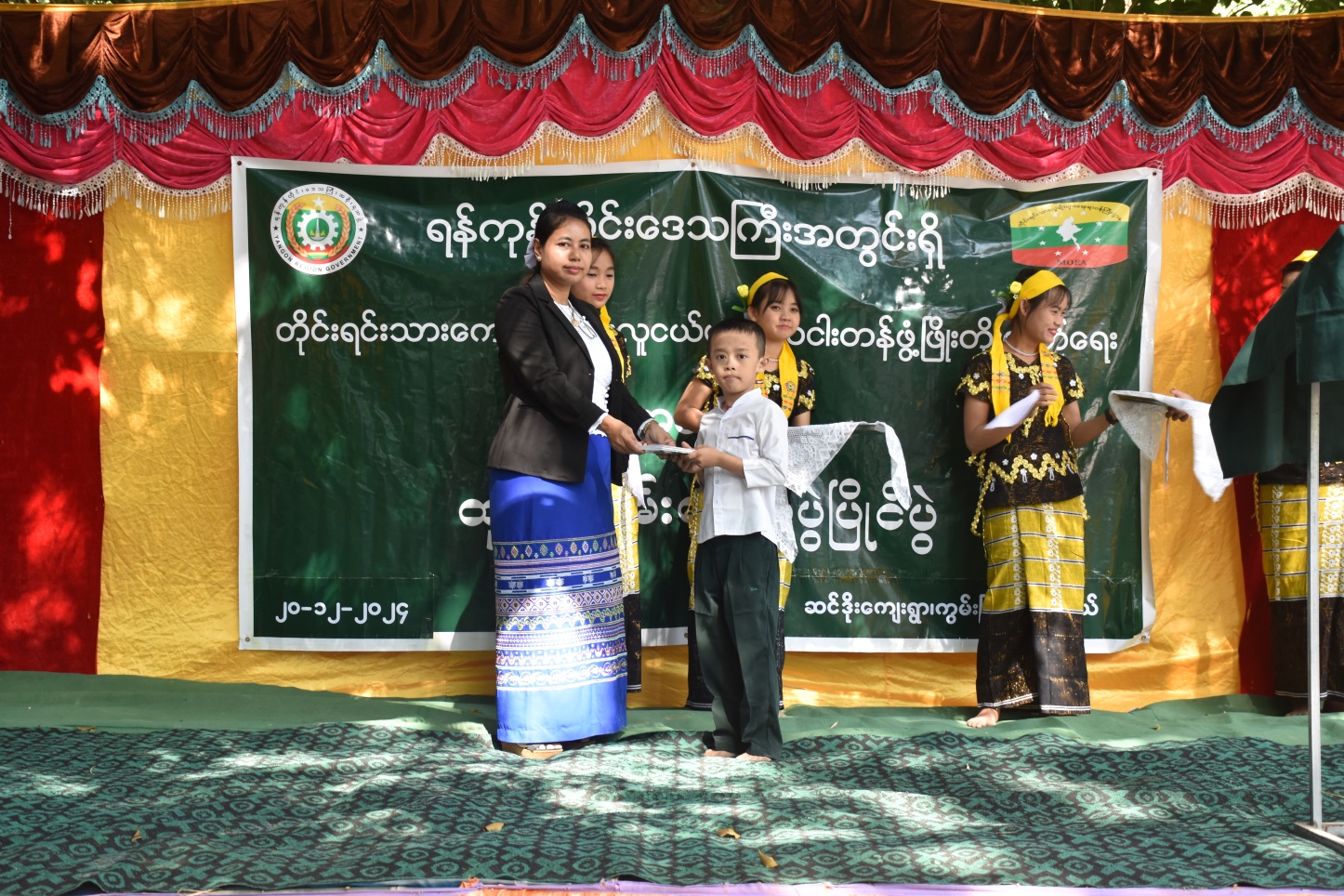 ရန်ကုန်တိုင်းဒေသကြီးအစိုးရအဖွဲ့ ဦးဆောင်မှုဖြင့် တိုင်းရင်းသားအခွင့်အရေးများ ကာကွယ်စောင့်ရှောက်ရေးဦးစီးဌာနမှ ကြီးမှူး၍ ရန်ကုန်တိုင်းဒေသကြီးအတွင်းရှိ တိုင်းရင်းသားကျောင်းသားလူငယ်များ ဗလငါးတန်ဖွံ့ဖြိုးတိုးတက်ရေးအတွက် ထူးချွန် စွမ်းရည် ပြပွဲ၊ ပြိုင်ပွဲ အခမ်းအနားကို (၂၀-၁၂-၂၀၂၄) ရက်နေ့၊ နံနက် (၇:၀၀) နာရီအချိန်တွင် ရန်ကုန်တိုင်းဒေသကြီး၊ ကွမ်းခြံကုန်းမြို့နယ်၊ ဆင်ဒိုးကျေးရွာ၊ မူလတန်းကျောင်း၌ ကျင်းပပြုလုပ်ခဲ့ပါသည်။