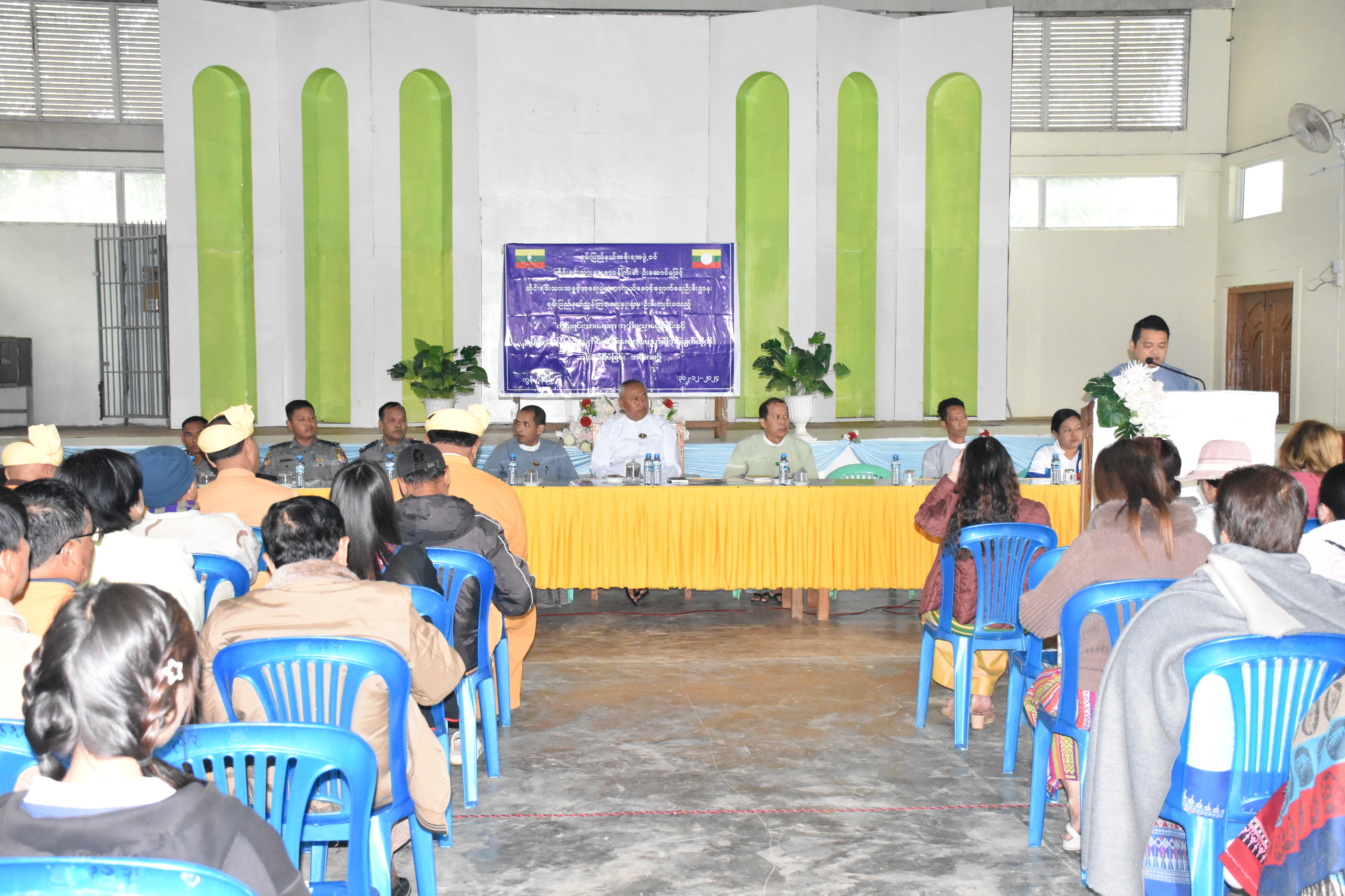 ရှမ်းပြည်နယ်အစိုးရအဖွဲ့ဝင်တိုင်းရင်းသားရေးရာဝန်ကြီး၏ လမ်းညွှန်မှုဖြင့် တိုင်းရင်းသားအခွင့်အရေးများကာကွယ်စောင့်ရှောက်ရေးဦးစီးဌာန၊ ရှမ်းပြည်နယ်ညွှန်ကြားရေးမှူးရုံးမှဦးစီး၍ ရှမ်းပြည်နယ်အစိုးရအဖွဲ့၏ ခွင့်ပြုဘဏ္ဍာရန်ပုံငွေဖြင့် တိုင်းရင်းသားရေးရာအသိပညာပေးဟောပြောခြင်းနှင့် ရပ်ရွာအခြေပြုအသက်မွေးဝမ်းကျောင်းပညာလိုအပ်ချက်တို့ကိုဆန်းစစ်စီမံခြင်း အစီအစဉ်ကို ၃၀-၁၂-၂၀၂၄ ရက်နေ့တွင် ရှမ်းပြည်နယ်(တောင်ပိုင်း)၊ နမ့်စန်ခရိုင်၊ ကွန်ဟိန်းမြို့နယ်၊ ကွန်ဟိန်းမြို့၊ နမ့်ခုံးပရဟိတခန်းမ၌ ကျင်းပပြုလုပ်ခဲ့ပါသည်။