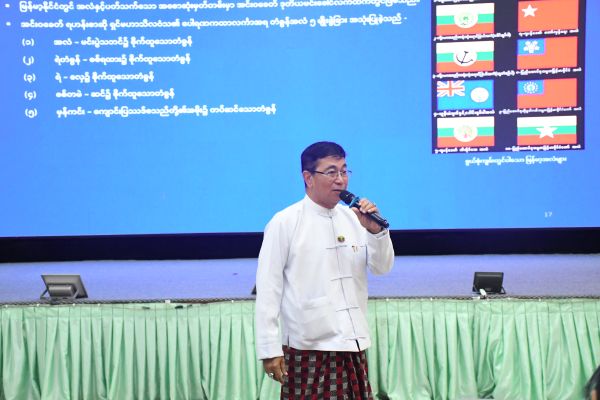 ရှေးဦးစွာ ဒုတိယဝန်ကြီး ဦးဇော်အေးမောင်က မြန်မာနိုင်ငံတော်အလံအကြောင်း သိကောင်းစရာများကို Power Point ဖြင့် ရှင်းလင်းပြောကြားရာတွင် နိုင်ငံတော်အလံ၏ အတိုင်းအတာများ၊ အဓိပ္ပာယ်များကိုလည်းကောင်း၊ ခေတ်အဆက်ဆက် မြန်မာနိုင်ငံတော် အလံဥပဒေ၊ နည်းဥပဒေများနှင့် ဥပဒေ၊ နည်းဥပဒေပါ လိုက်နာရန်အချက်များ၊ တားမြစ်ချက်နှင့်ပြစ်ဒဏ်များကိုလည်းကောင်း၊ ခေတ်အဆက်ဆက် မြန်မာနိုင်ငံတော်အလံ သမိုင်းကြောင်းများကိုလည်းကောင်း၊ နိုင်ငံတော်အလံအလေးပြုရာတွင် လိုက်နာရမည့် စည်းကမ်းချက်များကို အကျယ်တဝင့် ရှင်းလင်းဟောပြောခဲ့ကြောင်း သတင်းရရှိပါသည်။