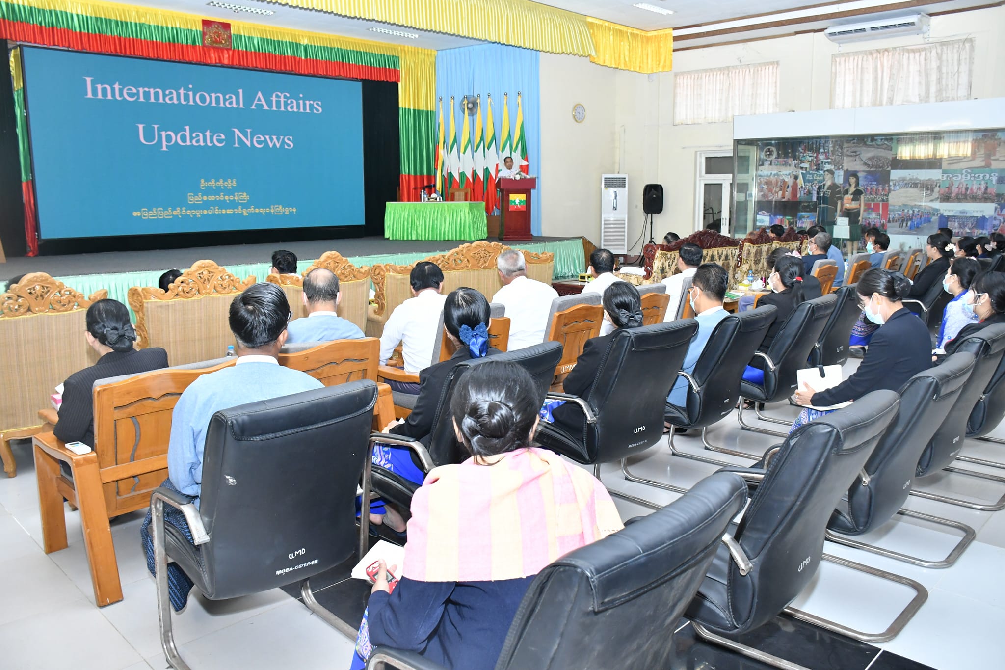ထို့နောက် အပြည်ပြည်ဆိုင်ရာပူးပေါင်းဆောင်ရွက်ရေးဝန်ကြီးဌာန ပြည်ထောင်စုဝန်ကြီး ဦးကိုကိုလှိုင်က International Affairs Update News ခေါင်းစဉ်ဖြင့် မျက်မှောက် ကမ္ဘာ့နိုင်ငံရေး အခြေအနေများကိုလည်းကောင်း၊ ပြည့်အင်အားသည် ပြည်တွင်းမှာသာရှိသည်ဟူသော စကား နှင့်အညီ တိုင်းရင်းသားစည်းလုံးညီညွတ်မှု ပိုမိုအားကောင်းလာစေရန် ဆောင်ရွက်သင့်သည့် အချက်များကိုလည်းကောင်း ဟောပြောဆွေးနွေးခဲ့ပါသည်။