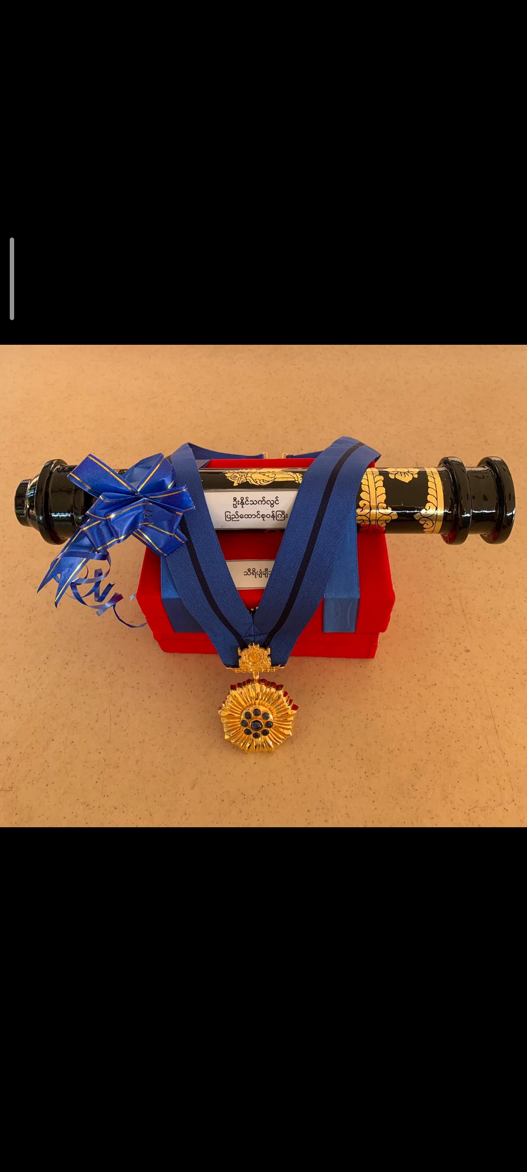 (၇၅)နှစ်မြောက် စိန်ရတုလွတ်လပ်ရေးနေ့အထိမ်းအမှတ် ဂုဏ်ထူးဆောင်ဘွဲ့များ ချီးမြှင့် အပ်နှင်းခြင်းအခမ်းအနားကို ၂၀၂၃ ခုနှစ် ဇန်နဝါရီလ ၂ ရက်နေ့တွင် နေပြည်တော်၌ ကျင်းပရာ နိုင်ငံတော်စီမံအုပ်ချုပ်ရေးကောင်စီဥက္ကဋ္ဌ နိုင်ငံတော်ဝန်ကြီးချုပ် ဗိုလ်ချုပ်မှူးကြီး သတိုးမဟာ သရေစည်သူ၊ သတိုးသီရိသုဓမ္မ မင်းအောင်လှိုင်နှင့် ဇနီး ဒေါ်ကြူကြူလှတို့ တက်ရောက် ချီးမြှင့်ပြီး တိုင်းရင်းသားလူမျိုးများရေးရာဝန်ကြီးဌာန ပြည်ထောင်စုဝန်ကြီး ဦးစောထွန်းအောင်မြင့်က သီရိပျံချီဘွဲ့ကိုလည်းကောင်း၊ ဒုတိယဝန်ကြီး ဦးဇော်အေးမောင်က ဝဏ္ဏကျော်ထင်ဘွဲ့ကိုလည်းကောင်း လက်ခံရယူခဲ့ကြပါသည်။