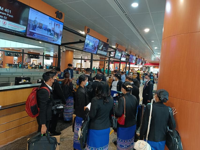 တိုင်းရင်းသားလူမျိုးများရေးရာဝန်ကြီးဌာန၊ ပြည်ထောင်စုဝန်ကြီး ဦးစောထွန်းအောင်မြင့် ဦးဆောင်သောကိုယ်စားလှယ်အဖွဲ့ ထိုင်းနိုင်ငံသို့ သွားရောက်ရန် ရန်ကုန်မှထွက်ခွါ ရန်ကုန် ဇန်နဝါရီလ (၁၈)