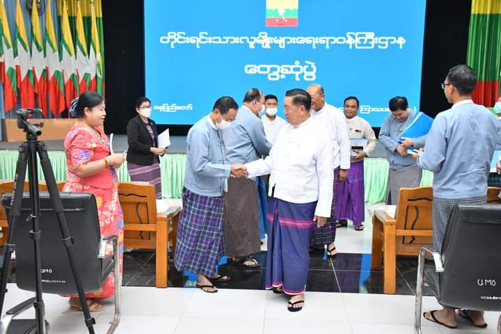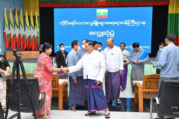 နိုင်ငံတော်စီမံအုပ်ချုပ်ရေးကောင်စီဗဟိုအကြံပေးအဖွဲ့ အဖွဲ့ခေါင်းဆောင် ဦးစောထွန်းအောင်မြင့်၊ တိုင်းရင်းသားလူမျိုးများရေးရာဝန်ကြီးဌာန ပြည်ထောင်စုဝန်ကြီး Jeng Phang နော်တောင်နှင့် ဝန်ထမ်းများ နှုတ်ဆက်တွေ့ဆုံခြင်း အခမ်းအနားကို ယနေ့မွန်းလွဲပိုင်းတွင် တိုင်းရင်းသားလူမျိုးများရေးရာဝန်ကြီးဌာန၊ အစည်းအဝေးခန်းမ၌ကျင်းပရာ နိုင်ငံတော်စီမံအုပ်ချုပ်ရေးကောင်စီ ဗဟိုအကြံပေးအဖွဲ့ အဖွဲ့ခေါင်းဆောင် ဦးစောထွန်းအောင်မြင့်၊ တိုင်းရင်းသားလူမျိုးများရေးရာဝန်ကြီးဌာန ပြည်ထောင်စုဝန်ကြီး Jeng Phang နော်တောင်၊ ဒုတိယဝန်ကြီး ဦးဇော်အေးမောင်၊ အမြဲတမ်းအတွင်းဝန်၊ ညွှန်ကြားရေးမှူးချုပ်များ၊ ဒုတိယအမြဲတမ်းအတွင်းဝန်၊ ဒုတိယညွှန်ကြားရေးမှူးချုပ်များနှင့် အရာထမ်း၊ အမှုထမ်းများ တက်ရောက်ခဲ့ကြပါသည်။