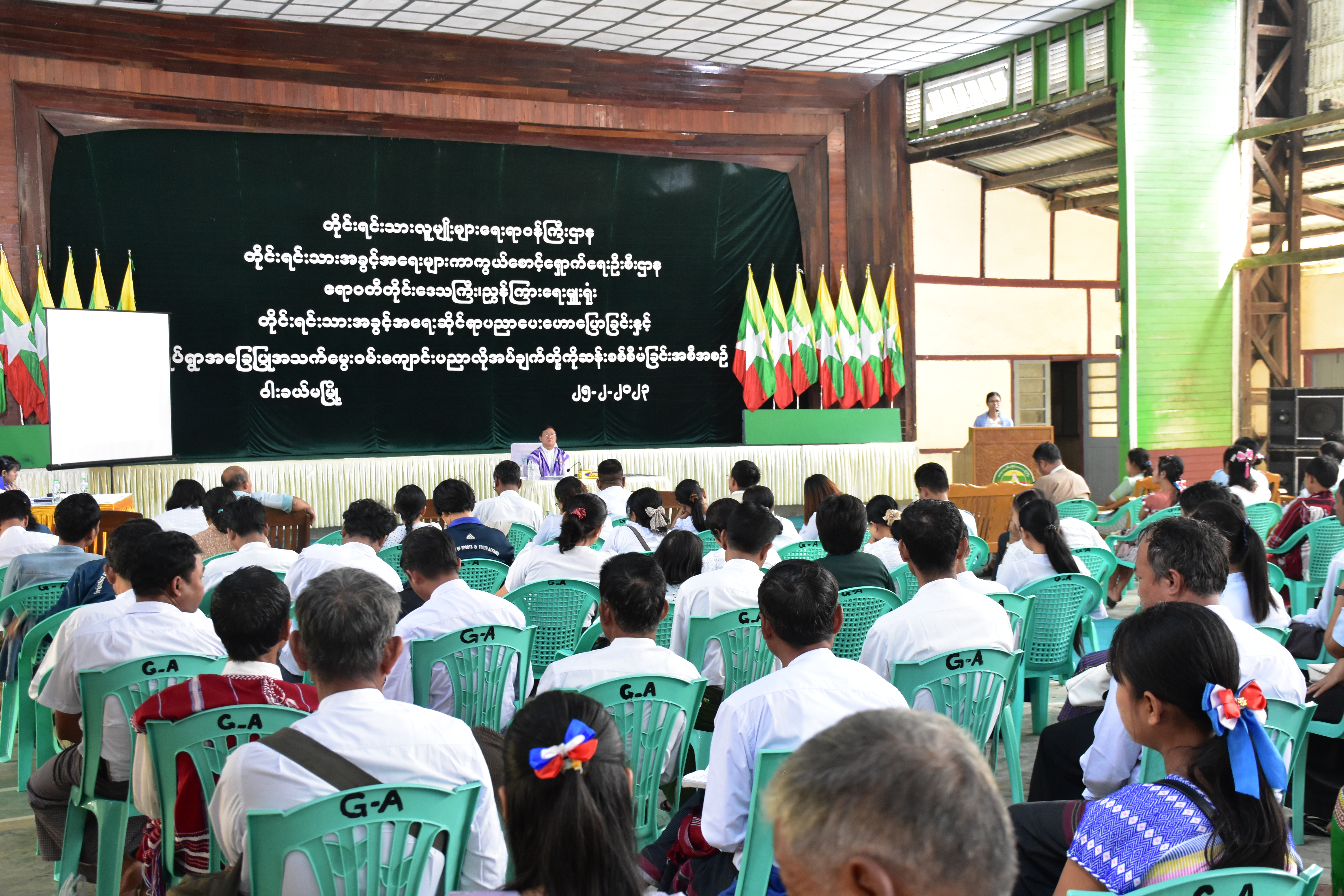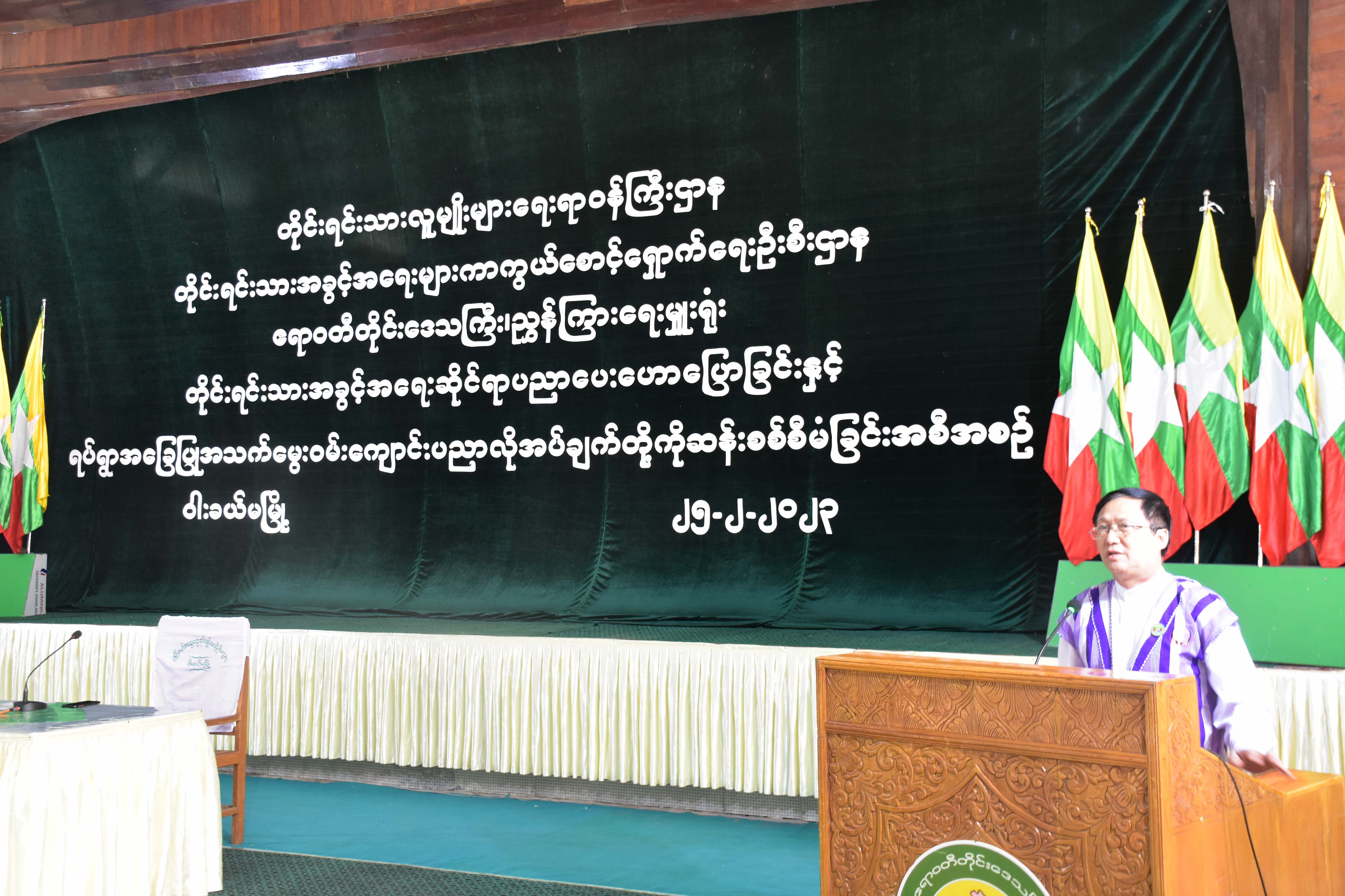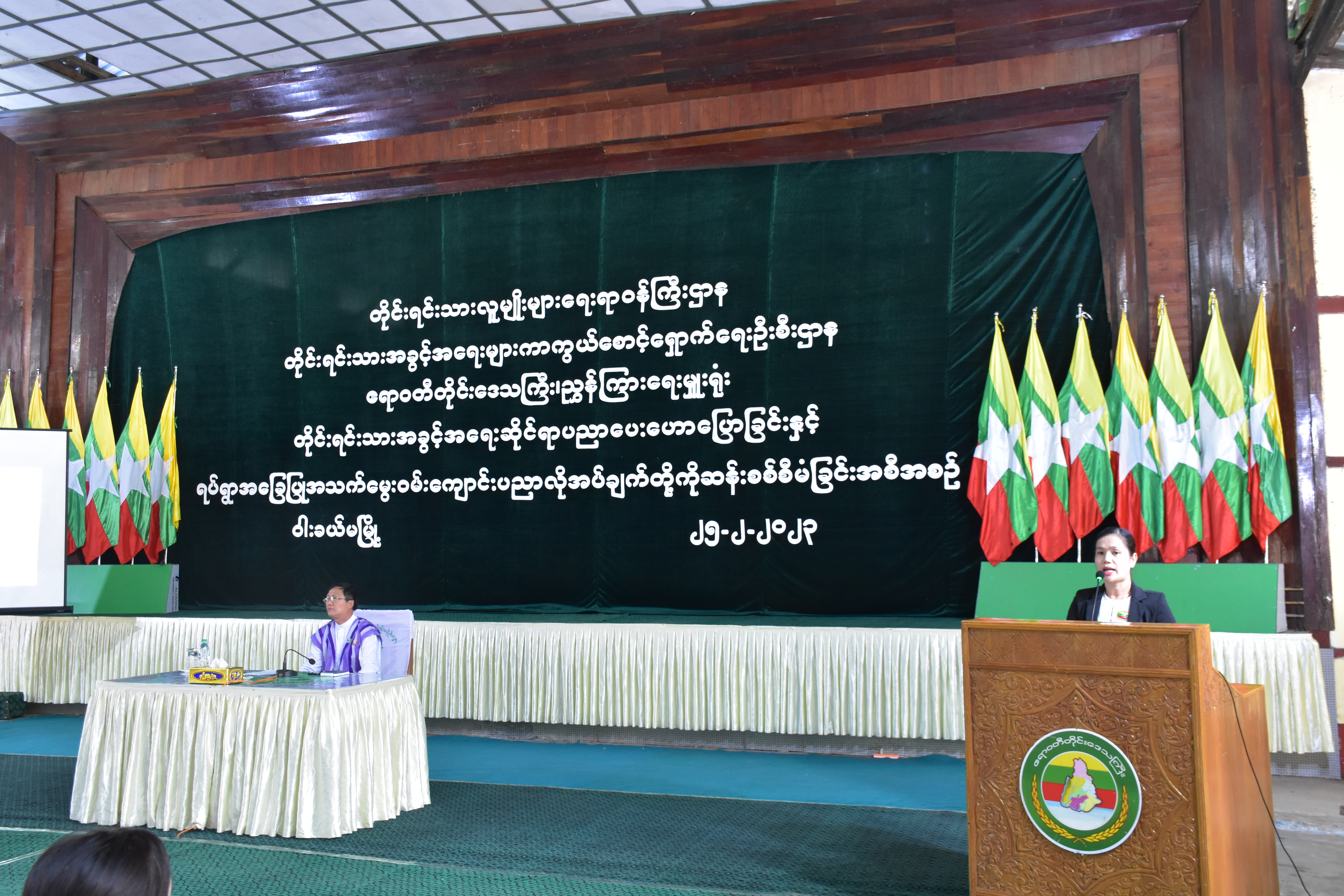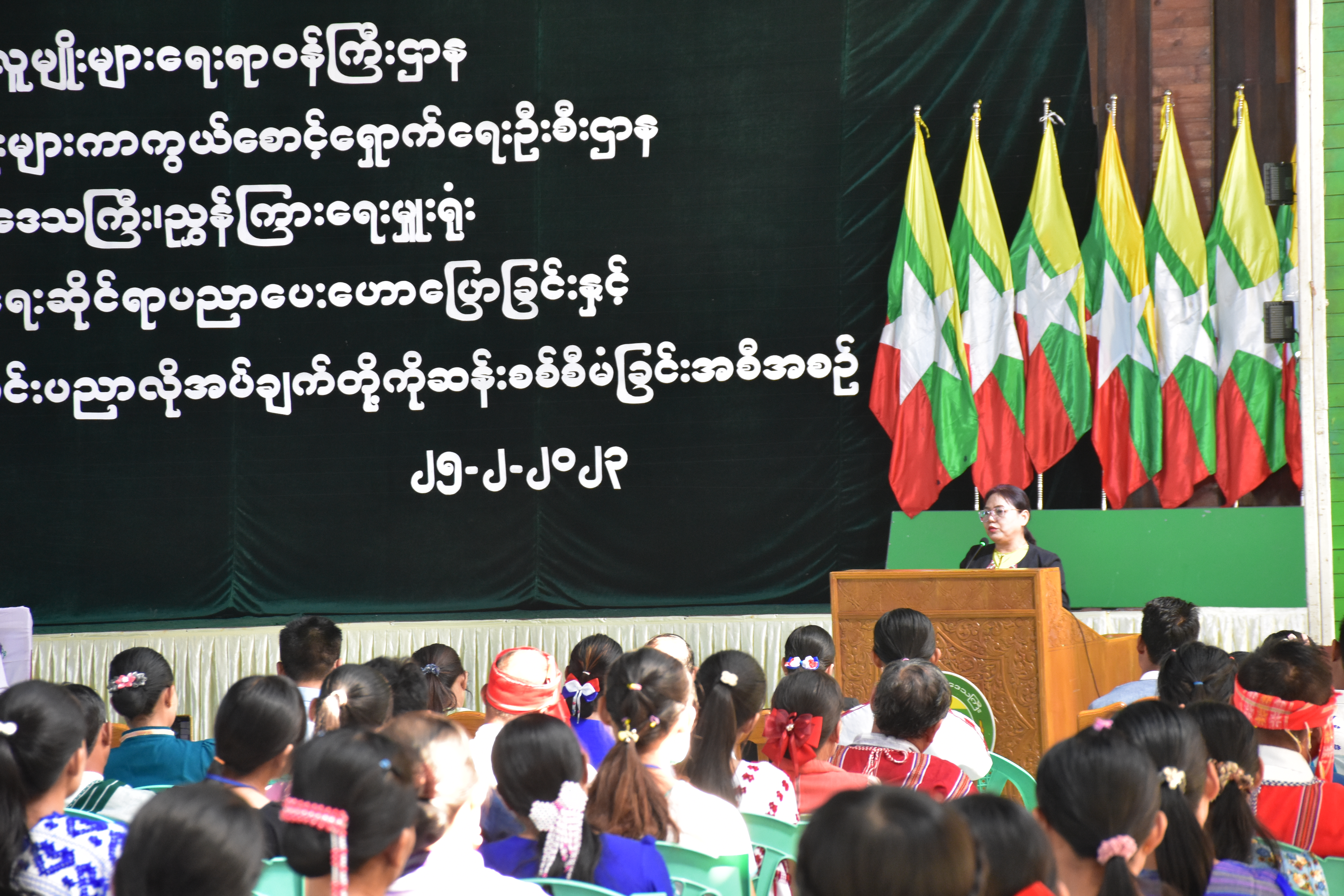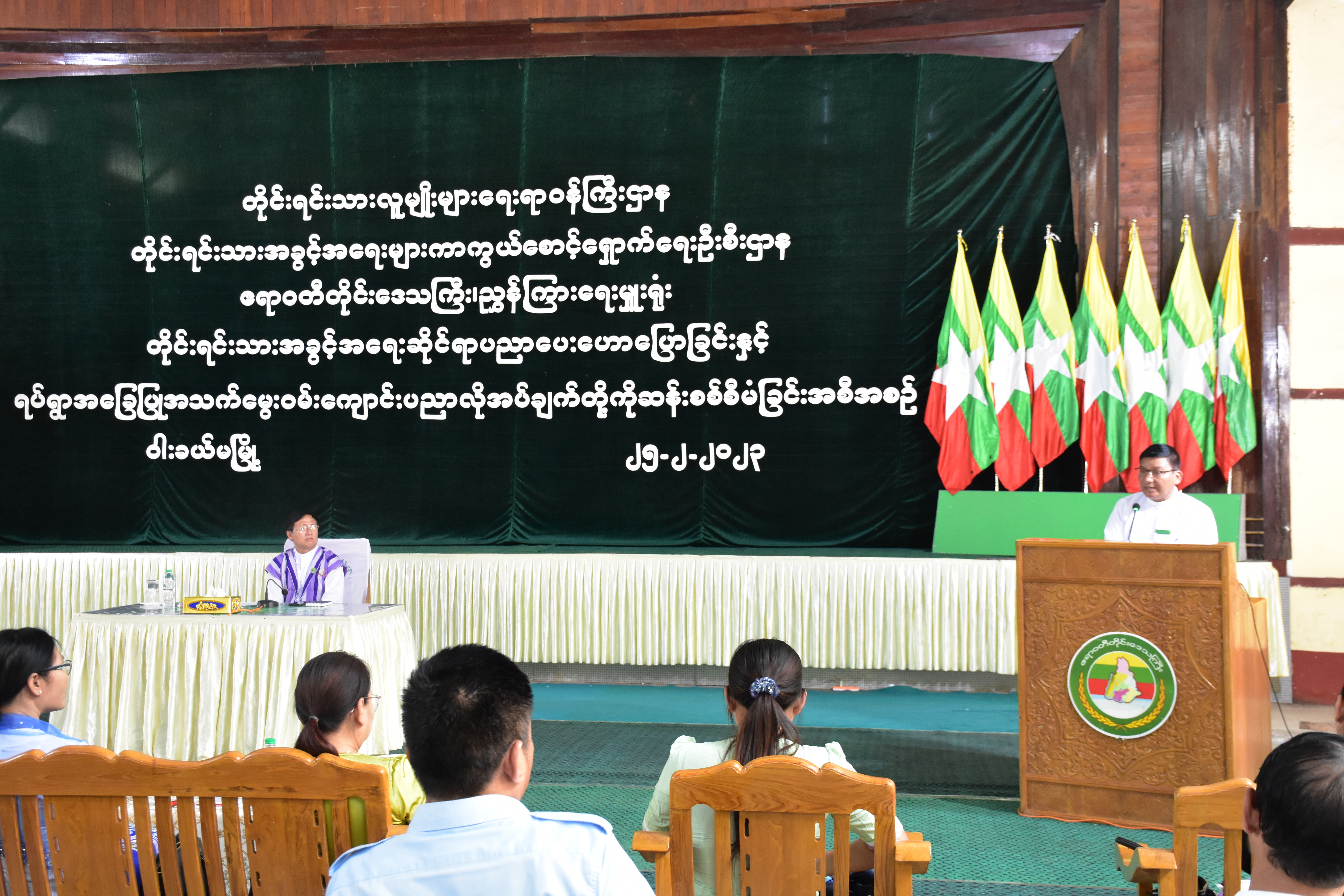 တိုင်းရင်းသားလူမျိုးများရေးရာဝန်ကြီးဌာန၊ တိုင်းရင်းသားအခွင့်အရေးများကာကွယ်စောင့်ရှောက်ရေးဦးစီး ဌာန၊ ဧရာဝတီတိုင်းဒေသကြီးညွှန်ကြားရေးမှူးရုံးမှ ဦးစီး၍ “တိုင်းရင်းသားအခွင့်အရေးဆိုင်ရာ ပညာပေးဟောပြောခြင်းနှင့် ရပ်ရွာအခြေပြုအသက်မွေးဝမ်းကျောင်းပညာ လိုအပ်ချက်တို့ကို ဆန်းစစ်စီမံခြင်း” အခမ်းအနားကို (၂၅-၂-၂၀၂၃)ရက်နေ့နံနက်ပိုင်းတွင် ဝါးခယ်မမြို့၊ ရွှေခယ်သီရိ အားကစားခန်းမတွင် ကျင်းပပြုလုပ်ခဲ့ရာ အခမ်း အနားသို့ ဧရာဝတီတိုင်းဒေသကြီး အစိုးရအဖွဲ့ဝင် တိုင်းရင်းသားရေးရာဝန်ကြီး ဦးစောလင်းခယ်၊ တိုင်း၊ ခရိုင်၊ မြို့နယ်အဆင့် ဌာနဆိုင်ရာဝန်ထမ်းများ၊ မြို့နယ်စာပေနှင့်ယဉ်ကျေးမှု ကော်မတီဥက္ကဋ္ဌနှင့် အဖွဲ့ဝင်များ၊ ဒေသခံတိုင်းရင်းသားများ စုစုပေါင်း(၂၀၇)ဦး တက်ရောက်ခဲ့ပါသည်။