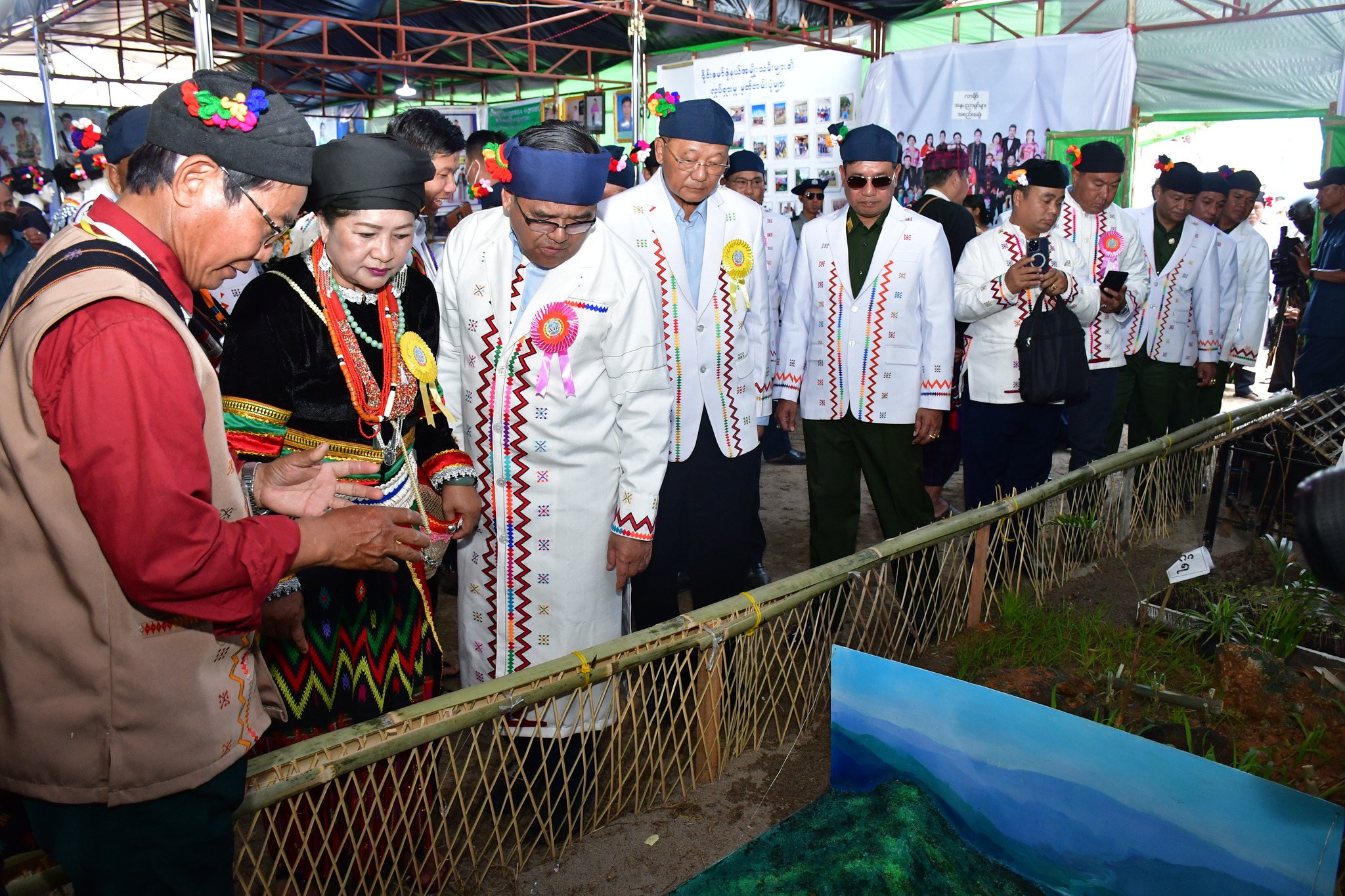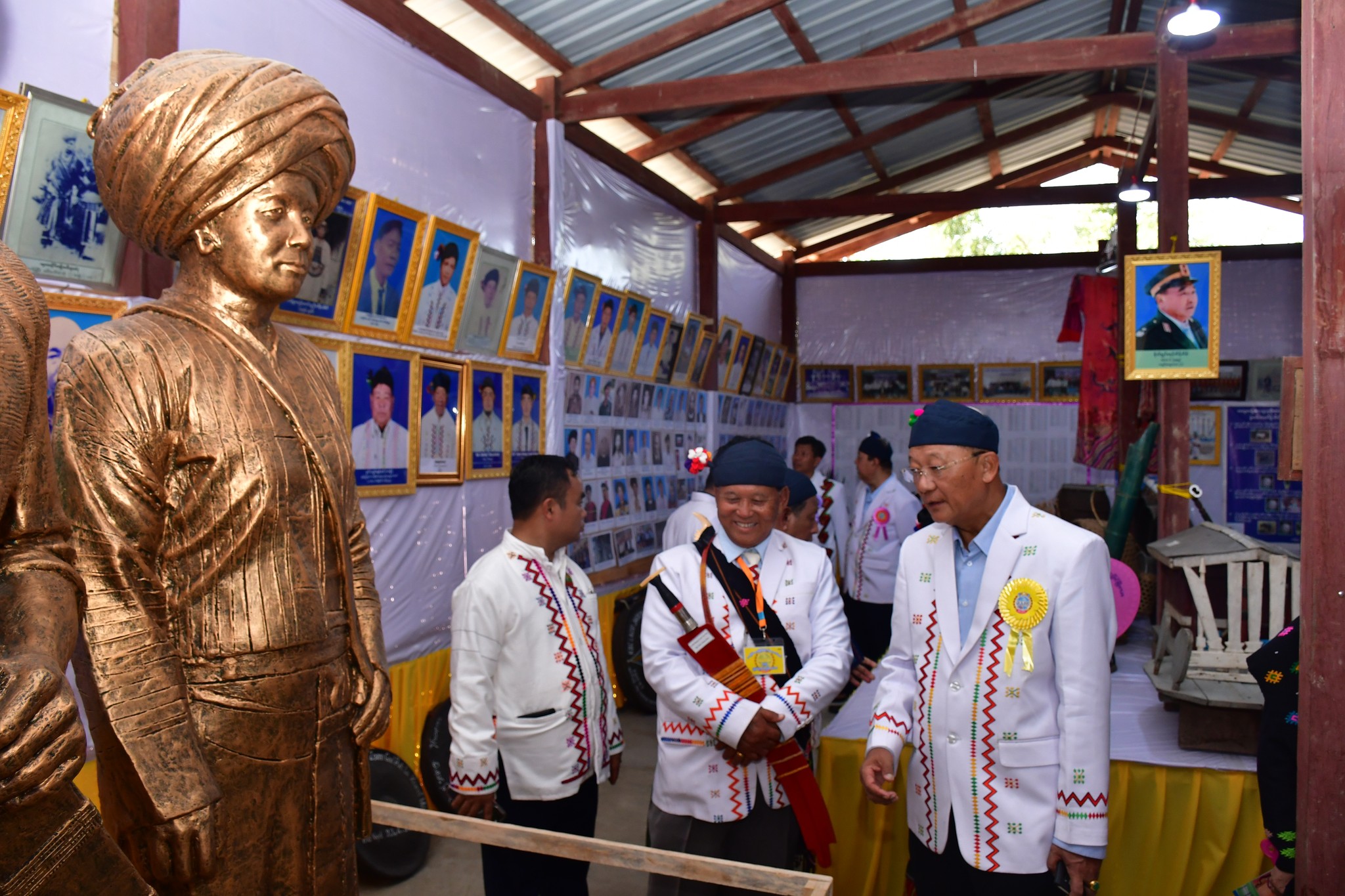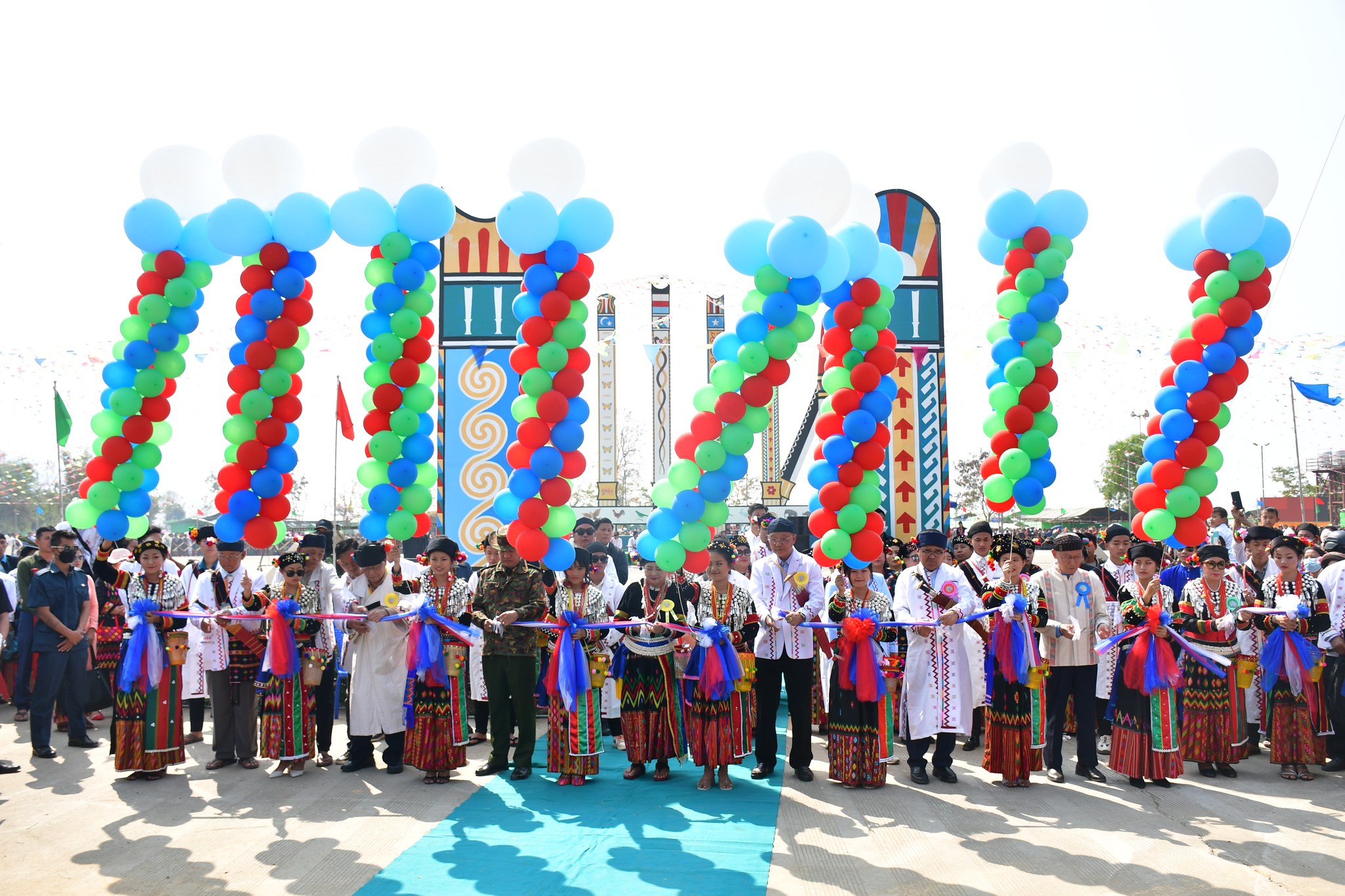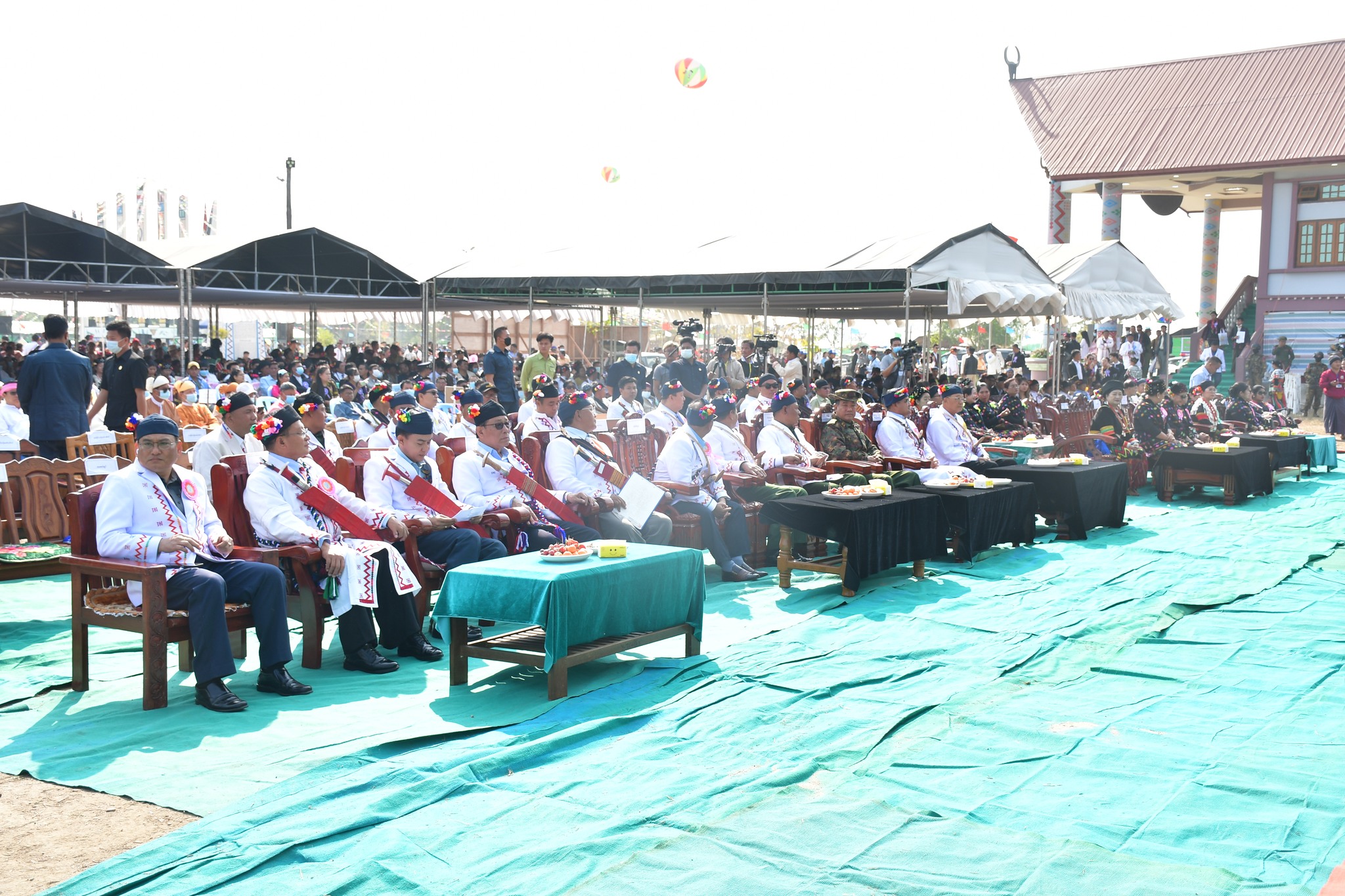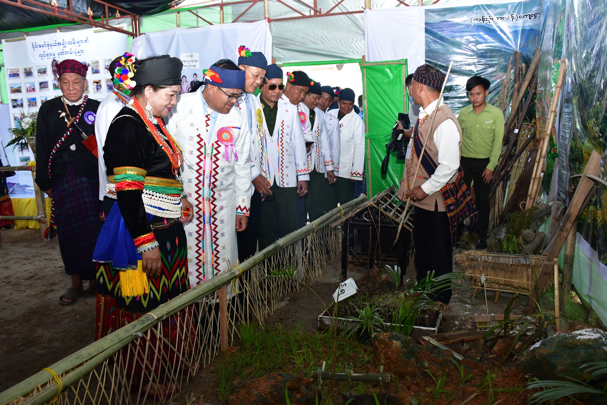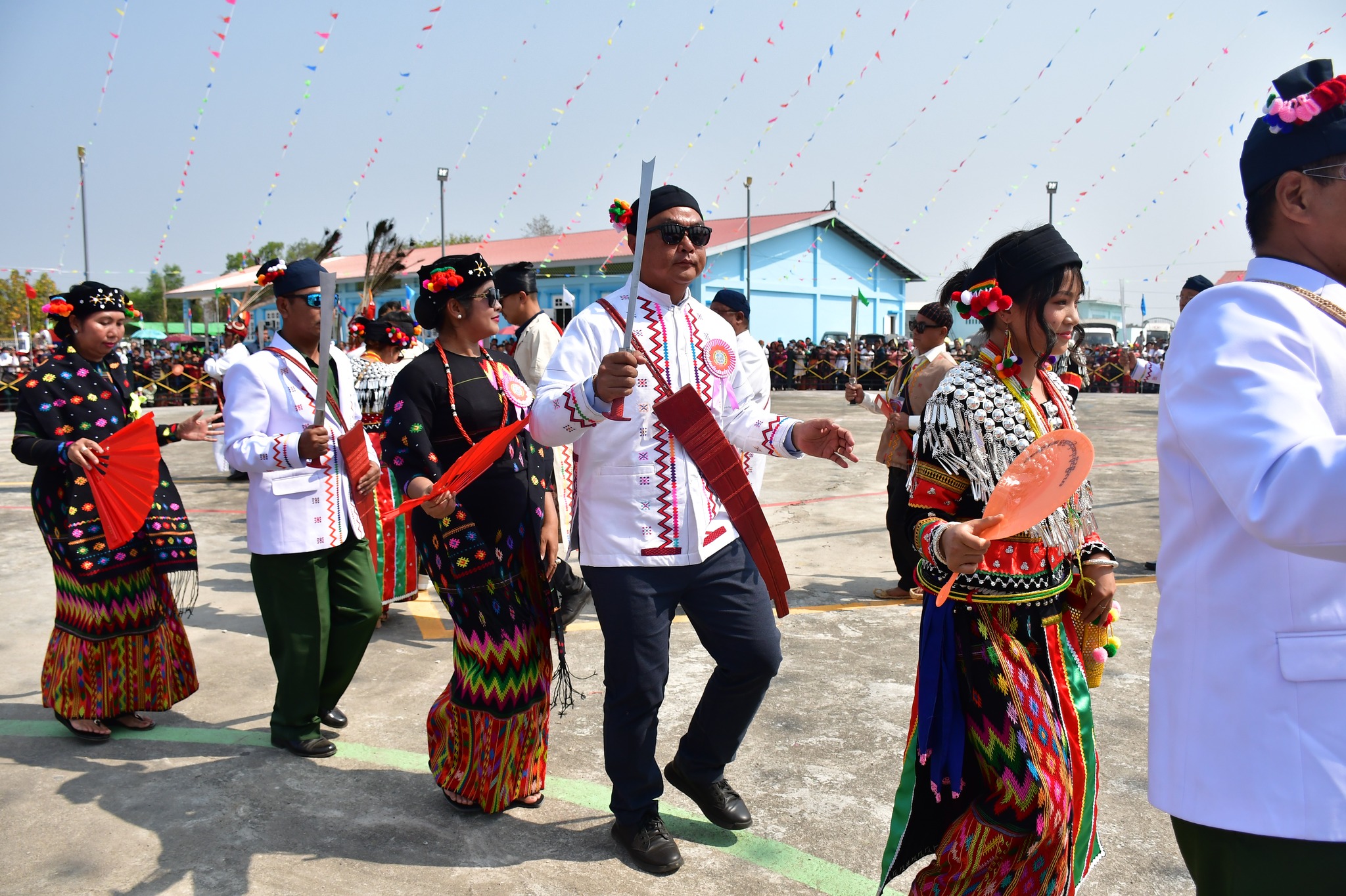 နိုင်ငံတော်စီမံအုပ်ချုပ်ရေးကောင်စီအဖွဲ့ဝင် ဒေါ်ဒွဲဘူနှင့် ပြည်ထောင်စုဝန်ကြီး Jeng Phang နော်တောင် လာချိဒ် တိုင်းရင်းသားရိုးရာ မုဒ်ဦး၊ ရိုးရာအိမ်တော်၊ မနောကွင်းဖွင့်ပွဲနှင့် ကျုံးဇွမ်မနောပွဲတော် အခမ်းအနားသို့ တက်ရောက် ဝိုင်းမော် မတ် (၃)
