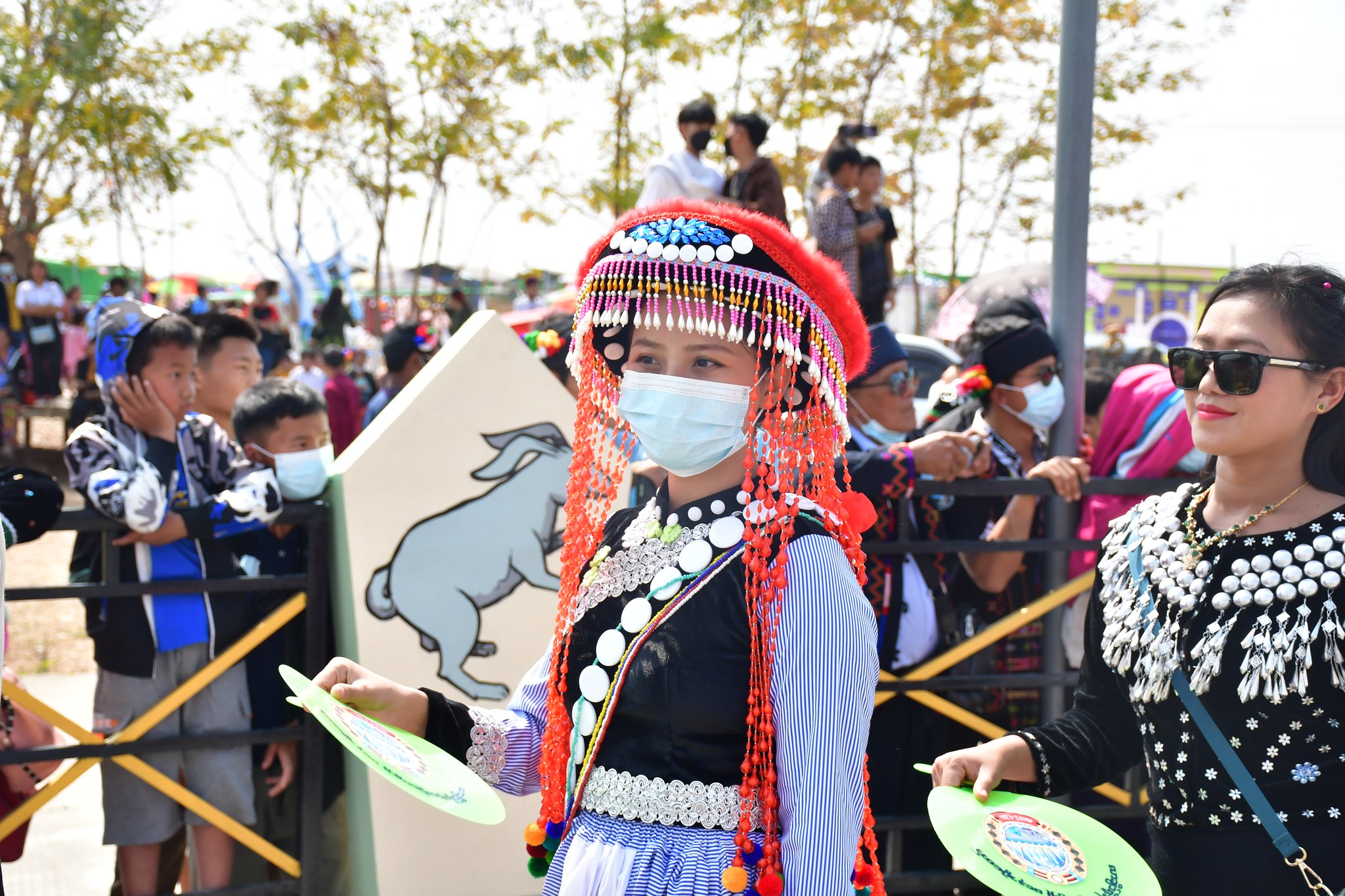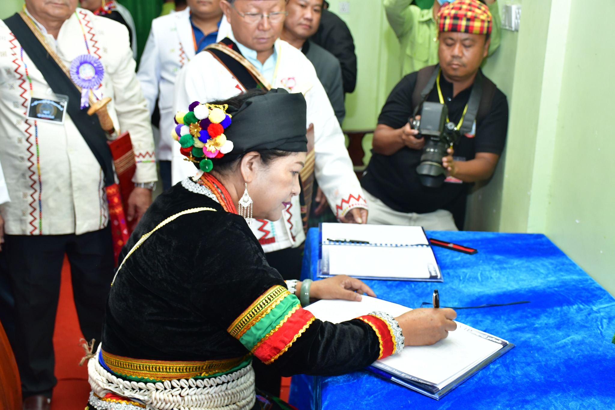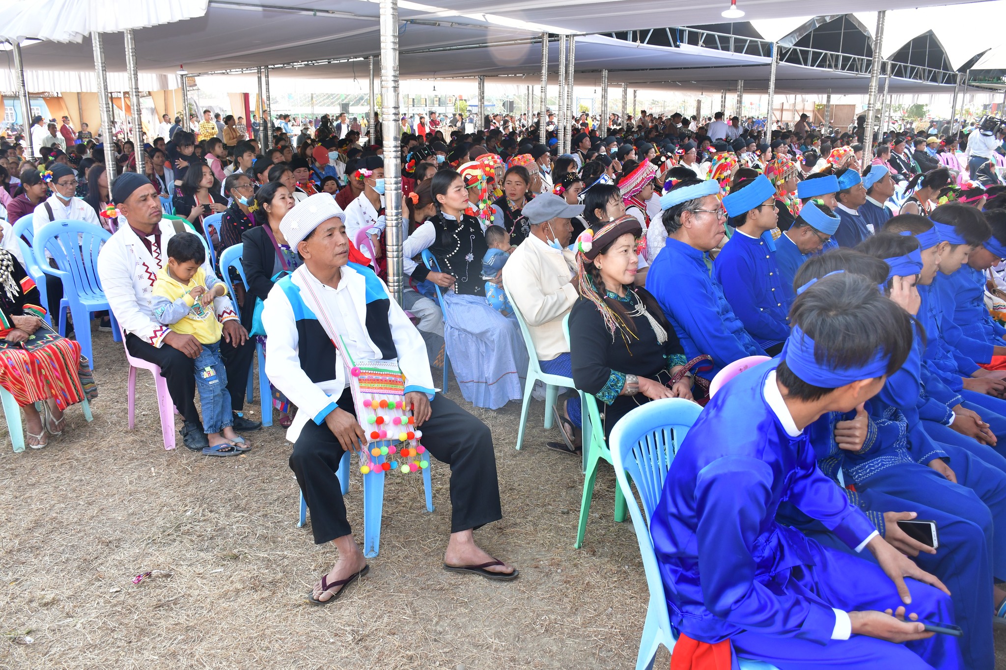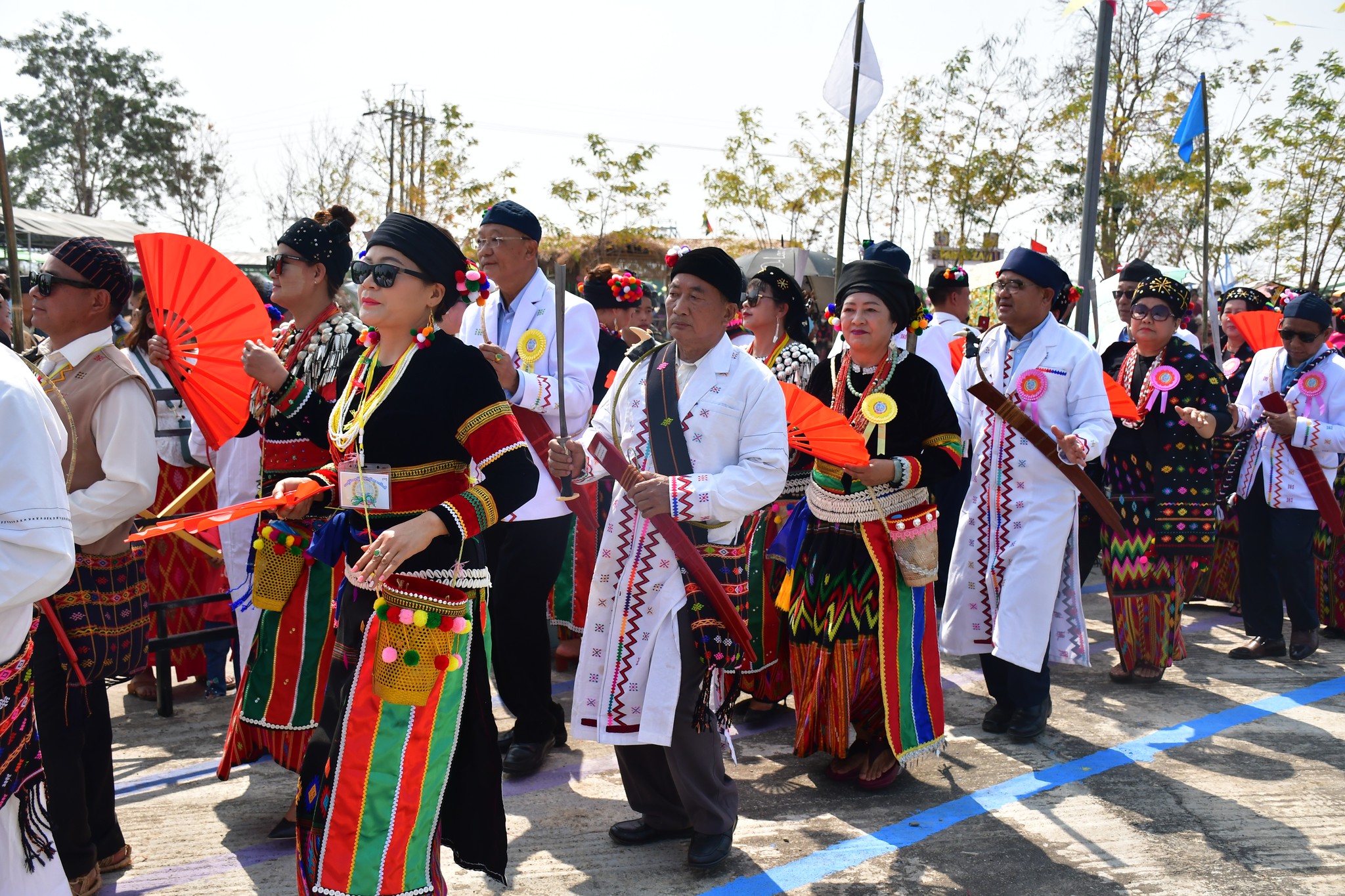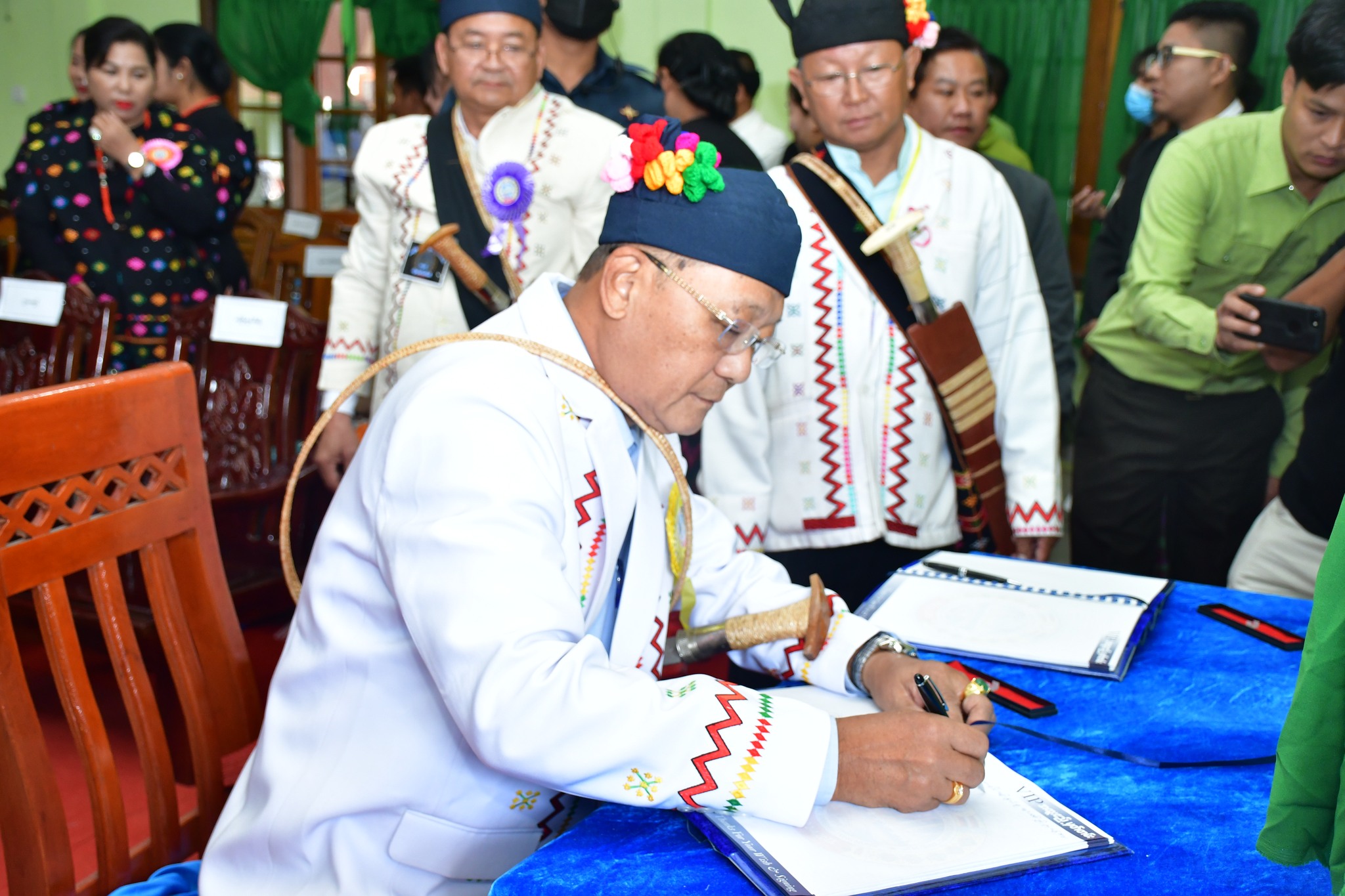 နိုင်ငံတော်စီမံအုပ်ချုပ်ရေးကောင်စီအဖွဲ့ဝင် ဒေါ်ဒွဲဘူနှင့် ပြည်ထောင်စုဝန်ကြီး Jeng Phang နော်တောင် လာချိဒ် တိုင်းရင်းသားရိုးရာ မုဒ်ဦး၊ ရိုးရာအိမ်တော်၊ မနောကွင်းဖွင့်ပွဲနှင့် ကျုံးဇွမ်မနောပွဲတော် အခမ်းအနားသို့ တက်ရောက် ဝိုင်းမော် မတ် (၃)