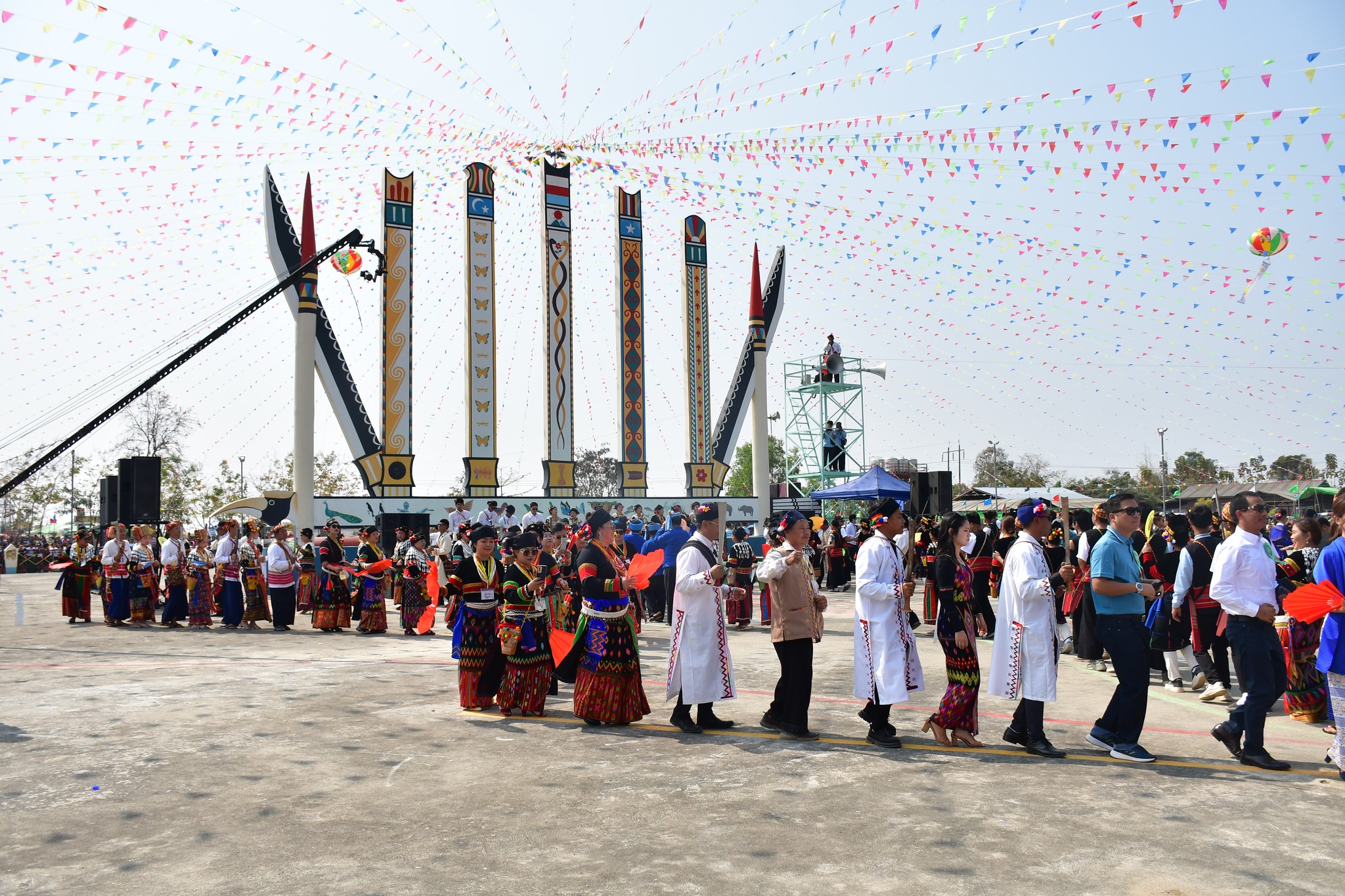 လာချိဒ်တိုင်းရင်းသားစာပေနှင့် ယဉ်ကျေးမှုဗဟိုကော်မတီမှ ကြီးမှူးကျင်းပ ပြုလုပ်သည့် နိုင်ငံတစ်ဝှမ်းနှင့် ပြည်နယ်အတွင်းရှိ လာချိဒ်တစ်မျိုးသားလုံး၏ ရိုးရာ အမွေအနှစ်ဖြစ်သည့် မုဒ်ဦး၊ ရိုးရာအိမ်တော်၊ မနောကွင်းဖွင့်ပွဲ အခမ်းအနားနှင့် ကျုံးဇွမ် မနောပွဲတော်ကို မတ်လ ၃ ရက် နံနက် ၀၉:၀၀ နာရီတွင် ဝိုင်းမော်မြို့နယ်၊ မဒိန်ကျေးရွာအုပ်စု၊ ခါ့ကွမ်ကျေးရွာအတွင်းရှိ လာချိဒ် ရိုးရာယဉ်ကျေးမှုကွင်း၌ ကျင်းပပြုလုပ်ခဲ့ပါသည်။ အခမ်းအနားသို့ နိုင်ငံတော်စီမံအုပ်ချုပ်ရေးကောင်စီအဖွဲ့ဝင် ဒေါ်ဒွဲဘူ၊ တိုင်းရင်းသား လူမျိုးများရေးရာဝန်ကြီးဌာန၊ ပြည်ထောင်စုဝန်ကြီး Jeng Phang နော်တောင်၊ ကချင်ပြည်နယ် ဝန်ကြီးချုပ် ဦးခက်ထိန်နန်နှင့်ဇနီး၊ မြောက်ပိုင်းတိုင်းစစ်ဌာနချုပ် တိုင်းမှူး ဗိုလ်ချုပ်ကိုကိုမောင်၊ ပြည်နယ်တရားလွှတ်တော် တရားသူကြီးချုပ် ဦးတူးဂျာ၊ တပ်မတော်အရာရှိကြီးများ၊ ကချင်ပြည်နယ်အစိုးရအဖွဲ့ဝင် ဝန်ကြီးများ၊ ဖိတ်ကြားထားသူများ၊ တိုင်းရင်းသား ညီအစ်ကိုမောင်နှမများ တက်ရောက်ခဲ့ကြပြီး လာချိဒ်စာပေနှင့် ယဉ်ကျေးမှုဗဟိုကော်မတီ ဥက္ကဋ္ဌနှင့် တာဝန်ရှိသူများ၊ လာချိဒ်တိုင်းရင်းသားများက (ရှီးခွမ်မှီ) ကြိုဆိုသီးချင်းဖြင့် ရင်းရင်းနှီးနှီးဖြင့် စည်ကားသိုက်မြိုက်စွာ ကြိုဆိုနှုတ်ဆက်ကြပါသည်။ အခမ်းအနားတွင် သိက္ခာတော်ရဆရာ မဒိန်ဇုန်းကျန်းက ဆုတောင်းဆက်ကပ်ပေးပြီး လာချိဒ်စာပေနှင့်ယဉ်ကျေးမှုဗဟိုကော်မတီဥက္ကဋ္ဌ ဦးလဘောင်ဇုန်းဘောမ်က ကြိုဆို နှုတ်ခွန်းဆက် စကားပြောကြားခဲ့ပါသည်။ ၎င်းနောက် မနောကွင်းအတွင်း ပင်မမနောတိုင်အလှူရှင် ဇောင်မှူးမန်ရှန်ဒိန့်ယိန်း၏ ကိုယ်စား ၎င်း၏ဇနီး ဆရာမဂလောင်ဇရှီခေါဝင်းက မနောကွင်းတည်ဆောက်ရခြင်းနှင့် ပွဲတော်ကျင်းပရခြင်း၏ ရည်ရွယ်ချက်များကို ရှင်းလင်းတင်ပြပြီး ကျေးဇူးတင်စကား ပြောကြားခဲ့ပါသည်။ ၎င်းနောက် တိုင်းရင်းသားလူမျိုးများရေးရာဝန်ကြီးဌာန၊ ပြည်ထောင်စုဝန်ကြီး Jeng Phang နော်တောင်က ဝမ်းမြောက်စကားပြောကြားရာတွင် လာချိဒ်တစ်မျိုးသားလုံး၏ စည်းလုံးညီညွတ်မှု၊ စုပေါင်းကြိုးစားလုပ်ဆောင်မှုများကြောင့် ယခုလိုမင်္ဂလာရှိသည့် ရိုးရာယဉ်ကျေးမှုပွဲတော်အခမ်းအနား ကျင်းပနိုင်ခြင်းဖြစ်ပါကြောင်း၊ လာချိဒ်တိုင်းရင်းသား မျိုးနွယ်များသည် ရှေးယခင်ပဝေဿဏီကတည်းကပင် မိသားစုကျန်းမာရေးကောင်းမွန် စေရန်၊ စားဝတ်နေရေး၊ လူမှုရေး၊ စီးပွားရေးလုပ်ငန်းများကောင်းမွန်စေရန်၊ရည်ရွယ်၍ မနောပွဲတော်ကို ကျင်းပလာကြသည့်အစဉ်အလာကောင်းများရှိကြပါကြောင်း၊ အောင်မြင် မှုများ ရရှိလာသောအခါတွင် လည်းကောင်း၊ မိတ်ဆွေ၊ ဆွေမျိုး၊ အိမ်သူအိမ်သားများနှင့် မျိုးနွယ်စုများပြန်လည် ဆ