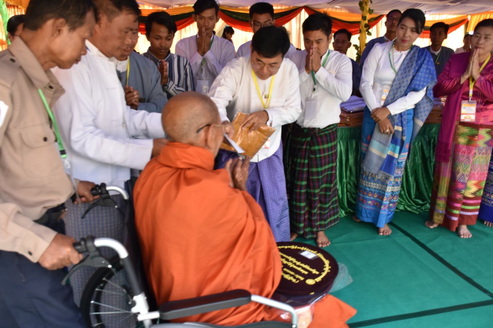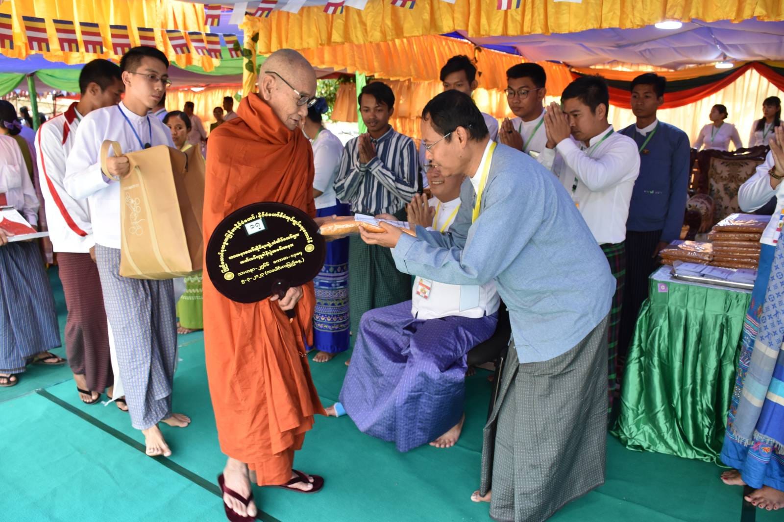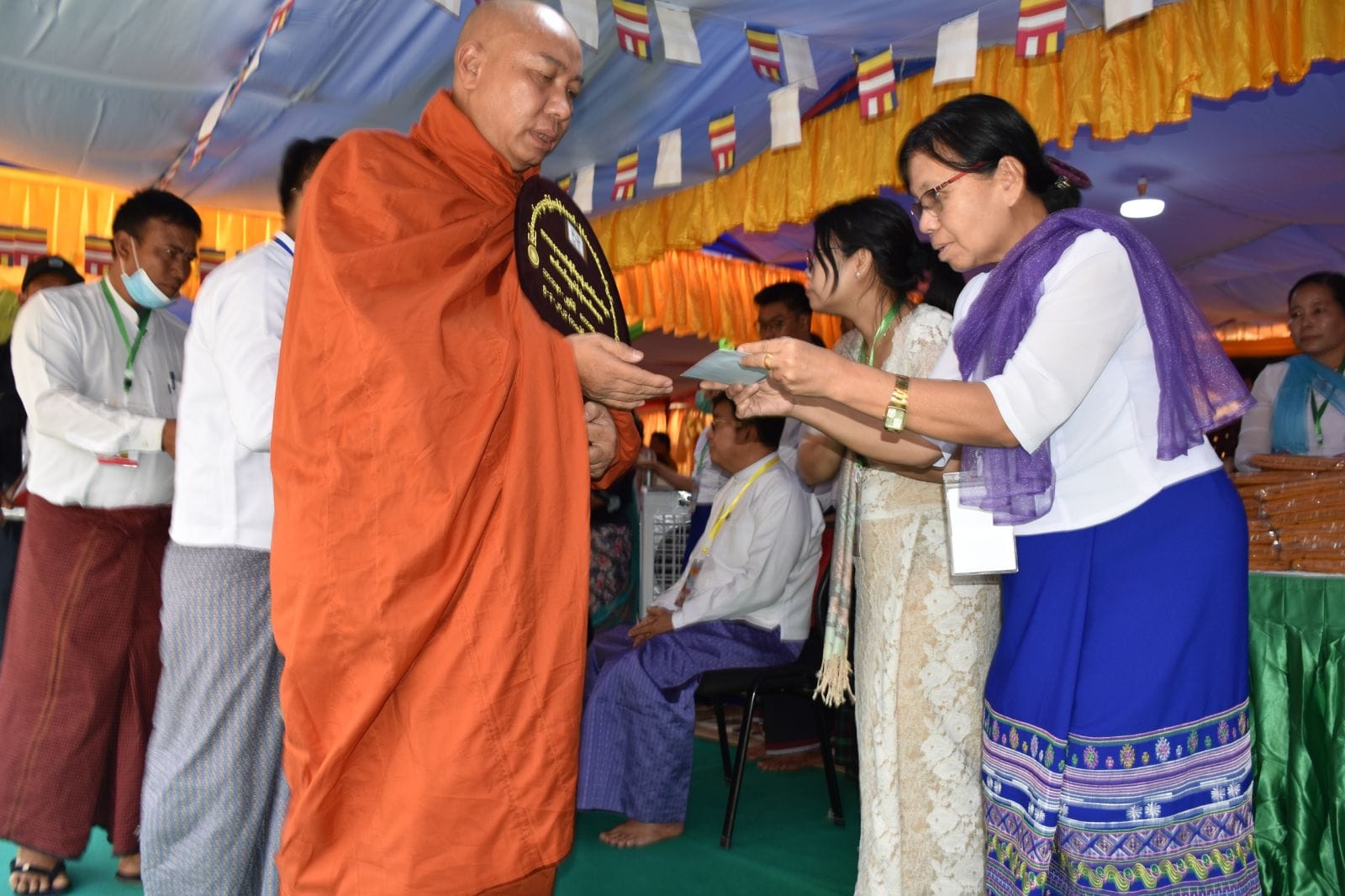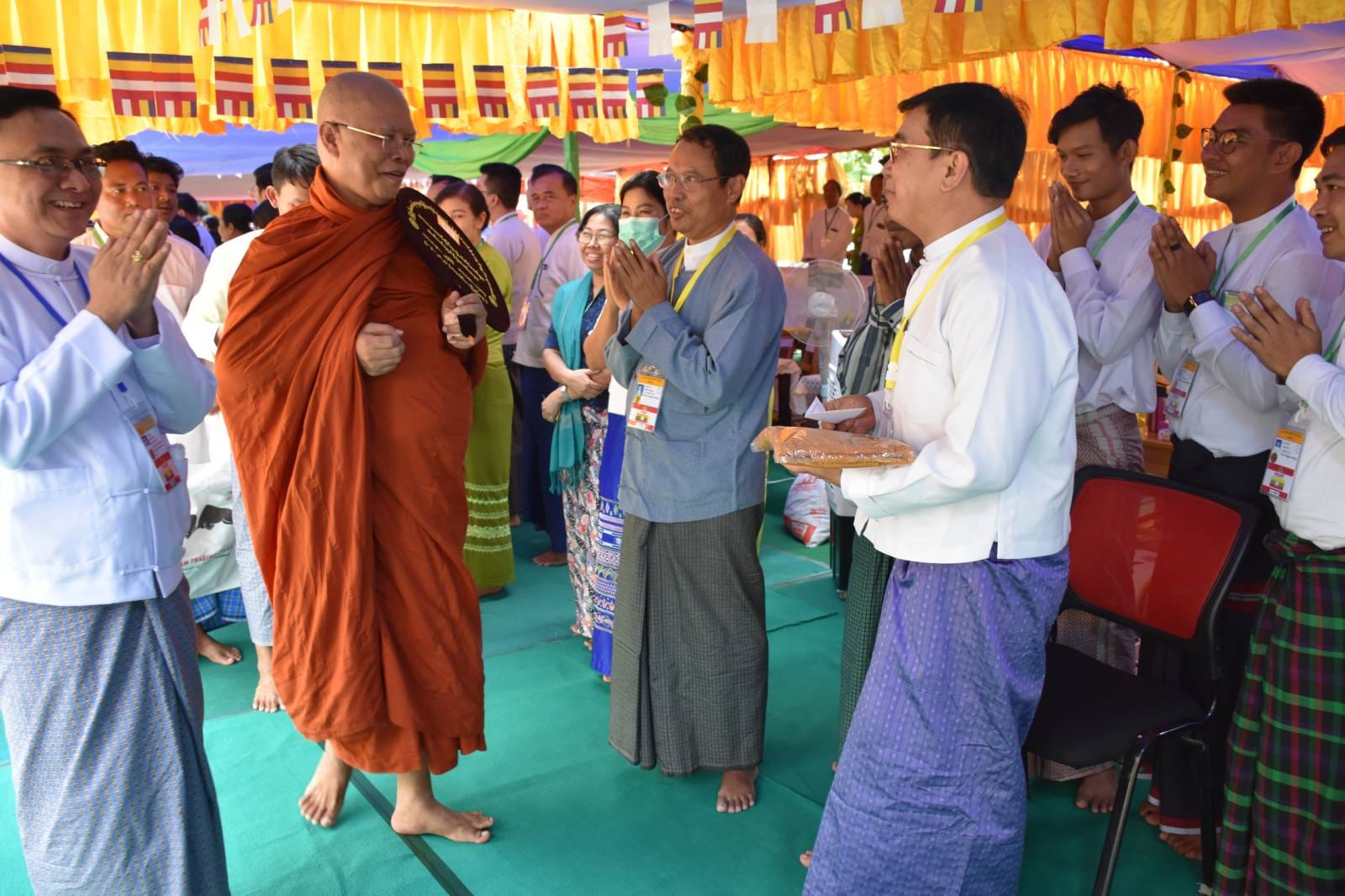 ၂၀၂၃ ခုနှစ် သာသနာတော်ဆိုင်ရာဘွဲ့တံဆိပ်တော်ဆက်ကပ်ပူဇော်ခံတော်မူကြသည့်ဆရာတော်များနှင့်သီလရှင်များအား ဆွမ်းဆန်စိမ်းလောင်းလှူပွဲတွင် တိုင်းရင်းသားလူမျိုးများရေးရာဝန်ကြီးဌာန ဒုတိယဝန်ကြီး ဦးဇော်အေးမောင် ပါဝင်ဆက်ကပ်လောင်းလှူ နေပြည်တော်၊ မတ် ၅
