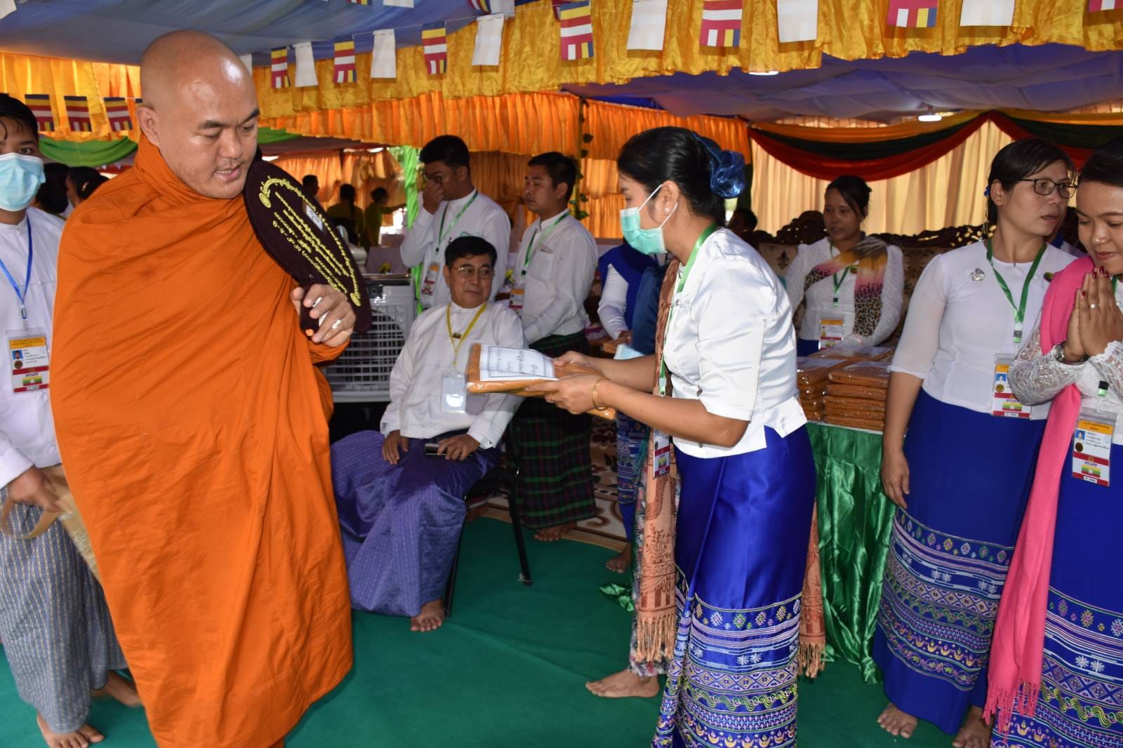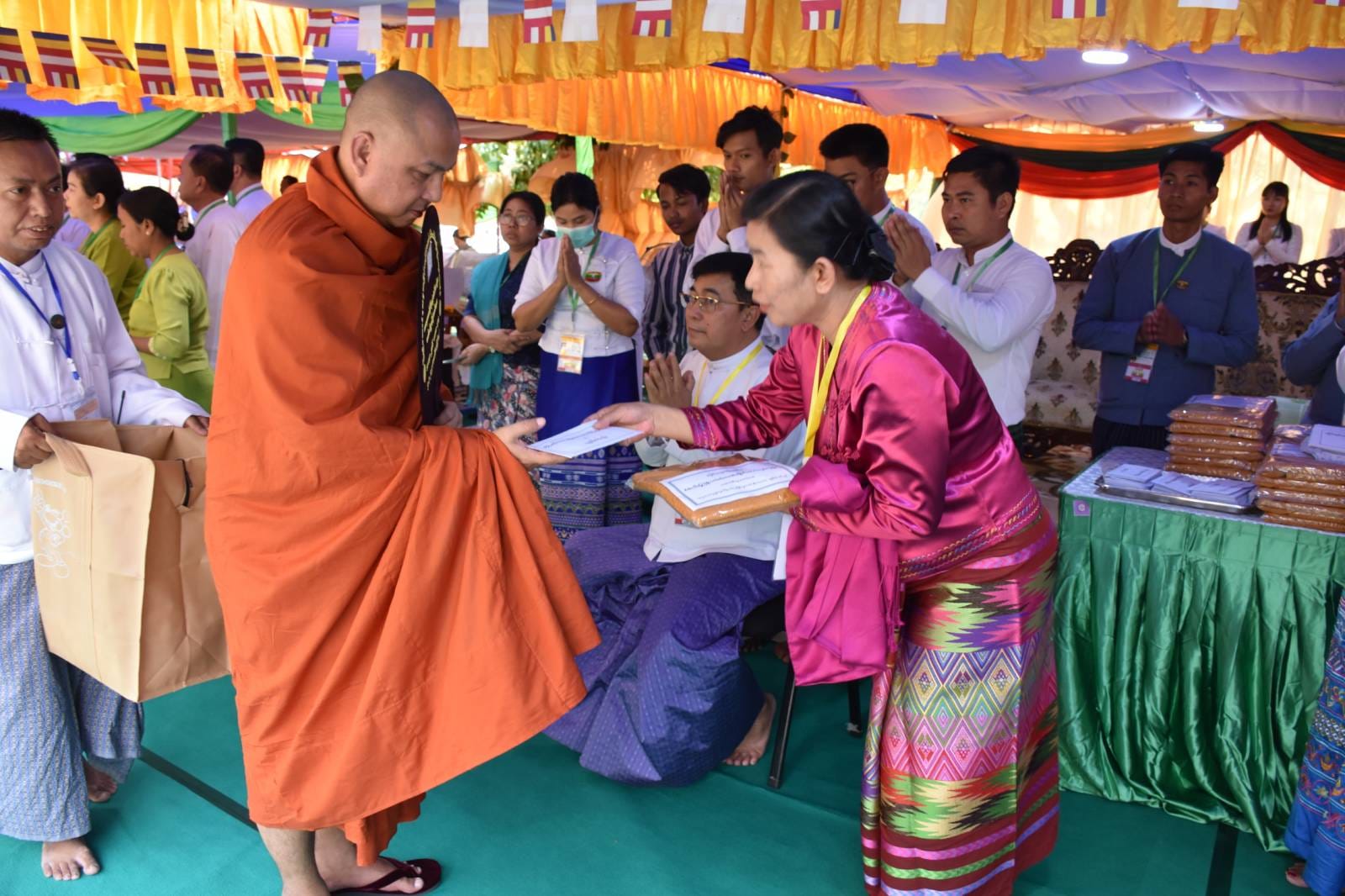 ၂၀၂၃ ခုနှစ် သာသနာတော်ဆိုင်ရာဘွဲ့တံဆိပ်တော် ဆက်ကပ်ပူဇော်ခံတော်မူကြသည့် ပြည်တွင်း၊ ပြည်ပဆရာတော်များနှင့်သီလရှင်များအား ဆွမ်းဆန်စိမ်းလောင်းလှူပွဲကို နေပြည်တော် ဥပ္ပါတသန္တိစေတီတော်ပရိဝုဏ်၌ ၅-၃-၂၀၂၃ ရက် တပေါင်းလပြည့်နေ့ မွန်းလွဲပိုင်းတွင် ကျင်းပရာ တိုင်းရင်းသားလူမျိုးများရေးရာဝန်ကြီးဌာနမိသားစု မဏ္ဍပ်၌ ပြည်ထောင်စုဝန်ကြီးကိုယ်စား ဒုတိယဝန်ကြီး ဦးဇော်အေးမောင်ဦးဆောင်၍ ဝန်ထမ်းများက နဝကမ္မအလှူငွေများနှင့် လှူဖွယ်ပစ္စည်းများကို ဆက်ကပ်လောင်းလှူခဲ့ကြပါသည်။